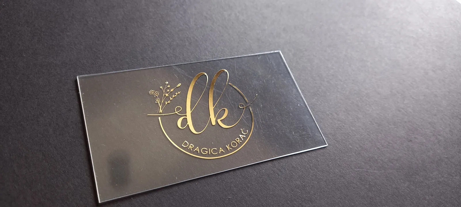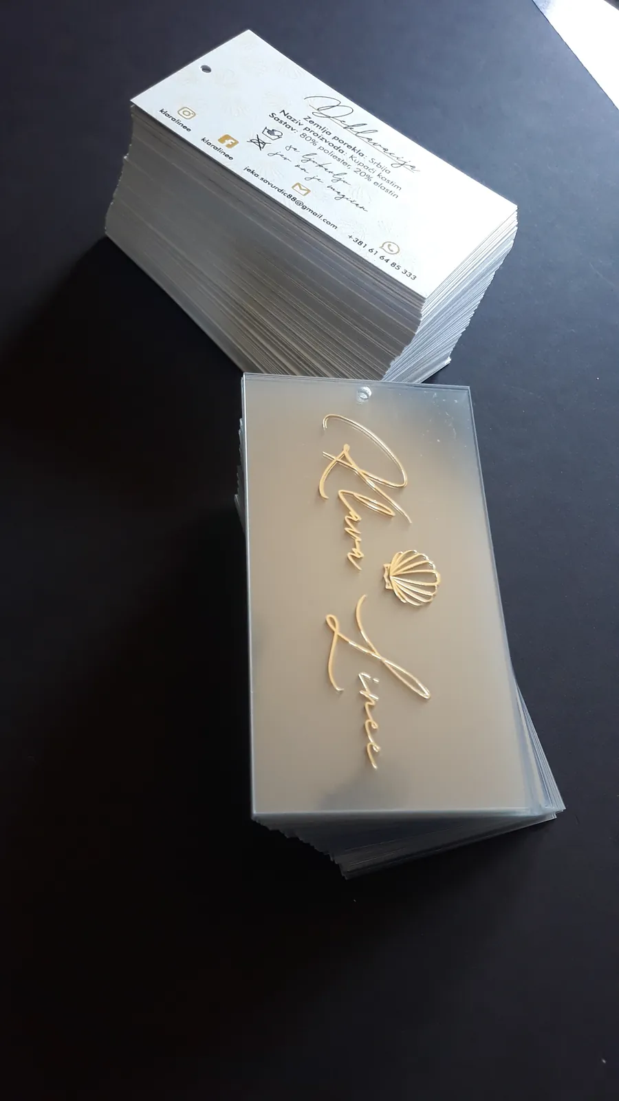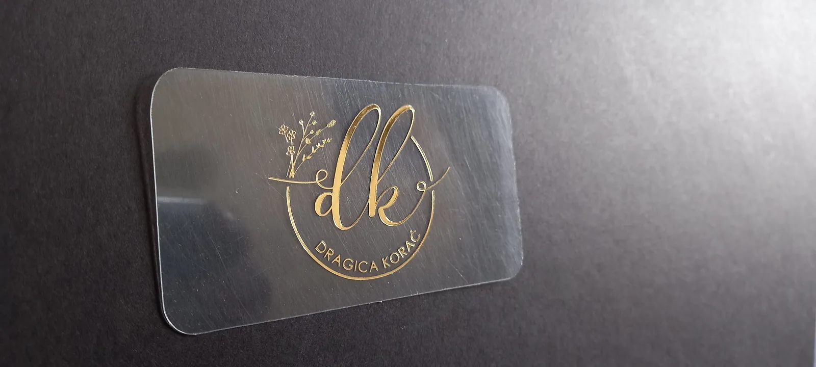 Štampamo vizit karte na providnoj tanjoj plastici u crnoj ili nekoj drugoj boji ili u zlatotisku.