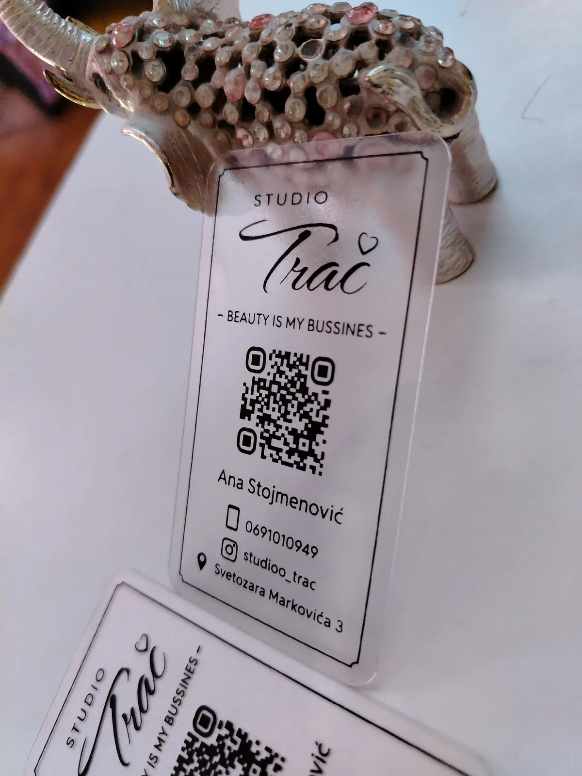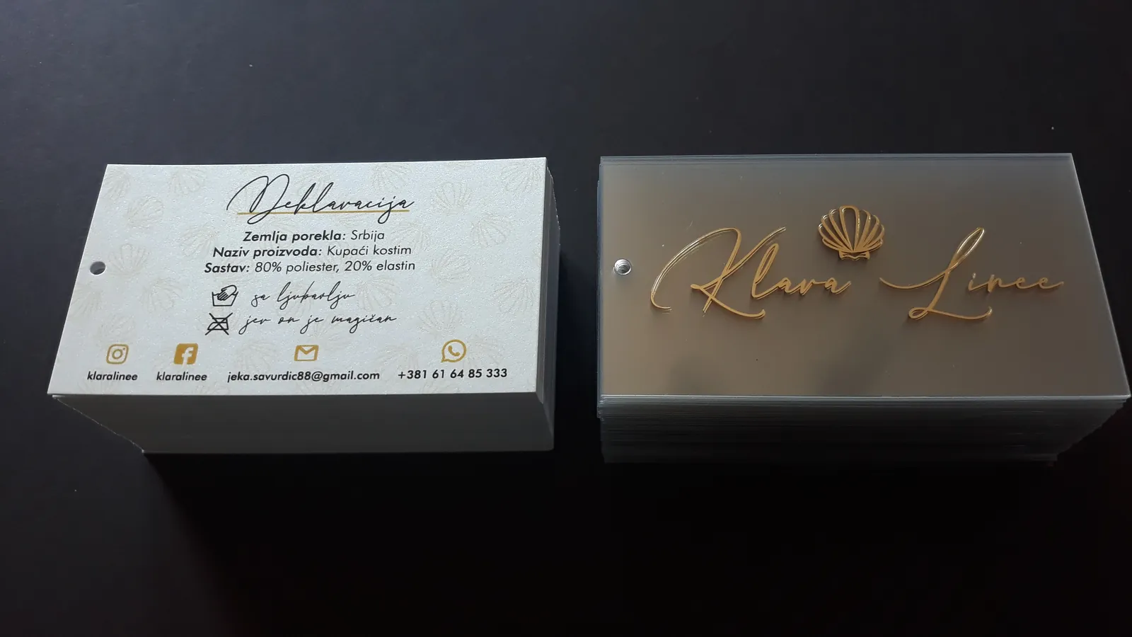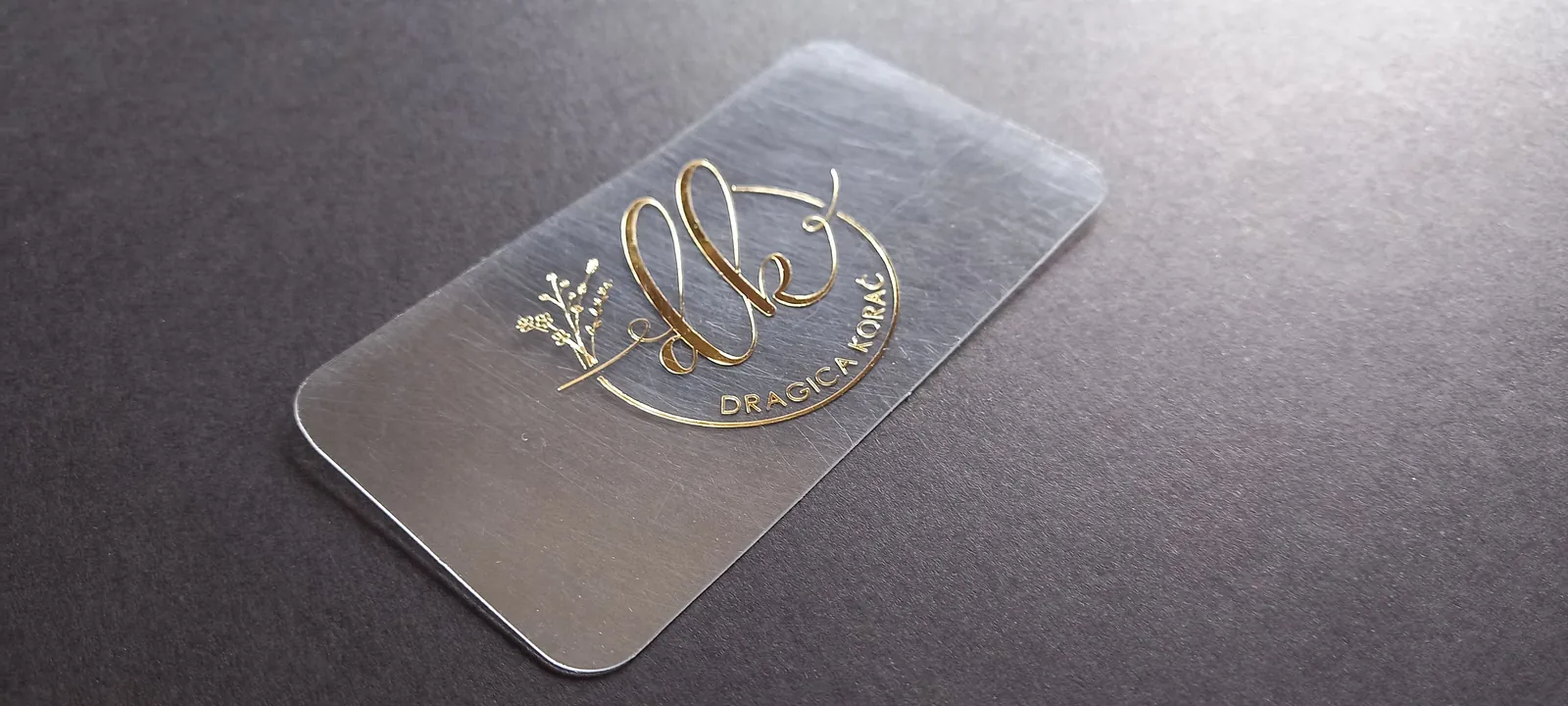 Štampamo vizit karte na providnoj tanjoj plastici u crnoj ili nekoj drugoj boji ili u zlatotisku.