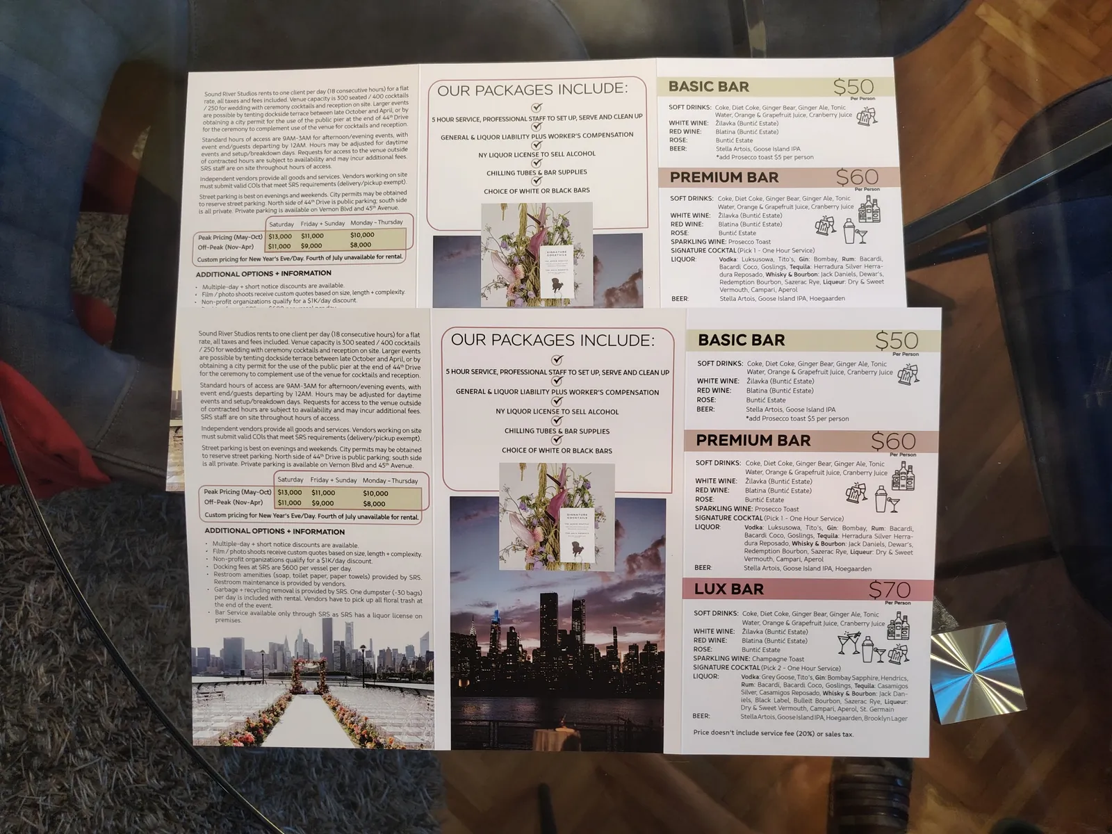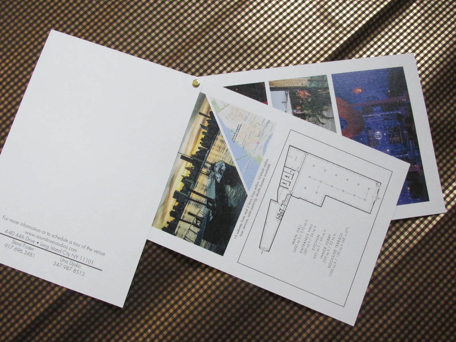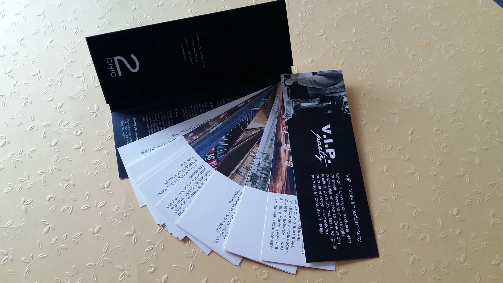 Brošure su obično trodelne, osmišljene tako da se lako otvore i sklope, da budu sve informacije na jednom mestu sažete sa nekoliko fotografija. Takođe klijenti određuju format brošure, da li će ona biti kvadratna kada se sklopi, pravougaona, veća ili manja. Određene brošure za restorane u Njujorku radimo na primer sa mat plastifikacijom, da bi duže ostale u funkciji, zbog čestog čitanja (foto 11 -18, foto 49-53). Brošure mogu biti štampane najčešće na kunstdruku ali poneko želi da štampu na mat reljefnom papiru. Radili smo čak i interesantno povezivanje stranica kopčom, nitnom ili mašnicom (foto 19-24, foto 40-42, foto 45-48)