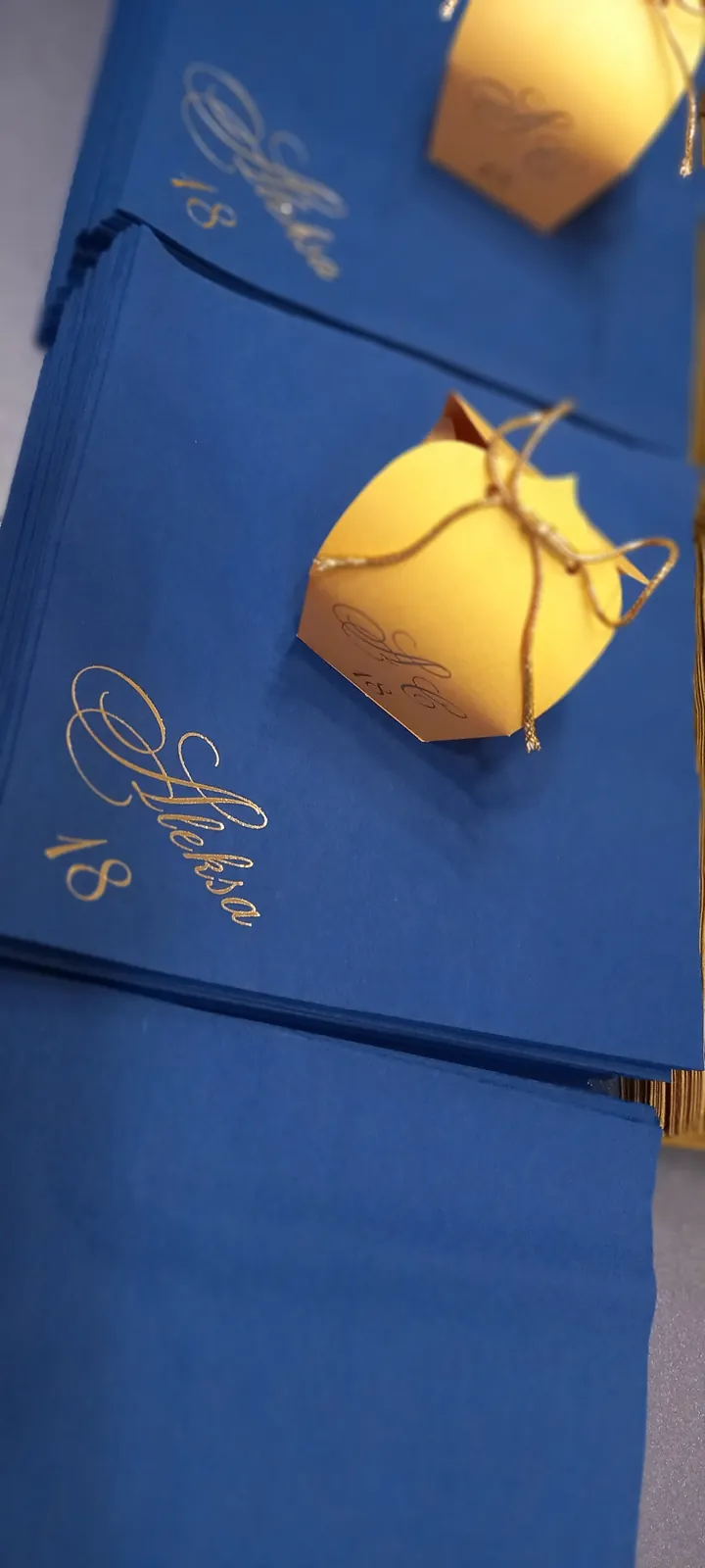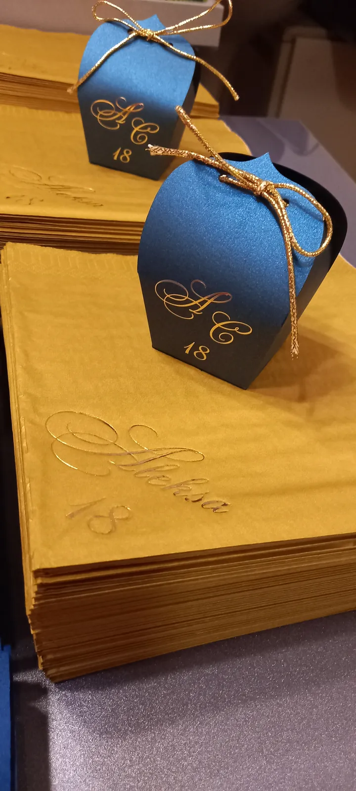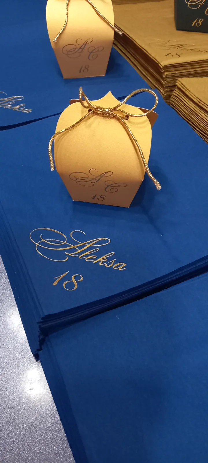 10.Zlatne salvete sa zlatotiskom i teget kutije Lora sa zlatotiskom