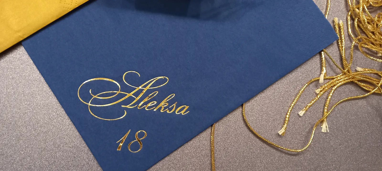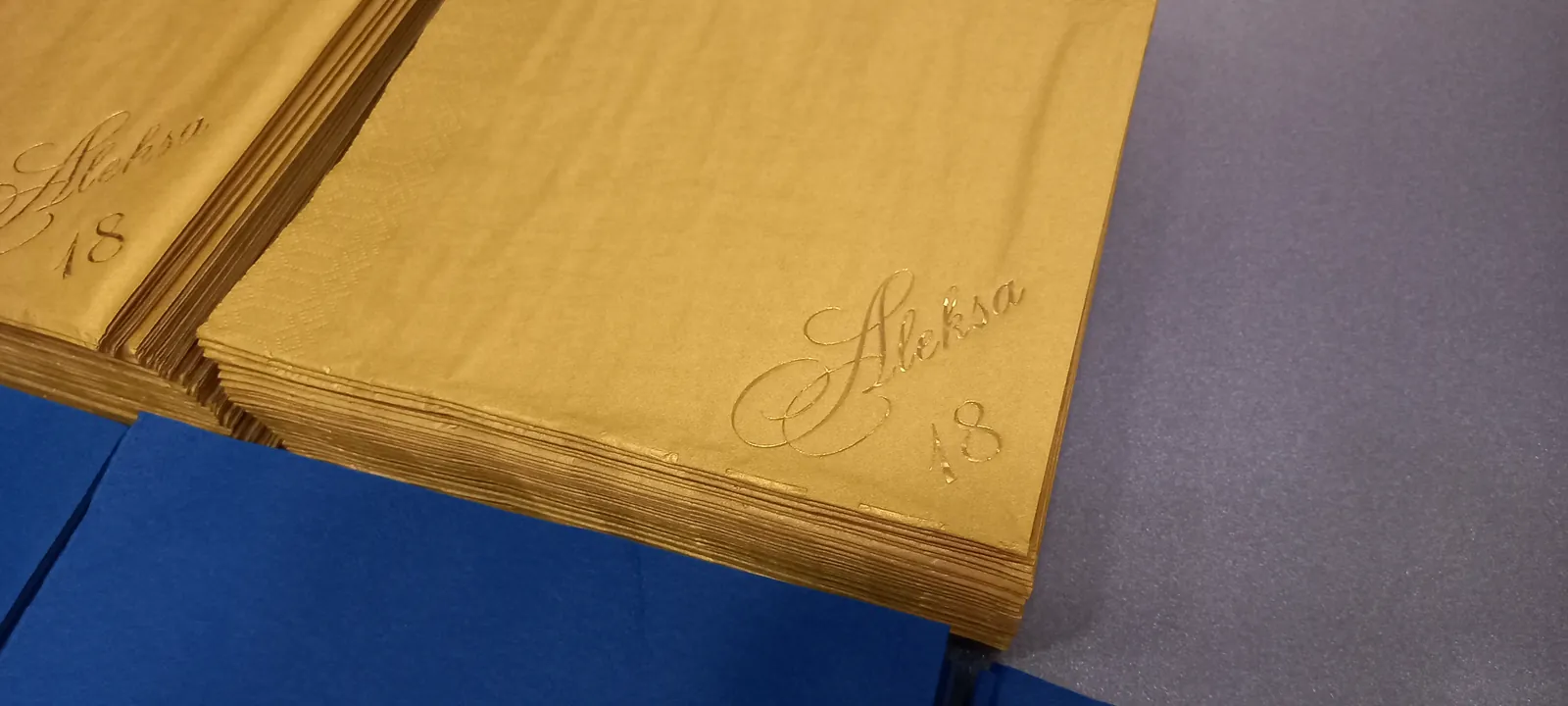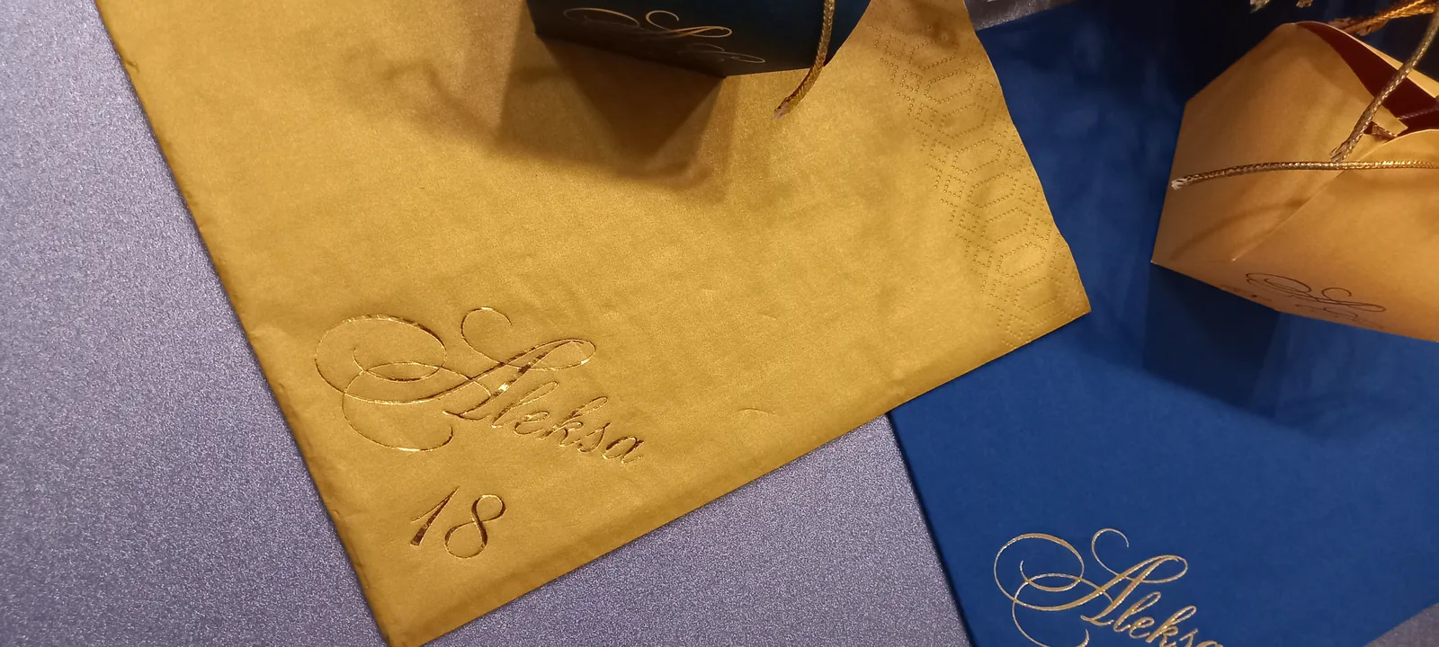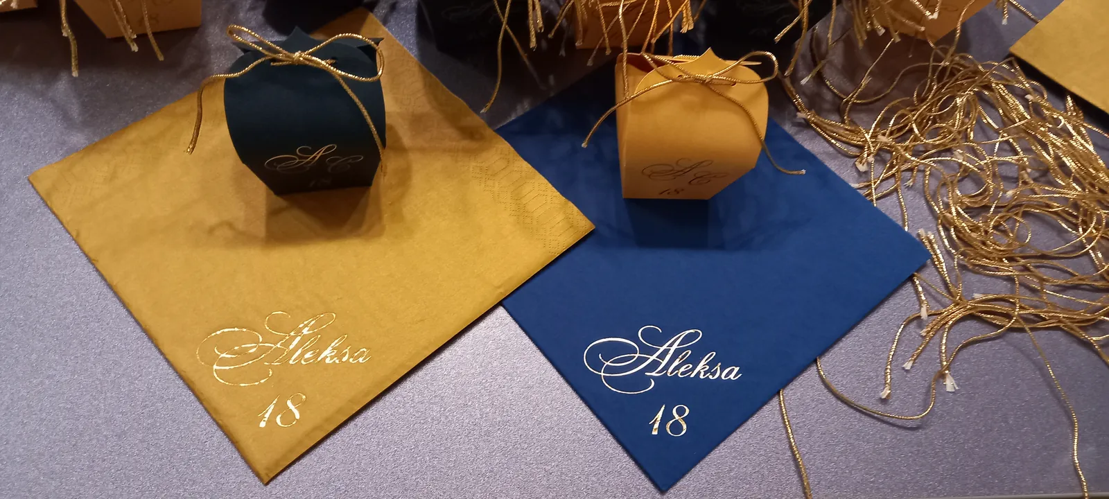 10.Zlatne salvete sa zlatotiskom i teget kutije Lora sa zlatotiskom