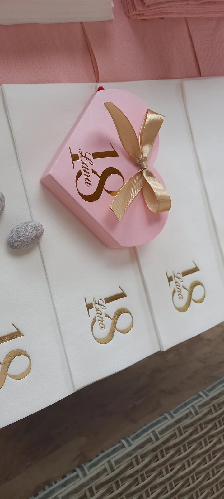 7.Bele salvete sa zlatotiskom i kutije Srce sa zlatotiskom