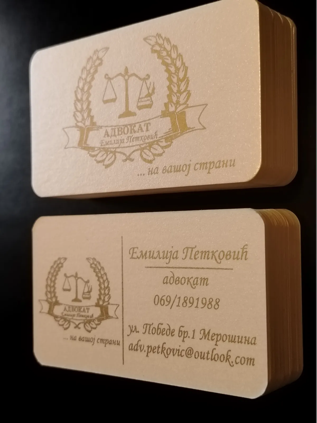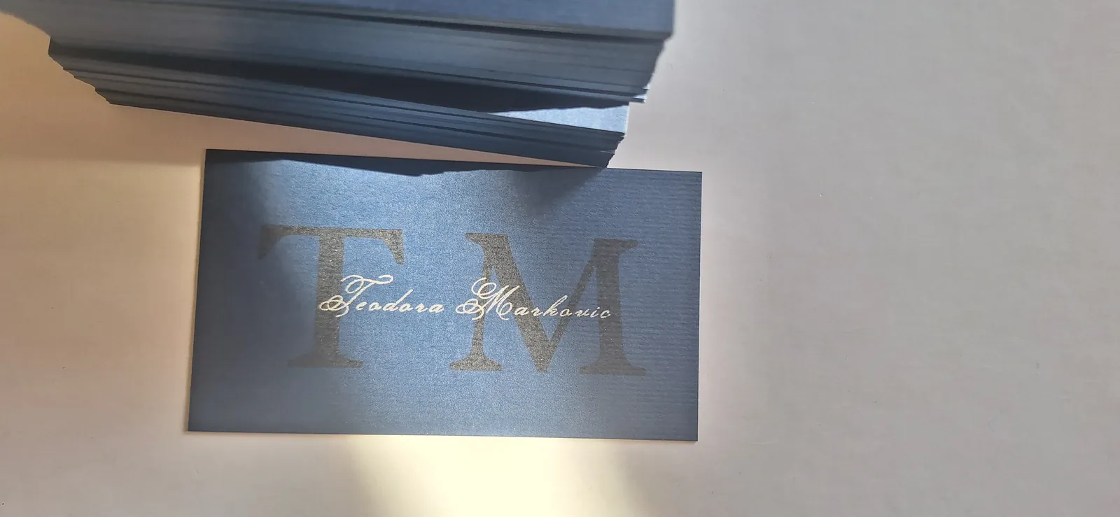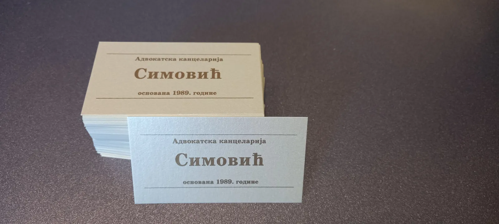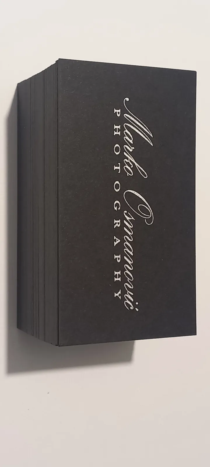 Štampa vizit karata na italijanskim papirima deluje znatno otmenije. Raspolažemo širokim asortimanom italijanskih, nemačkih i francuskih papira u svim bojama: to su reljefni papiri akverelo, ili sa sitnim linijicama po sebi, zatim specijalni papiri koji se presijavaju. Na ovim papirima moguća je digitalna štampa (kada imate grafičku pripremu u punom koloru, sa puno boja i puno nijansi) ili sito štampa (u zlatnoj ili srebrnoj ili beloj boji na tamnim papirima, kada vam je tekst i logo sve u jednoj boji). Sito štampa u zlatnoj boji na teget ili bež papiru izgleda veoma otmeno, pogotovu sa zaobljenim ivicama. Na otmenim papirima ne radi se plastifikacija, jer baš papir treba da dođe do izražaja.