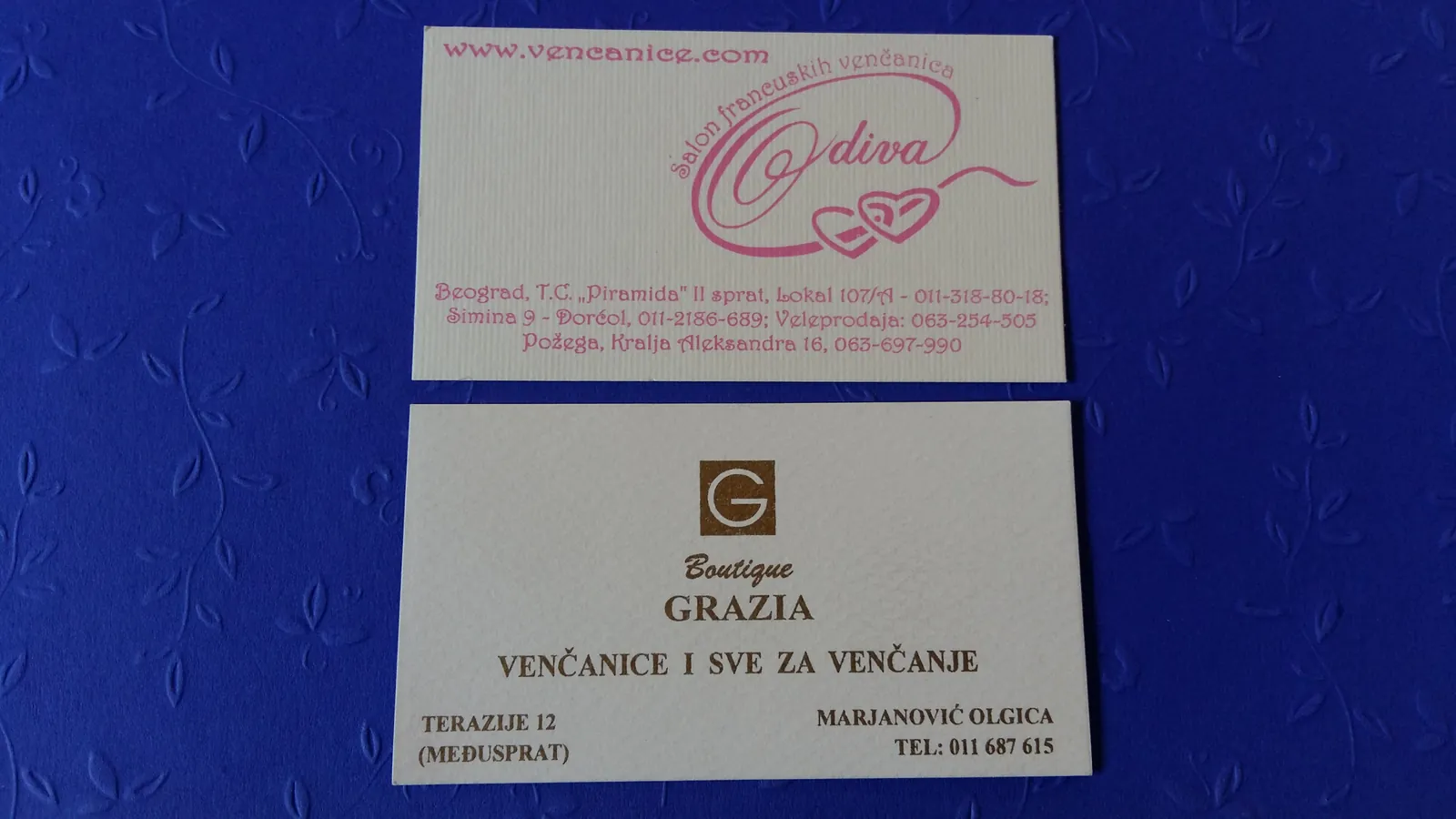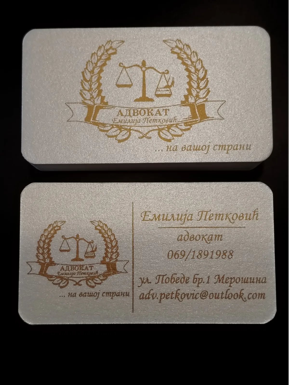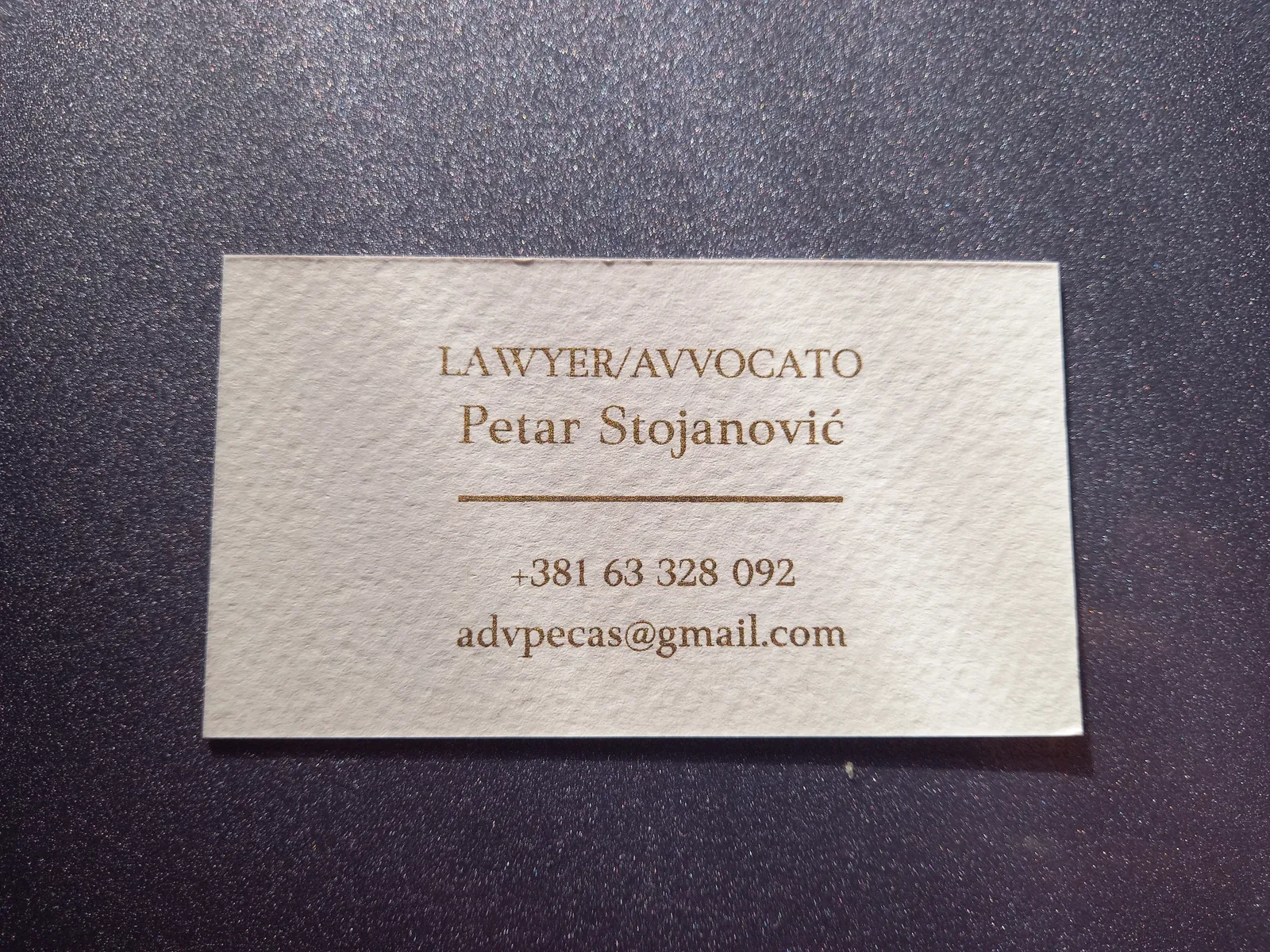 Štampa vizit karata na italijanskim papirima deluje znatno otmenije. Raspolažemo širokim asortimanom italijanskih, nemačkih i francuskih papira u svim bojama: to su reljefni papiri akverelo, ili sa sitnim linijicama po sebi, zatim specijalni papiri koji se presijavaju. Na ovim papirima moguća je digitalna štampa (kada imate grafičku pripremu u punom koloru, sa puno boja i puno nijansi) ili sito štampa (u zlatnoj ili srebrnoj ili beloj boji na tamnim papirima, kada vam je tekst i logo sve u jednoj boji). Sito štampa u zlatnoj boji na teget ili bež papiru izgleda veoma otmeno, pogotovu sa zaobljenim ivicama. Na otmenim papirima ne radi se plastifikacija, jer baš papir treba da dođe do izražaja.