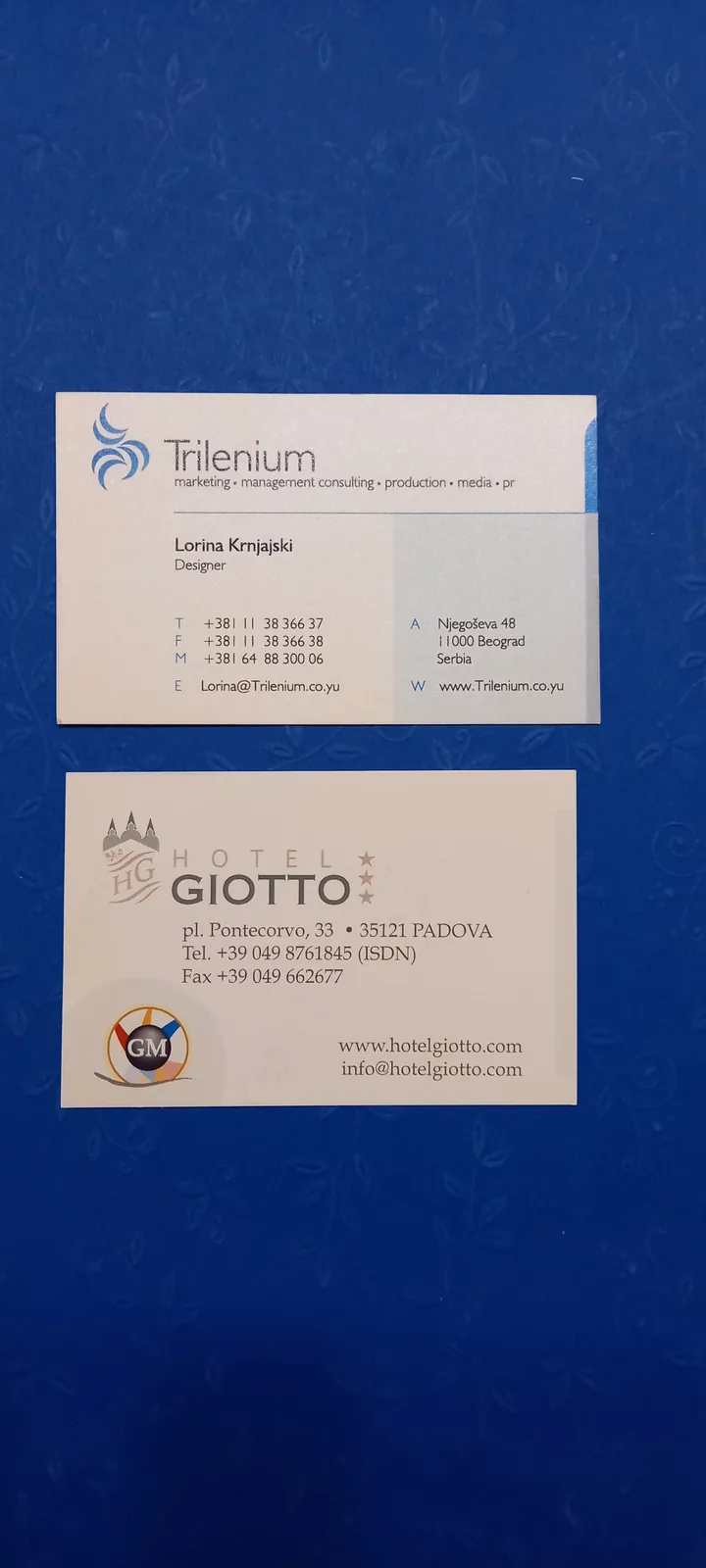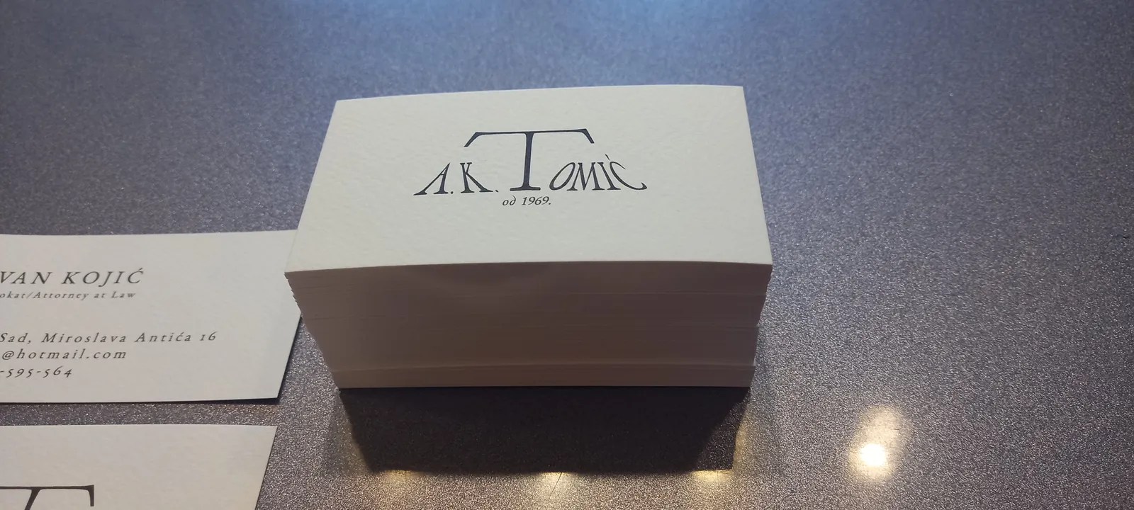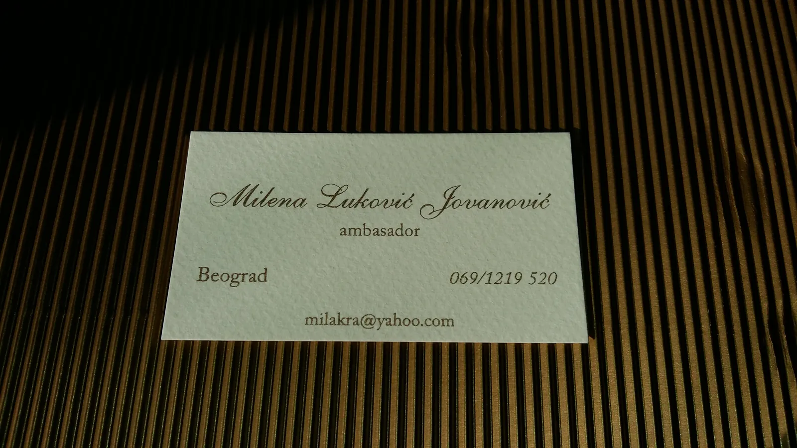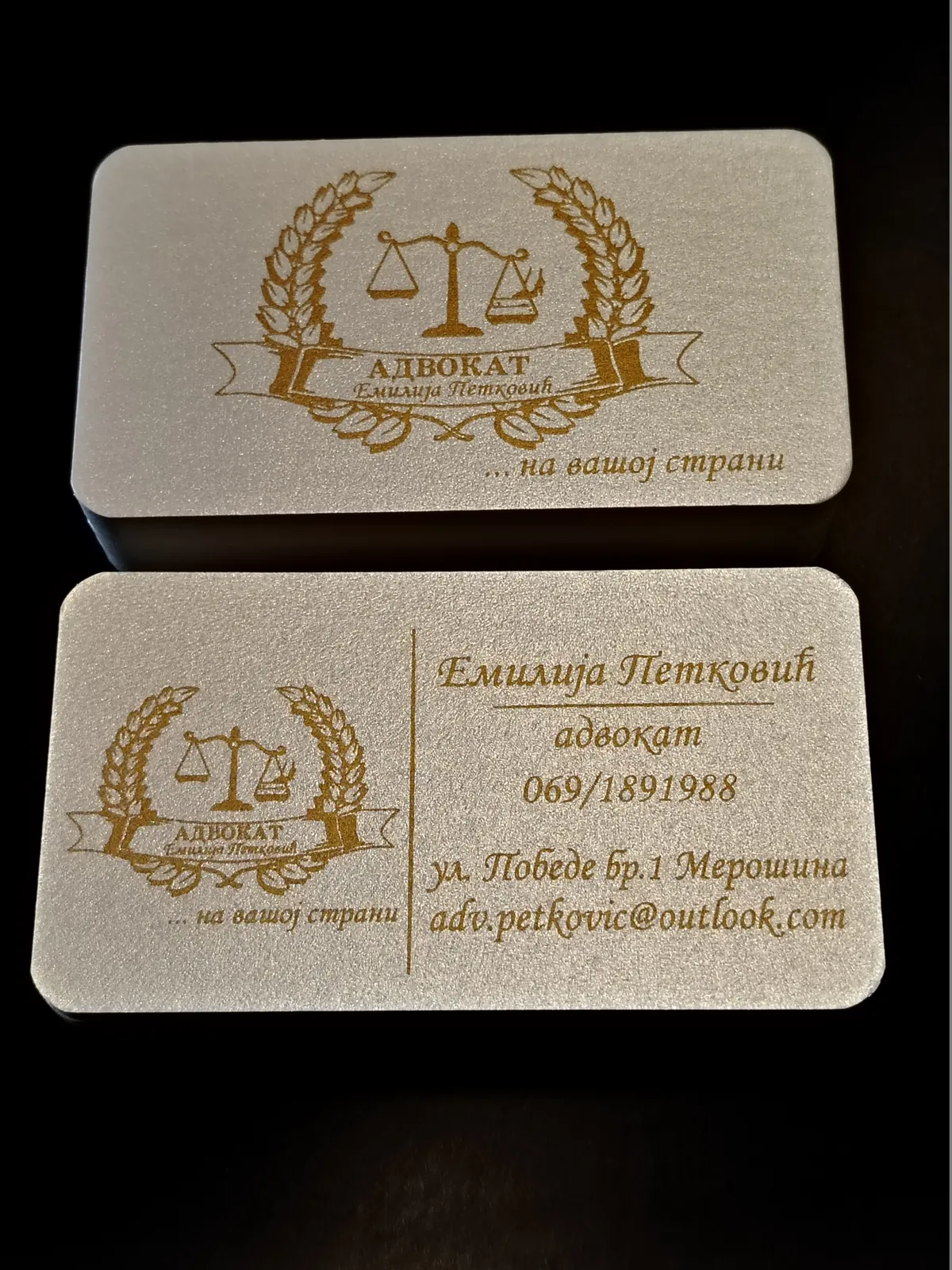 Štampa vizit karata na italijanskim papirima deluje znatno otmenije. Raspolažemo širokim asortimanom italijanskih, nemačkih i francuskih papira u svim bojama: to su reljefni papiri akverelo, ili sa sitnim linijicama po sebi, zatim specijalni papiri koji se presijavaju. Na ovim papirima moguća je digitalna štampa (kada imate grafičku pripremu u punom koloru, sa puno boja i puno nijansi) ili sito štampa (u zlatnoj ili srebrnoj ili beloj boji na tamnim papirima, kada vam je tekst i logo sve u jednoj boji). Sito štampa u zlatnoj boji na teget ili bež papiru izgleda veoma otmeno, pogotovu sa zaobljenim ivicama. Na otmenim papirima ne radi se plastifikacija, jer baš papir treba da dođe do izražaja.