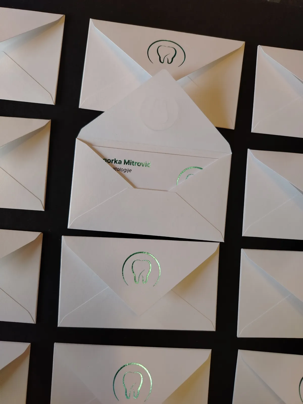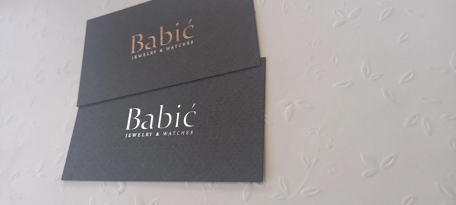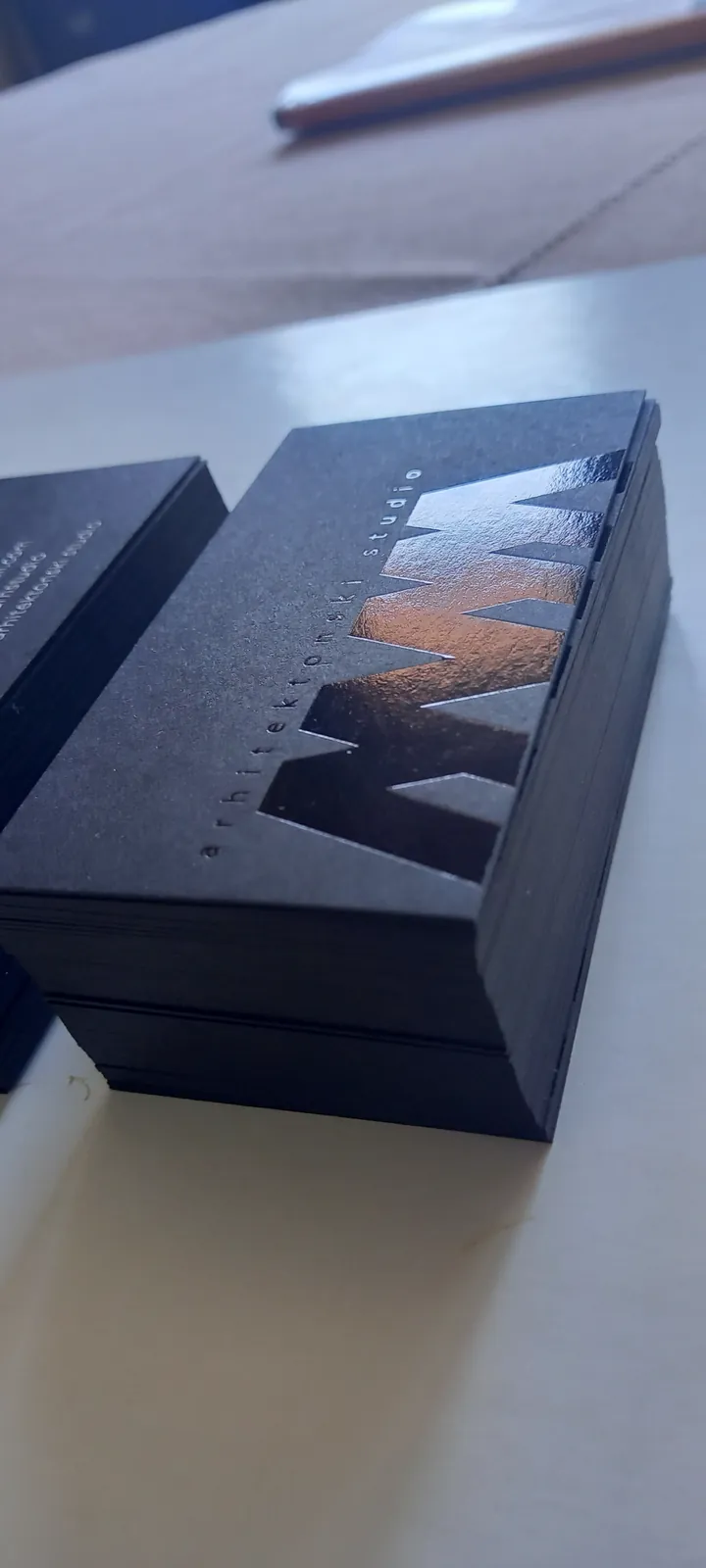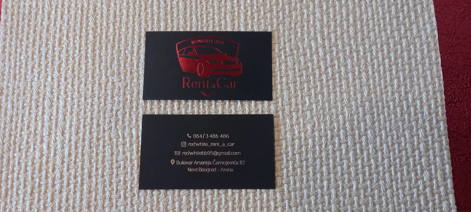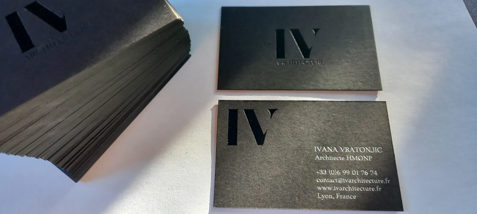 Radimo često foliotisak u raznim bojama na specijalnim italijanskim papirima: crni foliotisak na crnom papiru zaista je veoma efektan! Zatim crvena folija, zelena, crna folija na belom papiru, tirkizno-plava folija, plava. Beli foliotisak na tamnim papirima. Ideje naših klijenata su nepresušne, mi se trudimo da sve želje ispunimo. Često nam klijenti traže crni foliotisak na belom papiru jer folija ima veći sjaj od obične crne štampe i slova su utisnuta.