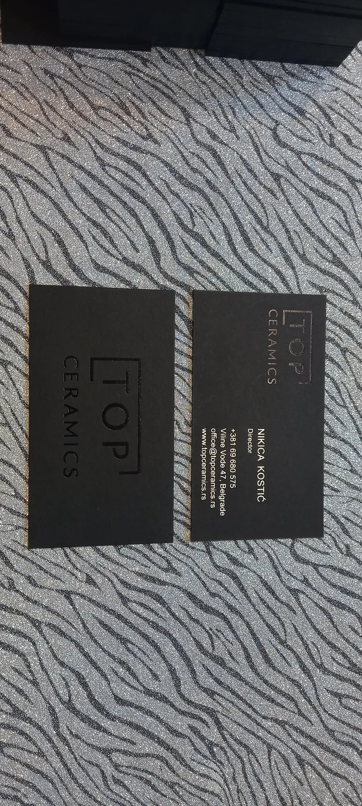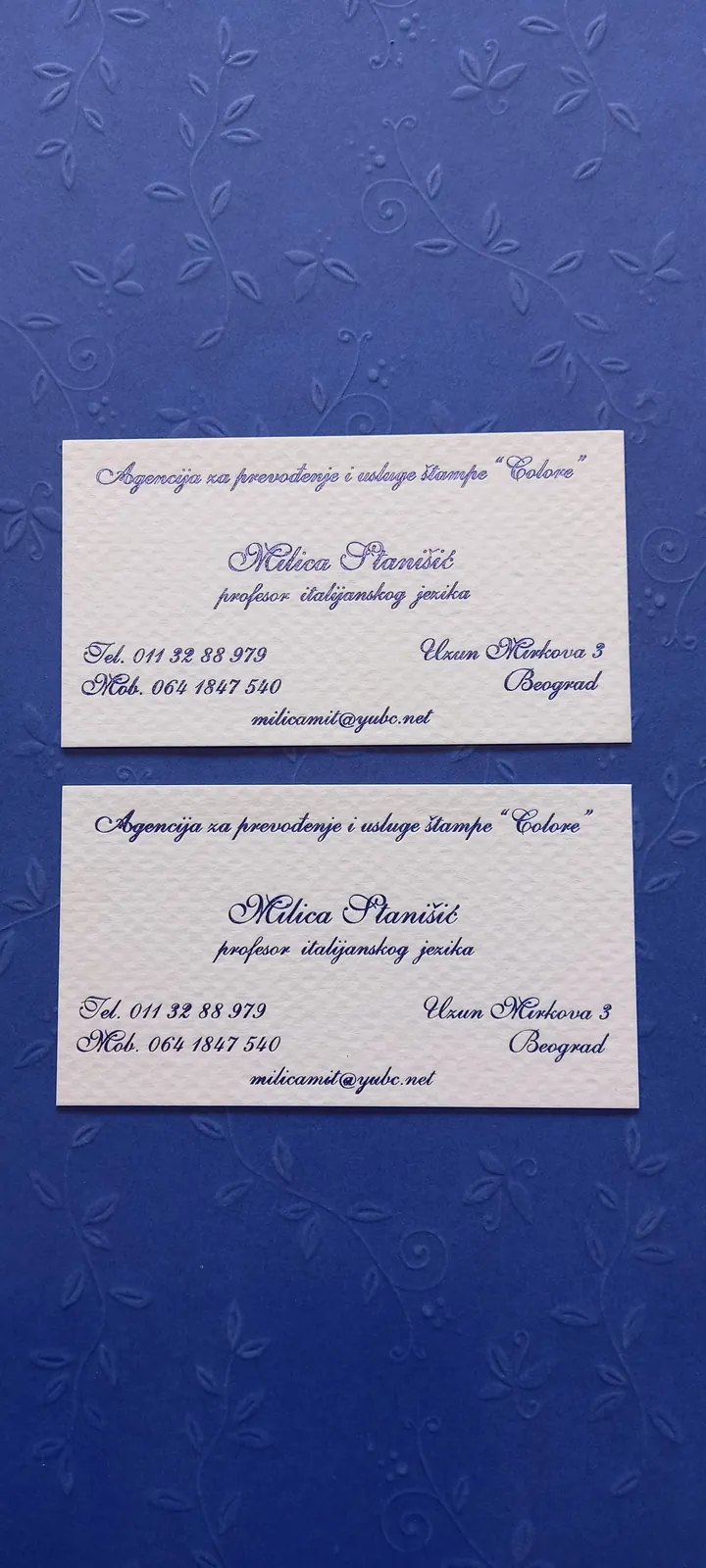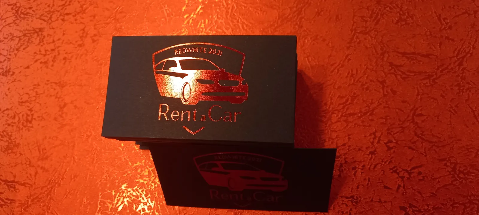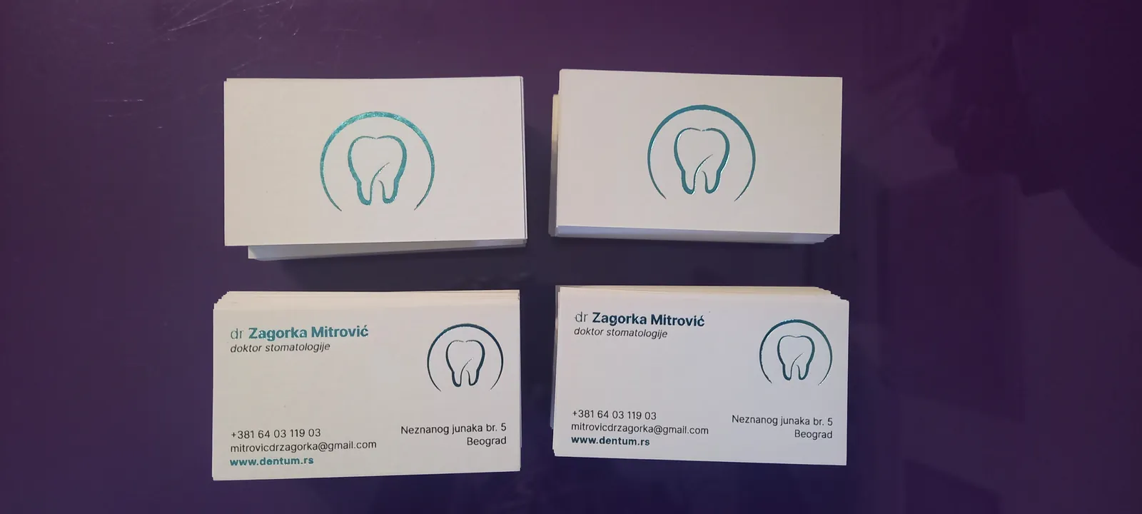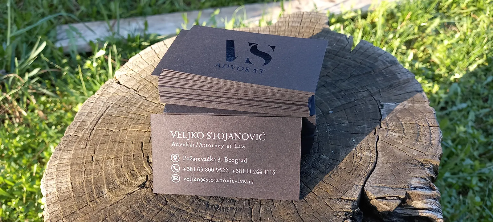 Radimo često foliotisak u raznim bojama na specijalnim italijanskim papirima: crni foliotisak na crnom papiru zaista je veoma efektan! Zatim crvena folija, zelena, crna folija na belom papiru, tirkizno-plava folija, plava. Beli foliotisak na tamnim papirima. Ideje naših klijenata su nepresušne, mi se trudimo da sve želje ispunimo. Često nam klijenti traže crni foliotisak na belom papiru jer folija ima veći sjaj od obične crne štampe i slova su utisnuta.