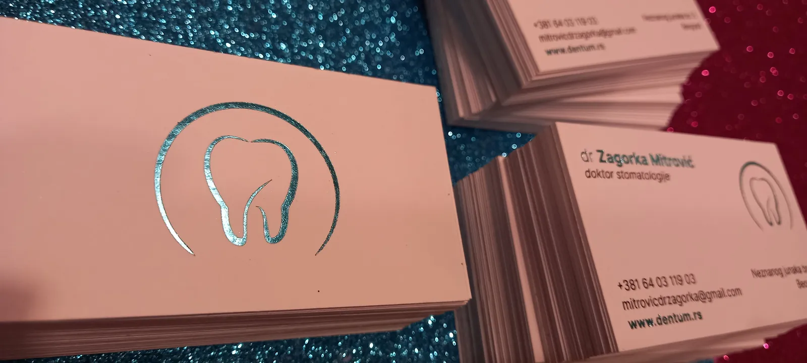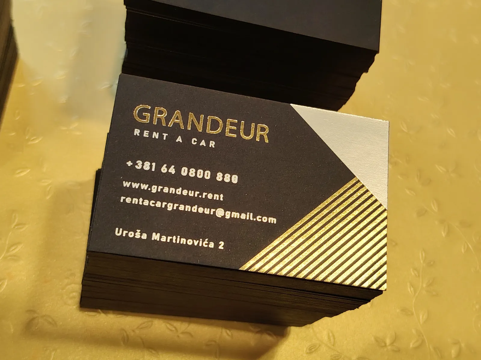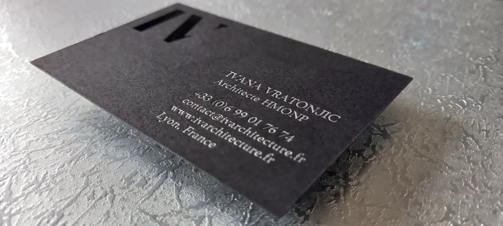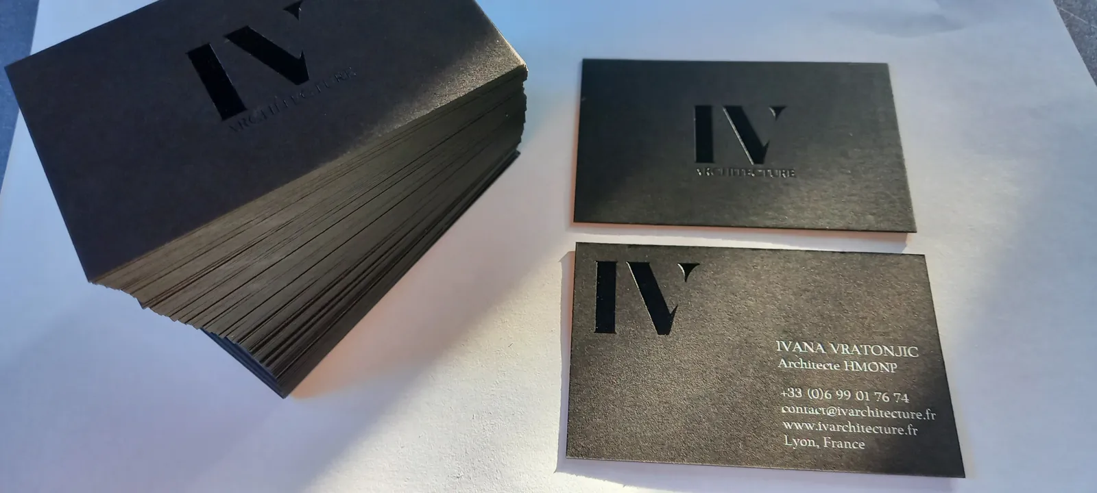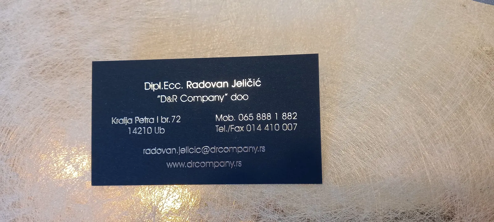 Radimo često foliotisak u raznim bojama na specijalnim italijanskim papirima: crni foliotisak na crnom papiru zaista je veoma efektan! Zatim crvena folija, zelena, crna folija na belom papiru, tirkizno-plava folija, plava. Beli foliotisak na tamnim papirima. Ideje naših klijenata su nepresušne, mi se trudimo da sve želje ispunimo. Često nam klijenti traže crni foliotisak na belom papiru jer folija ima veći sjaj od obične crne štampe i slova su utisnuta.