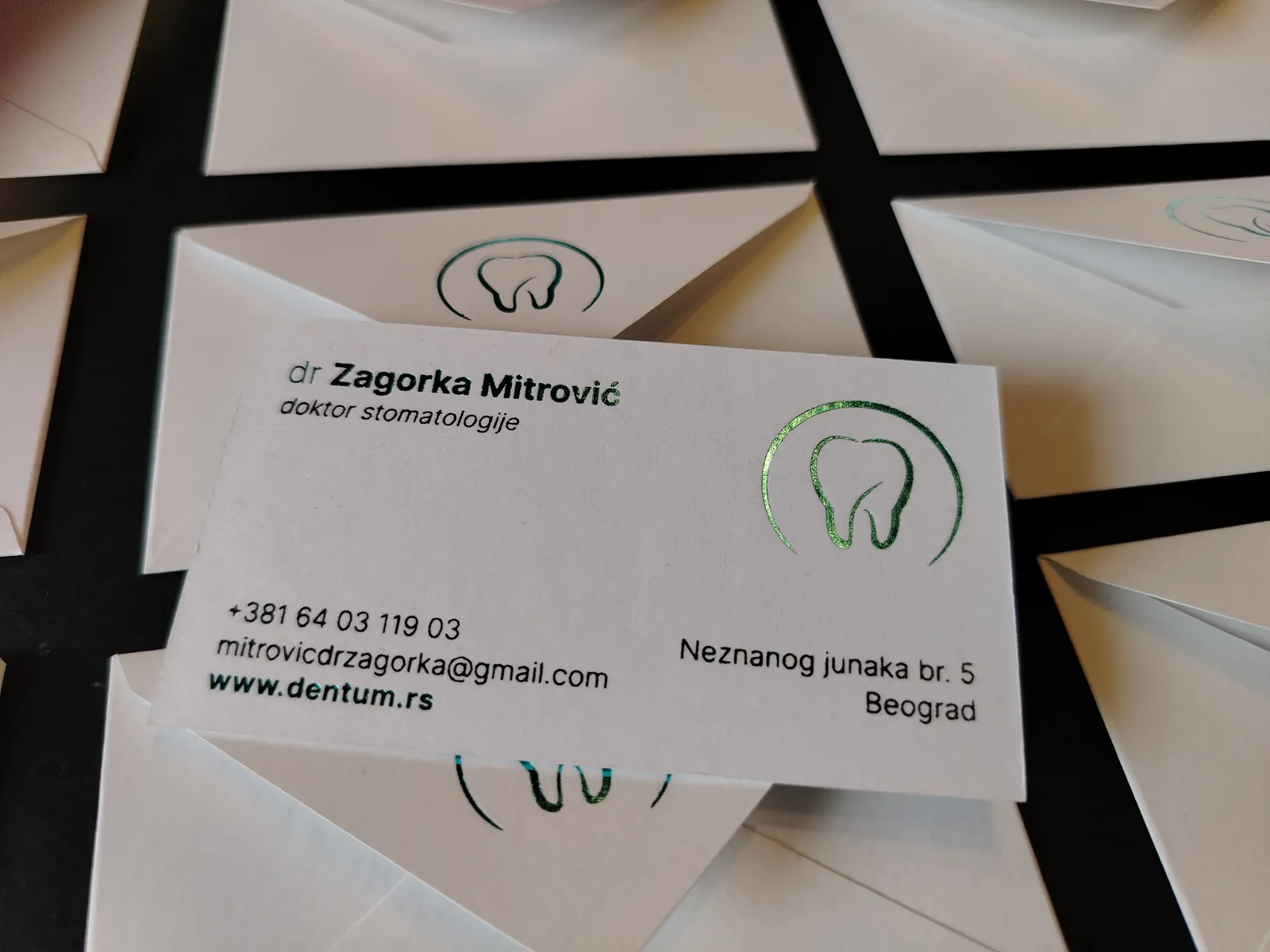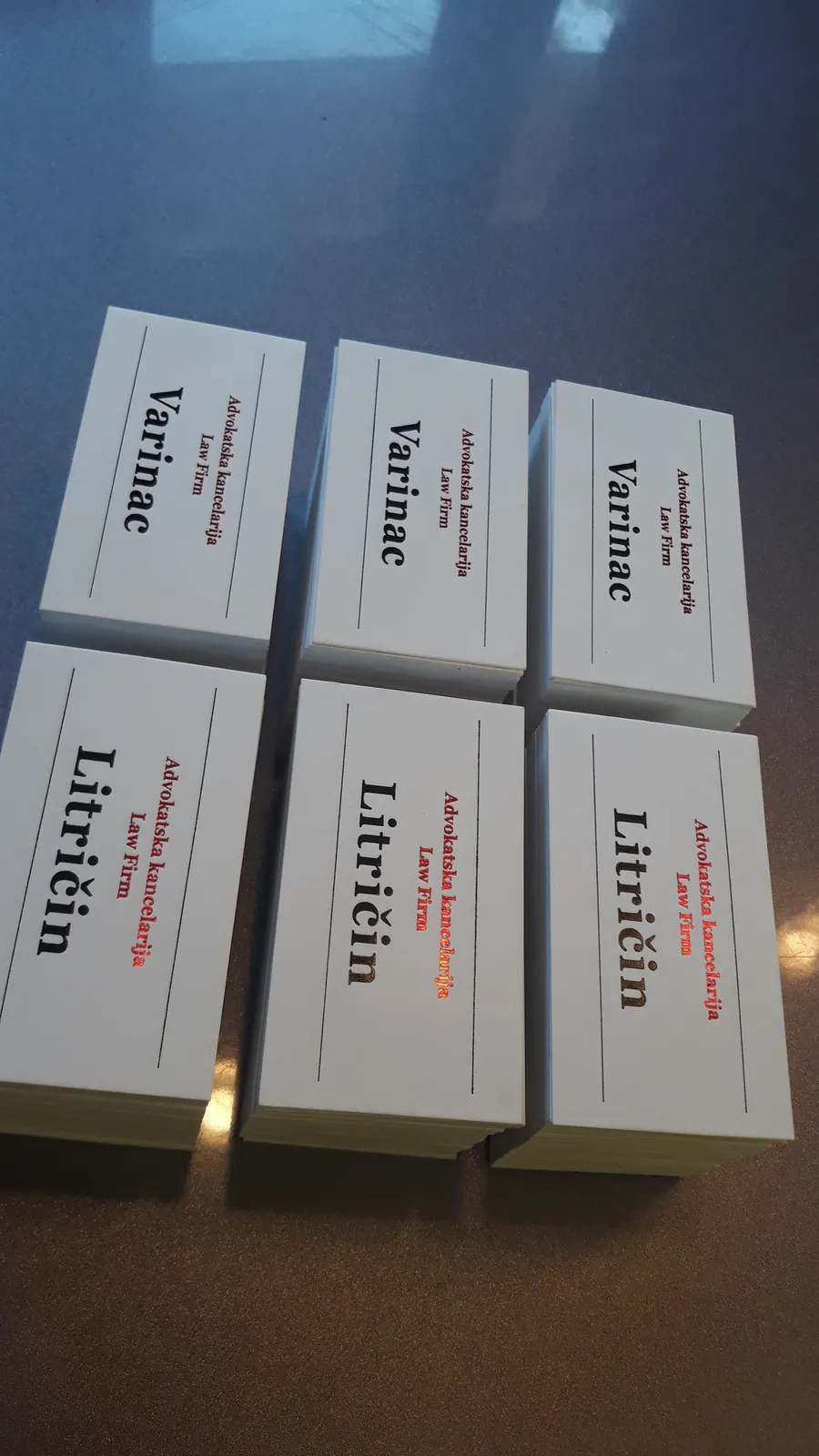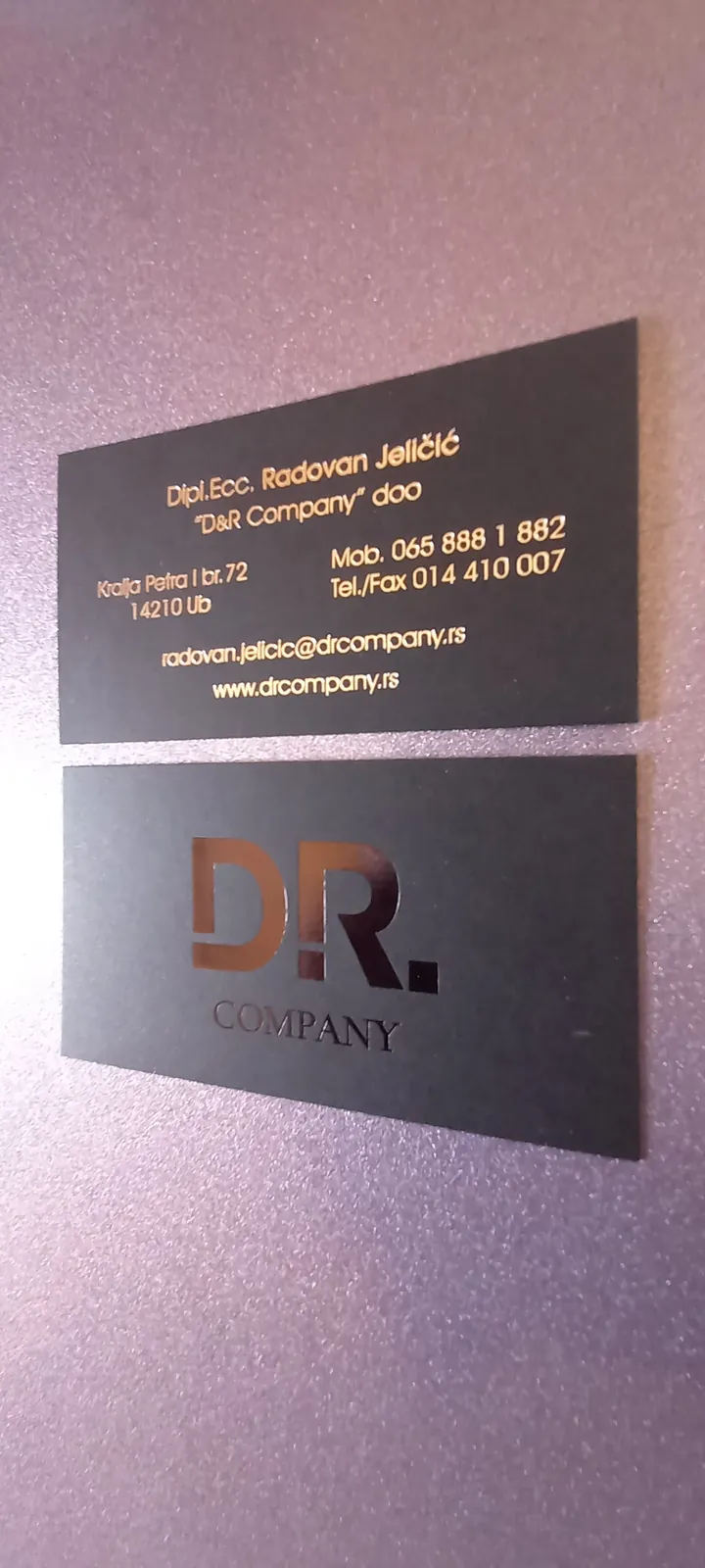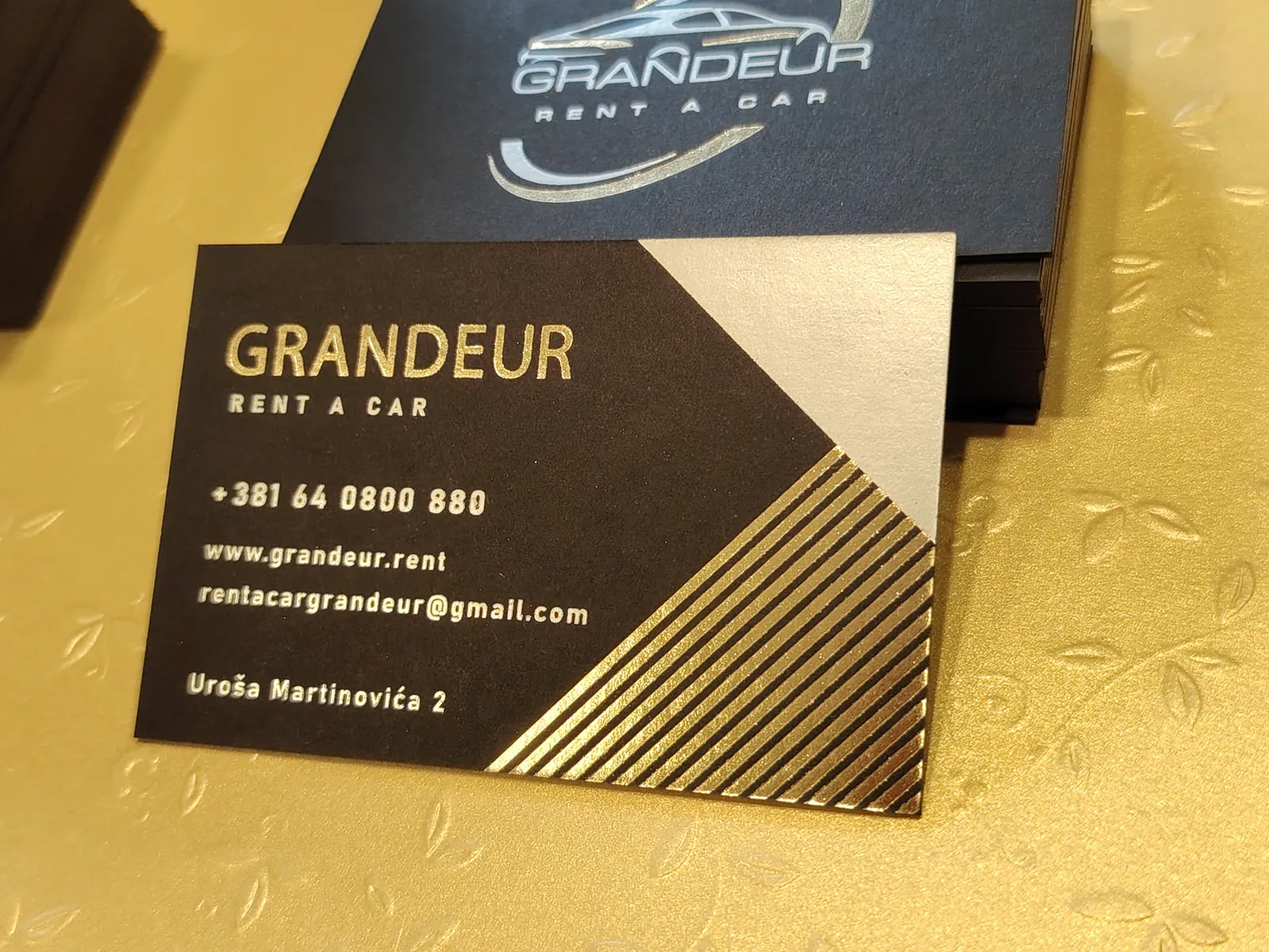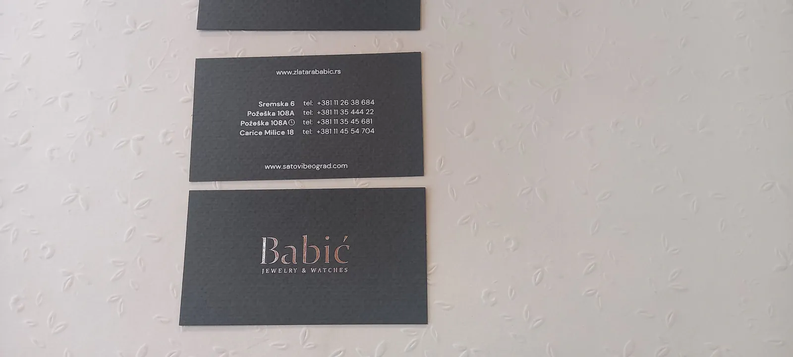 Radimo često foliotisak u raznim bojama na specijalnim italijanskim papirima: crni foliotisak na crnom papiru zaista je veoma efektan! Zatim crvena folija, zelena, crna folija na belom papiru, tirkizno-plava folija, plava. Beli foliotisak na tamnim papirima. Ideje naših klijenata su nepresušne, mi se trudimo da sve želje ispunimo. Često nam klijenti traže crni foliotisak na belom papiru jer folija ima veći sjaj od obične crne štampe i slova su utisnuta.