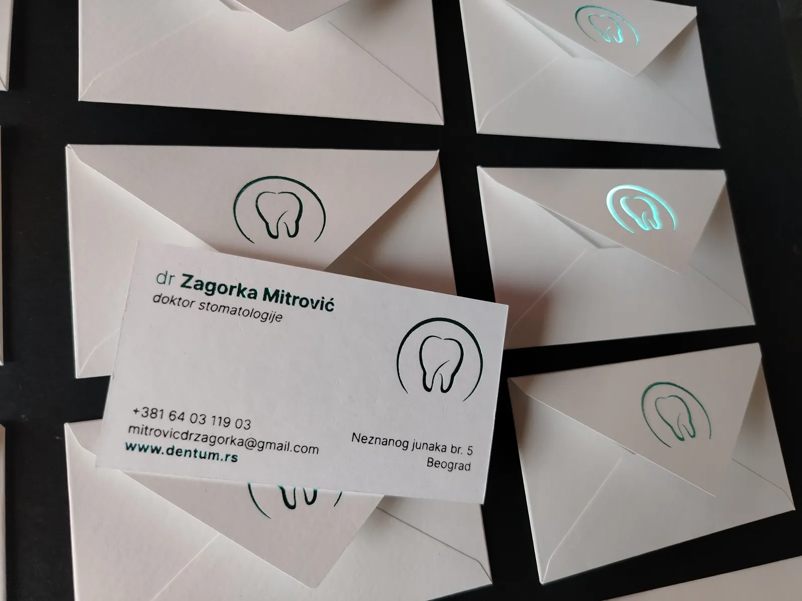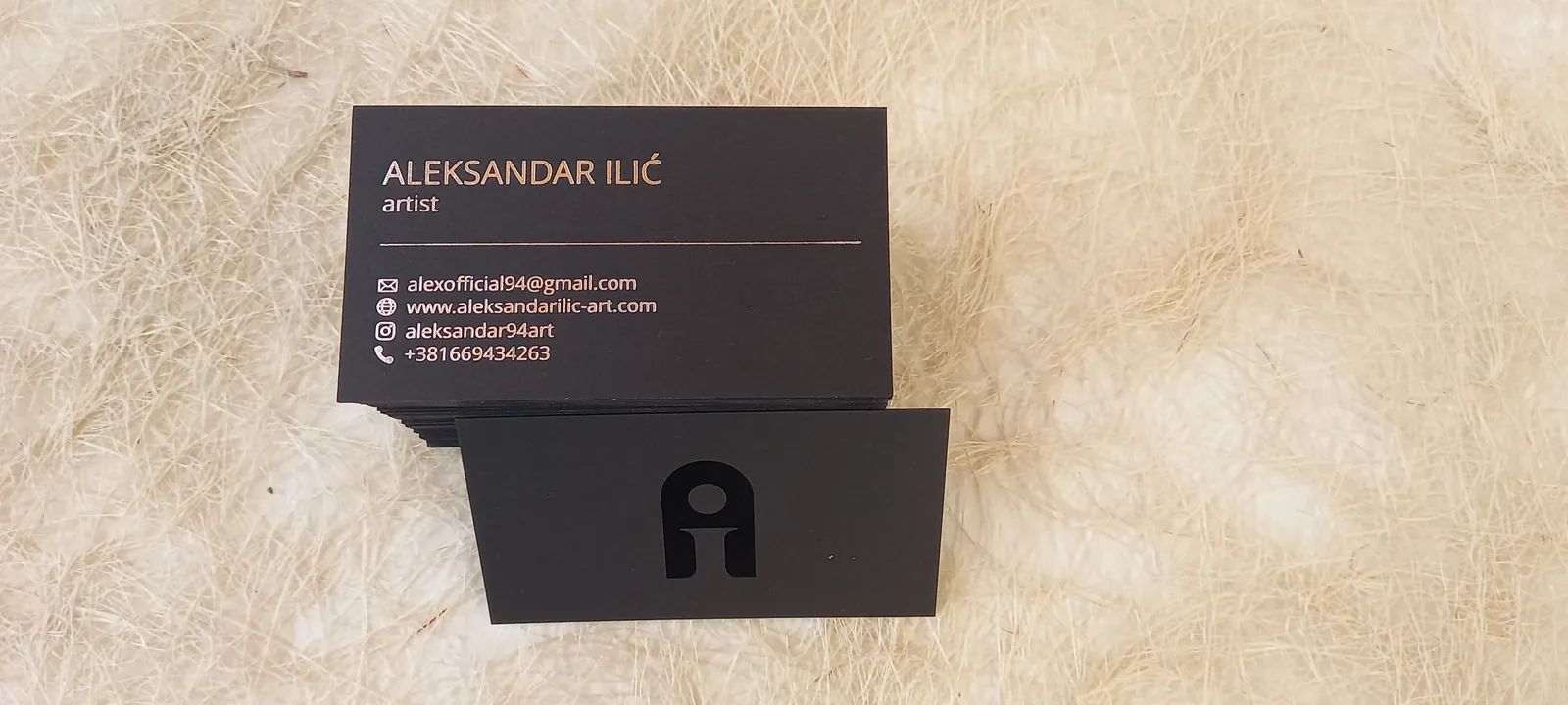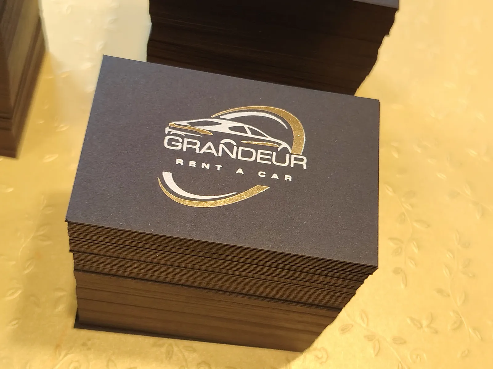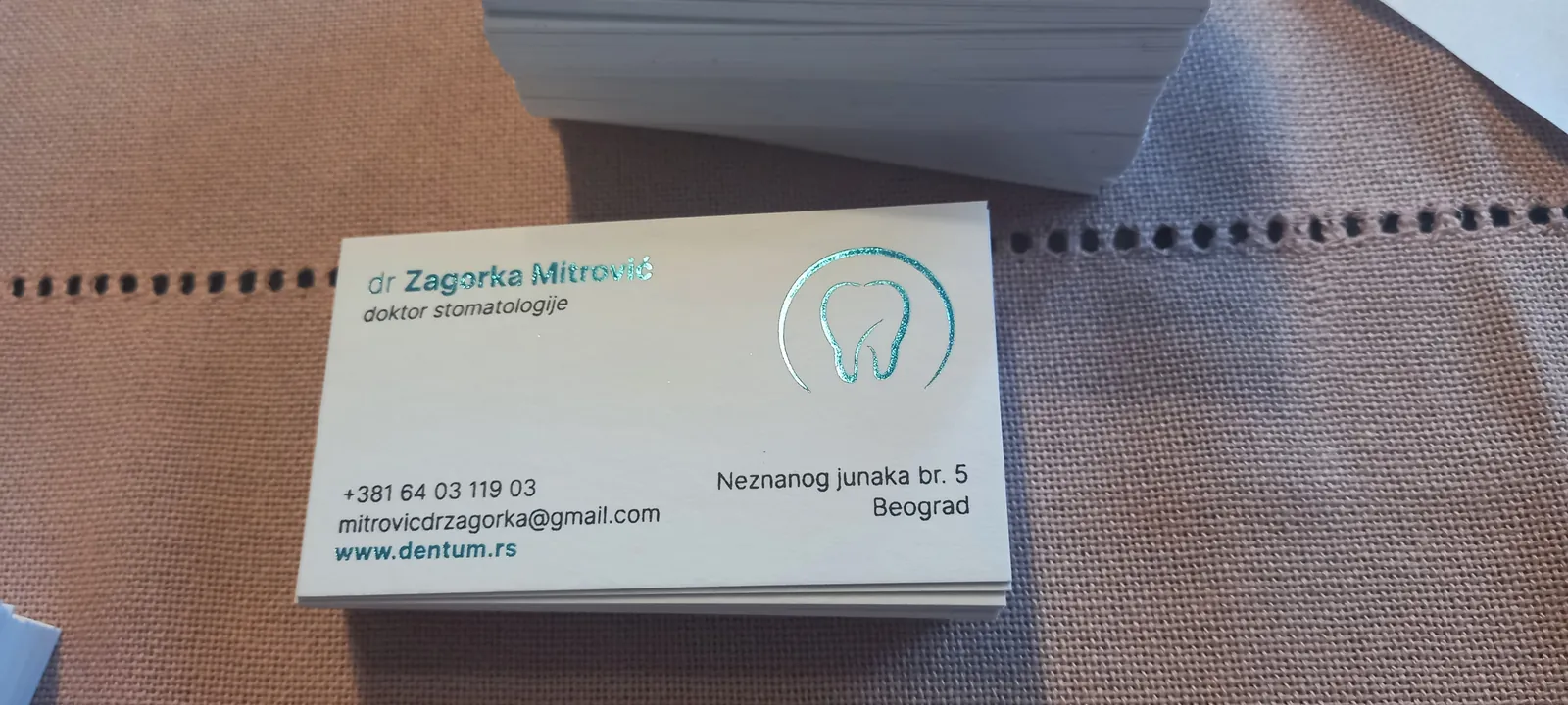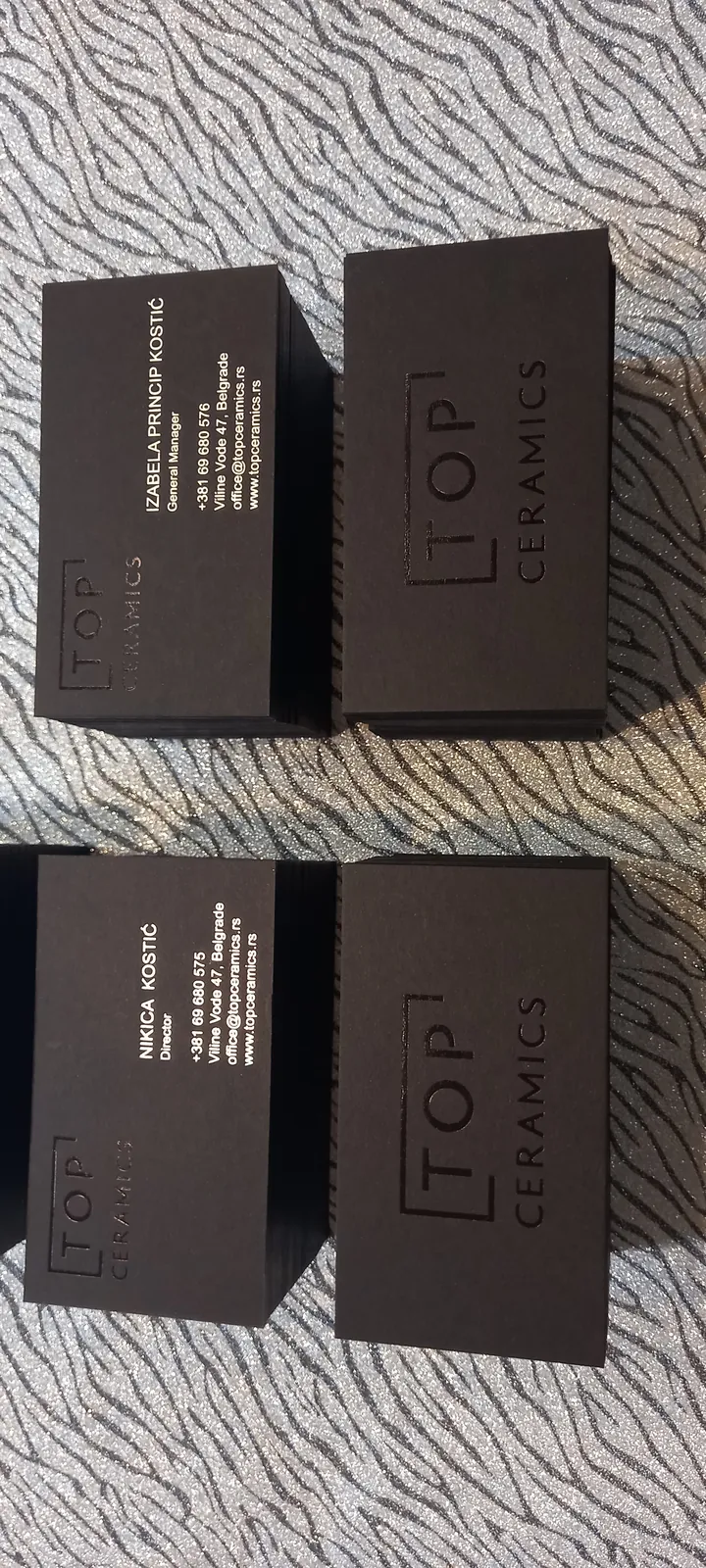Radimo često foliotisak u raznim bojama na specijalnim italijanskim papirima: crni foliotisak na crnom papiru zaista je veoma efektan! Zatim crvena folija, zelena, crna folija na belom papiru, tirkizno-plava folija, plava. Beli foliotisak na tamnim papirima. Ideje naših klijenata su nepresušne, mi se trudimo da sve želje ispunimo. Često nam klijenti traže crni foliotisak na belom papiru jer folija ima veći sjaj od obične crne štampe i slova su utisnuta.