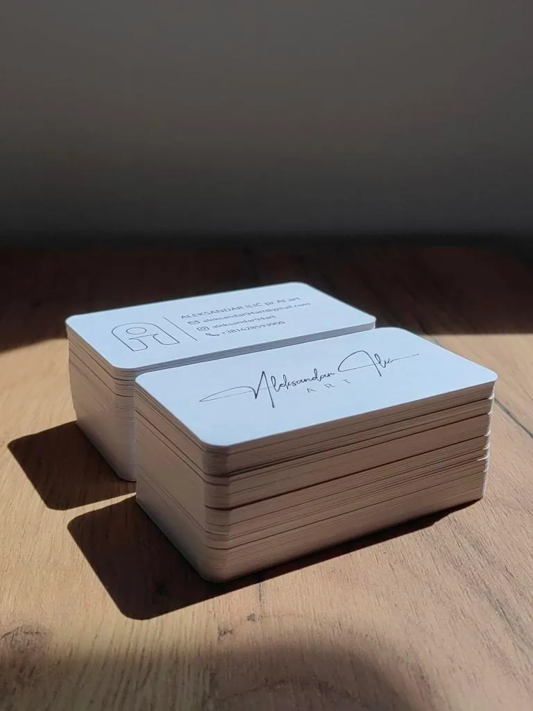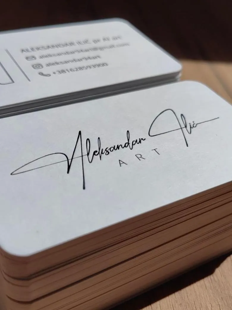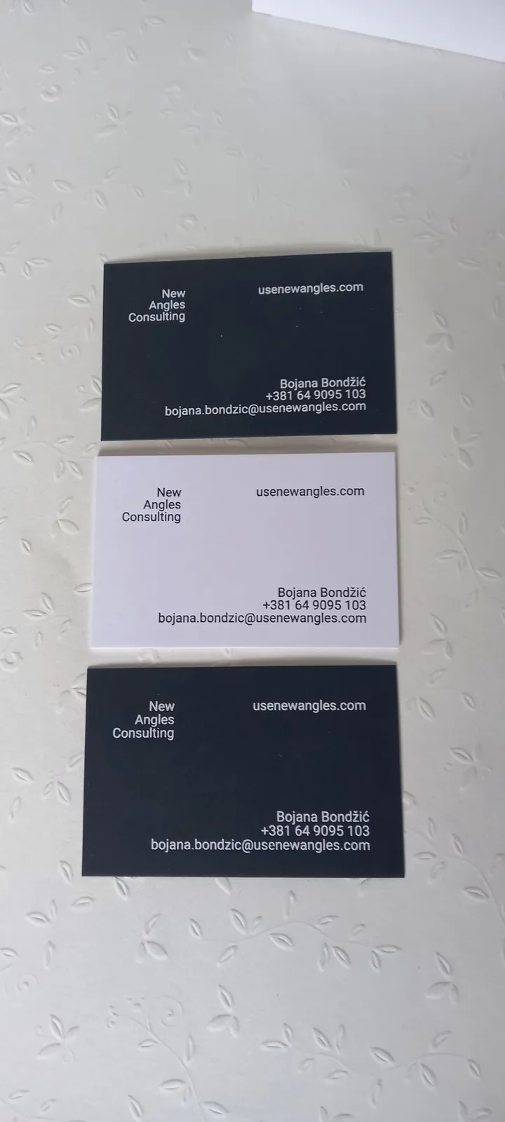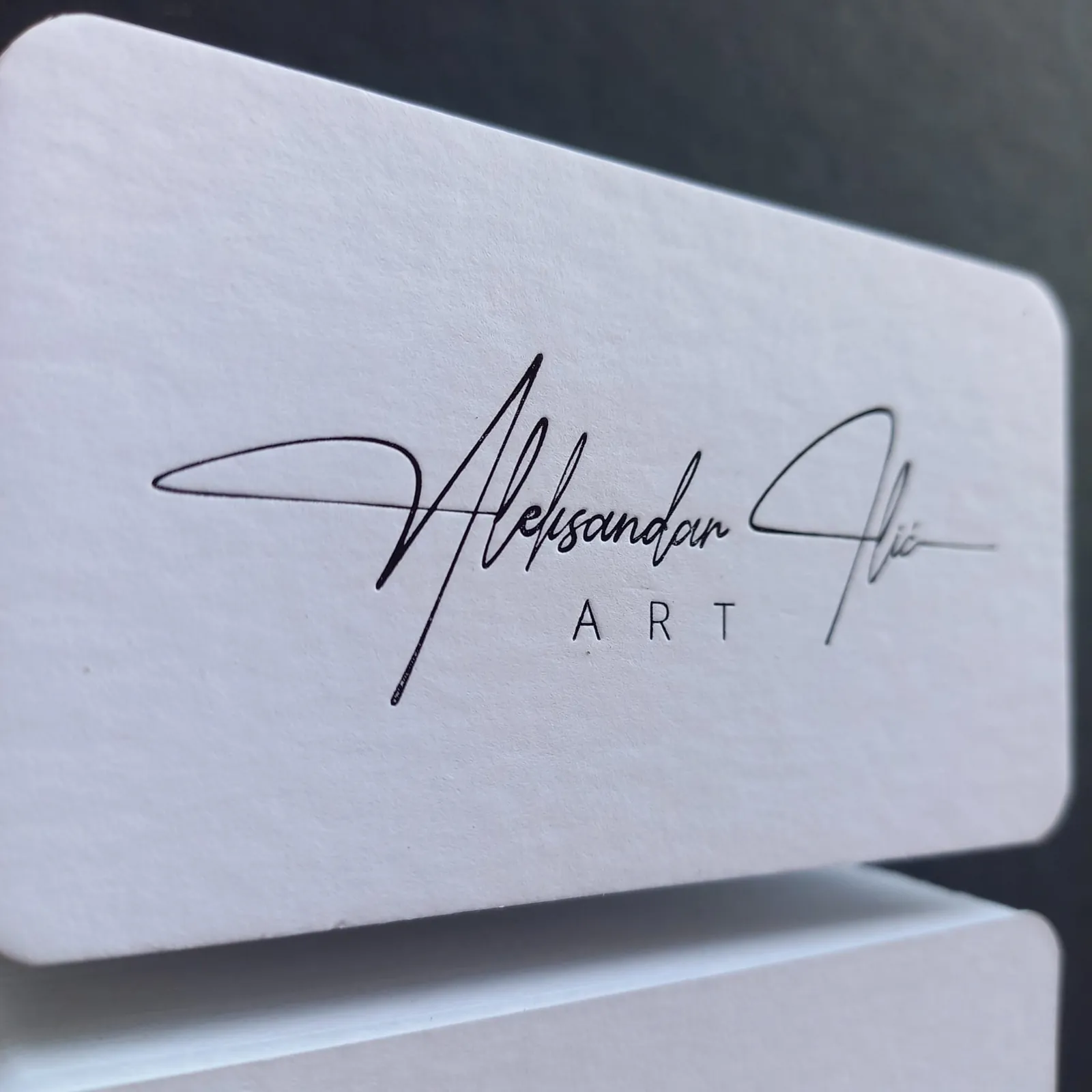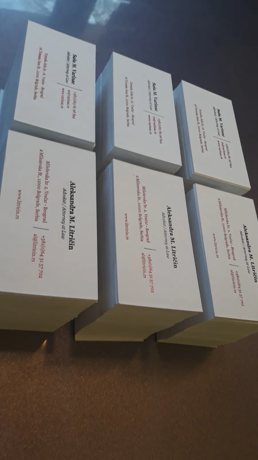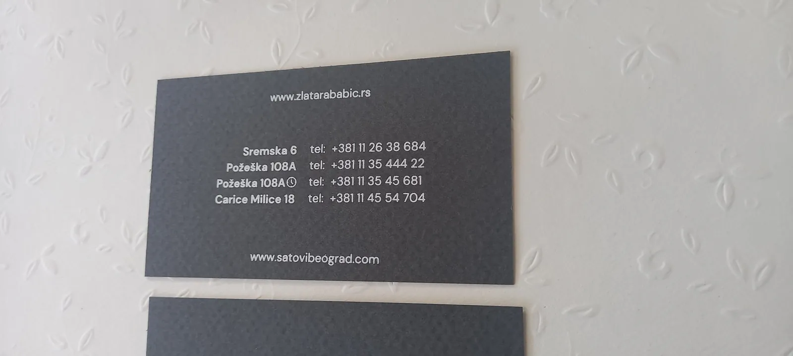 Radimo često foliotisak u raznim bojama na specijalnim italijanskim papirima: crni foliotisak na crnom papiru zaista je veoma efektan! Zatim crvena folija, zelena, crna folija na belom papiru, tirkizno-plava folija, plava. Beli foliotisak na tamnim papirima. Ideje naših klijenata su nepresušne, mi se trudimo da sve želje ispunimo. Često nam klijenti traže crni foliotisak na belom papiru jer folija ima veći sjaj od obične crne štampe i slova su utisnuta.