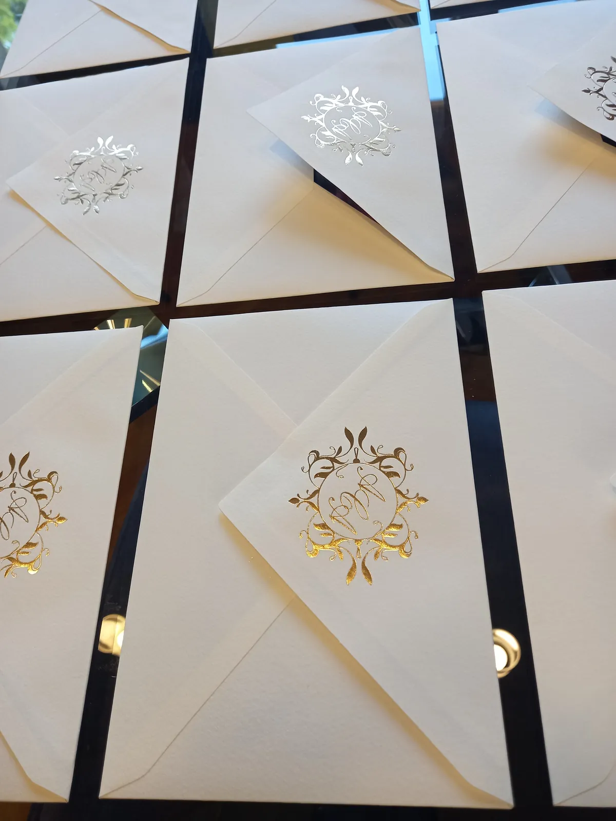 Često na kovertama štampamo inicijale/ imena mladenaca ili za rođendane, inicijale slavljenika: