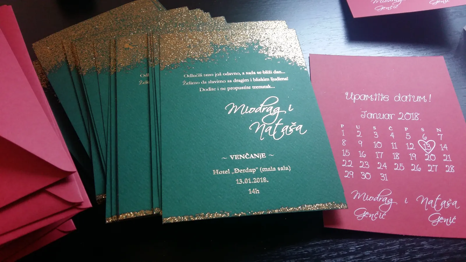 Save the Date – često se godinu dana pre venčanja šalje gostima samo ,,sačuvaj datum’’ kartica pre same pozivnice, kako bi gosti mogli da na vreme planiraju vaše venčanje. Obično je ovakva karta sa kovertom i u stilu same pozivnice, koja će se gostima uručiti kasnije kada se budu znali svi detalji proslave, satnica.