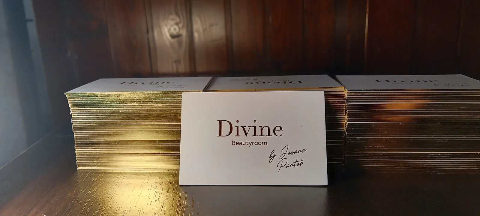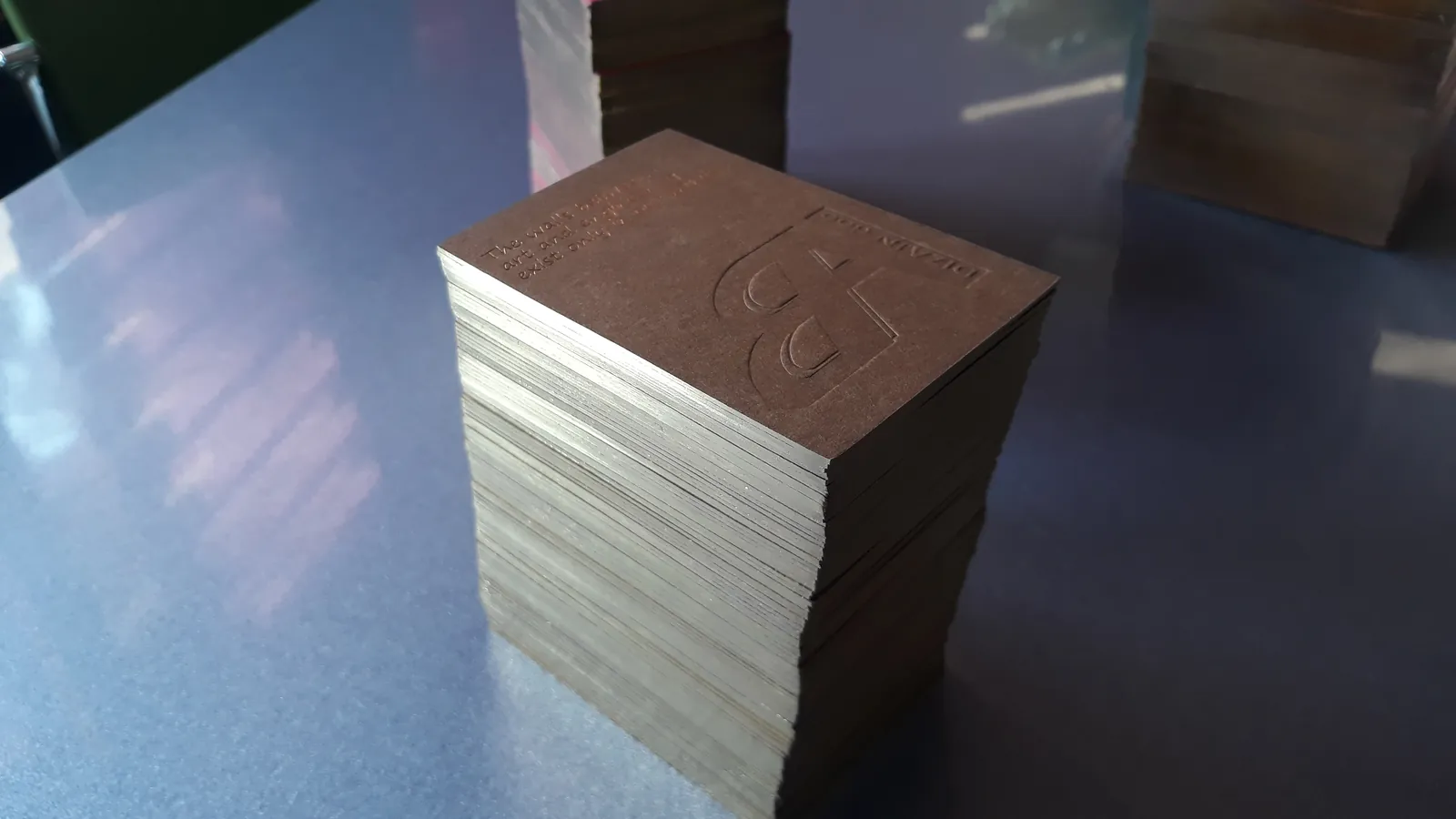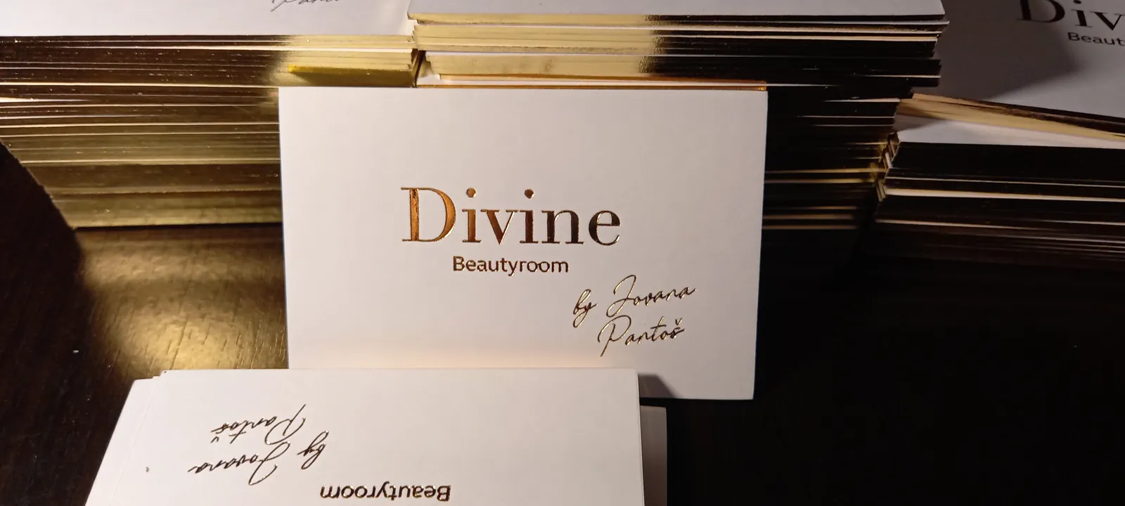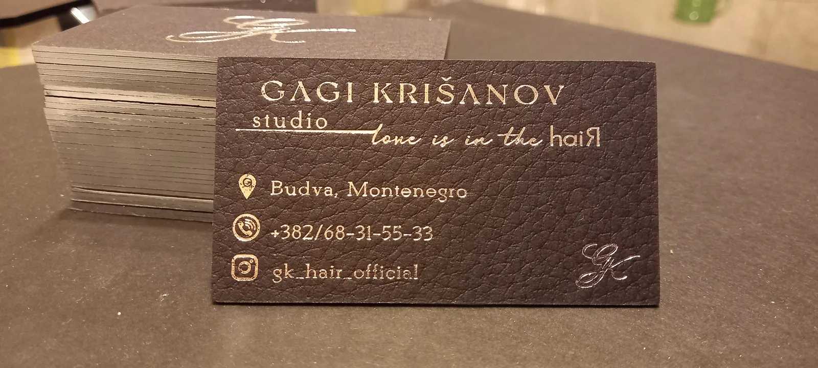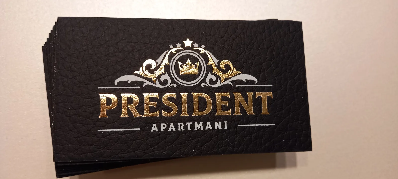 Kada neko zaista želi otmene, luksuzne i neobične vizit karte, neka se obrati nama. Za ovakve vizit karte zaista je potrebno umeće stečeno godinama rada. Radimo vizit karte sa zlatnim ivicama ili srebrnim ivicama sa strane. Radimo vizit karte kao sendvič: beli papir- narandžasti u sredini – pa beli papir. Verujte ovo i u inostranstvu retko ko radi, a u Srbiji skoro samo mi.