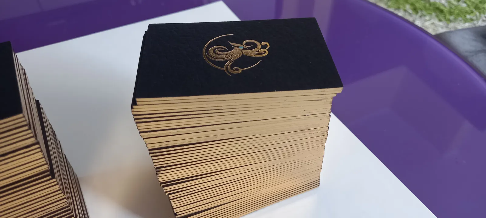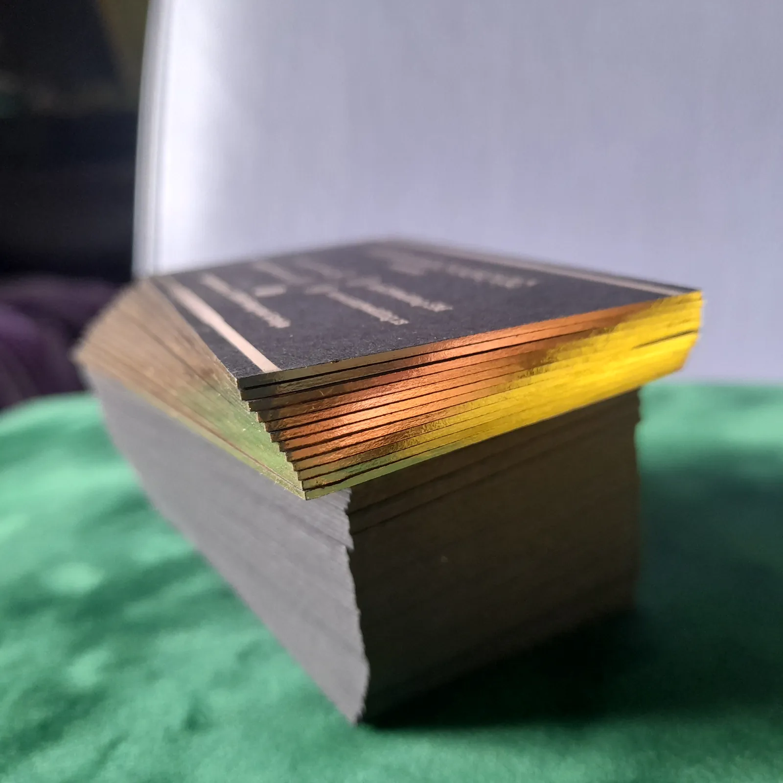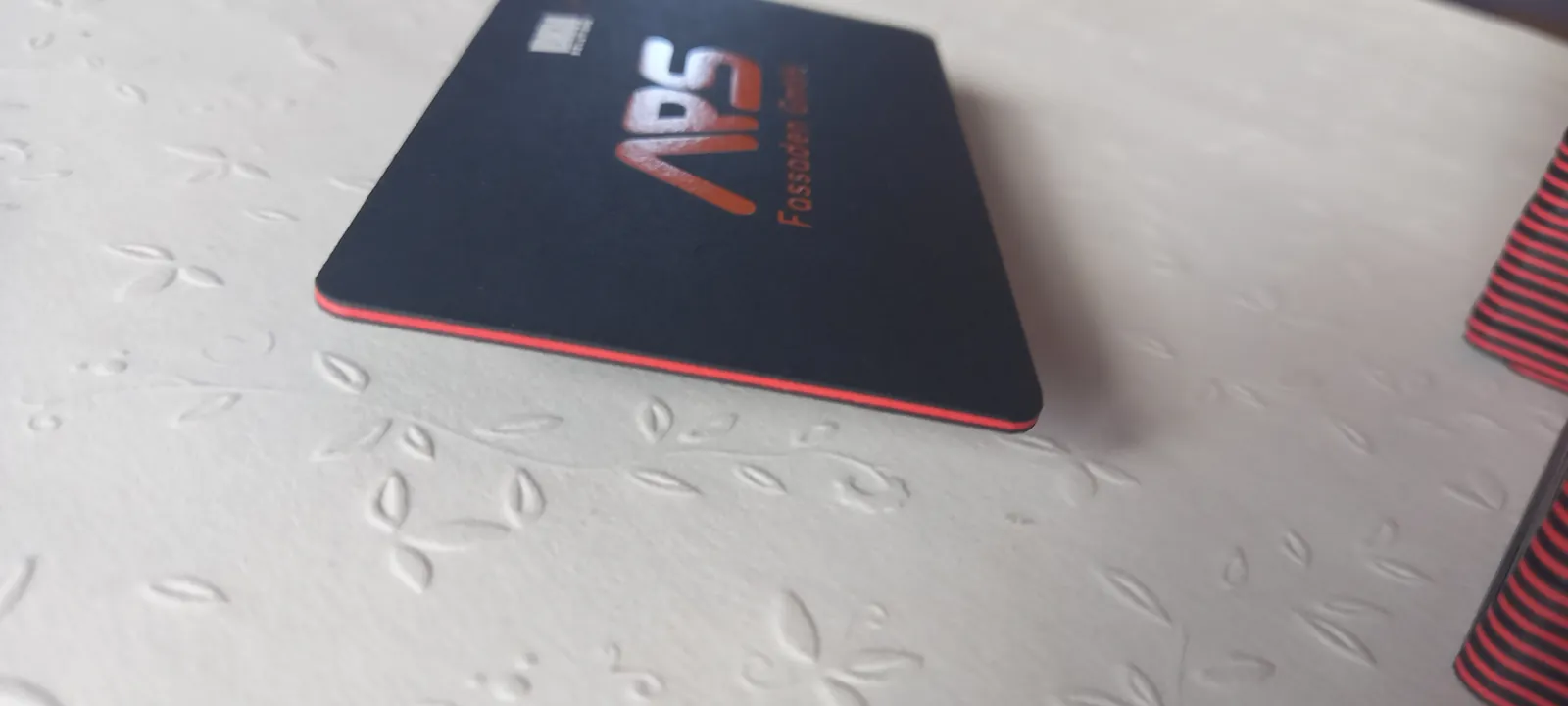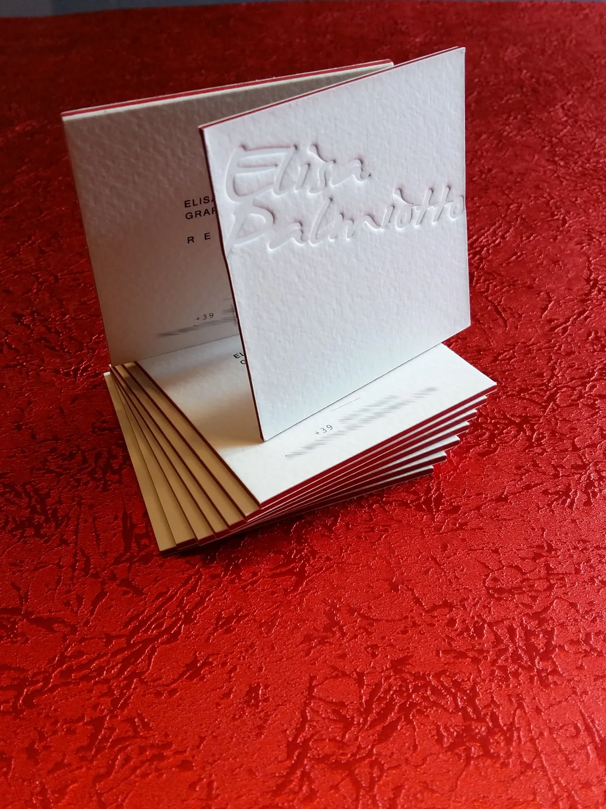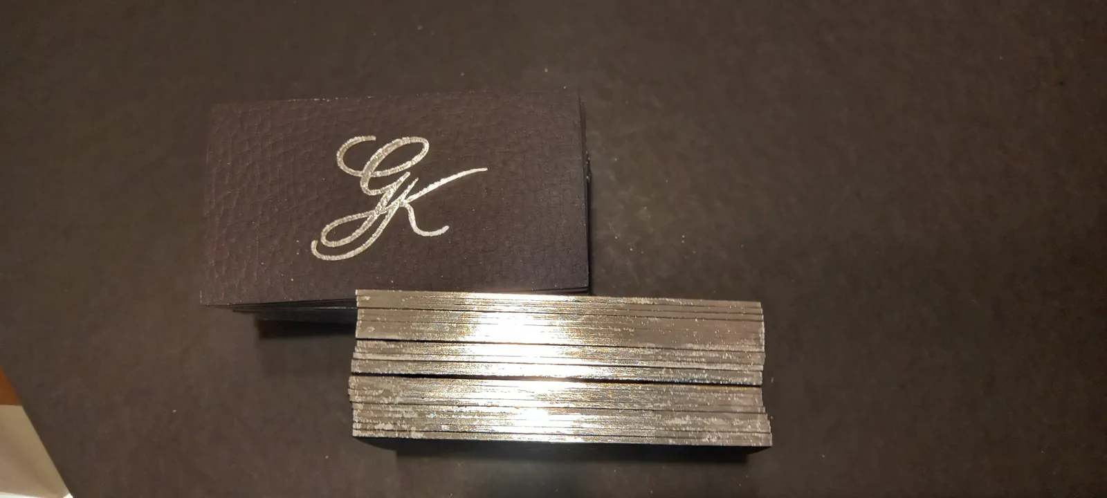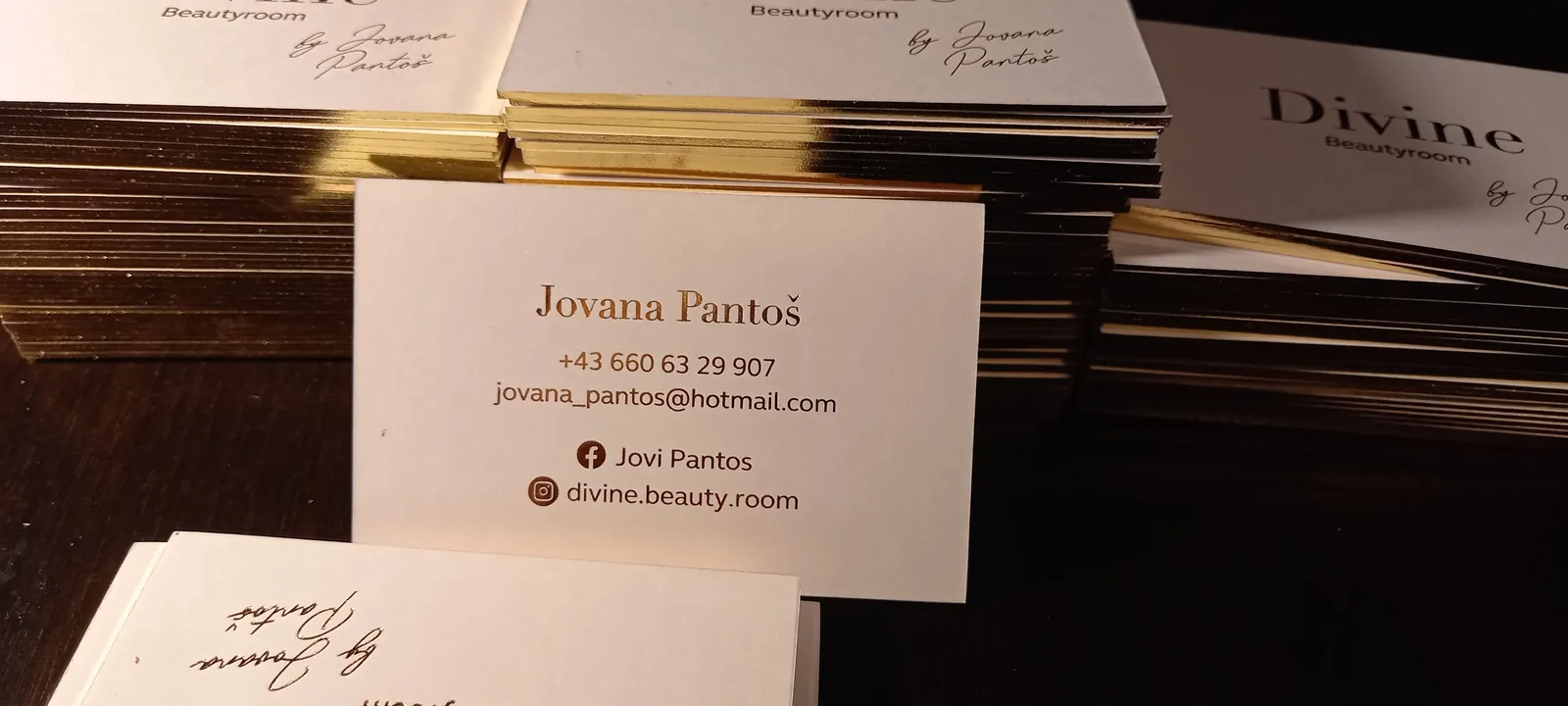 Kada neko zaista želi otmene, luksuzne i neobične vizit karte, neka se obrati nama. Za ovakve vizit karte zaista je potrebno umeće stečeno godinama rada. Radimo vizit karte sa zlatnim ivicama ili srebrnim ivicama sa strane. Radimo vizit karte kao sendvič: beli papir- narandžasti u sredini – pa beli papir. Verujte ovo i u inostranstvu retko ko radi, a u Srbiji skoro samo mi.