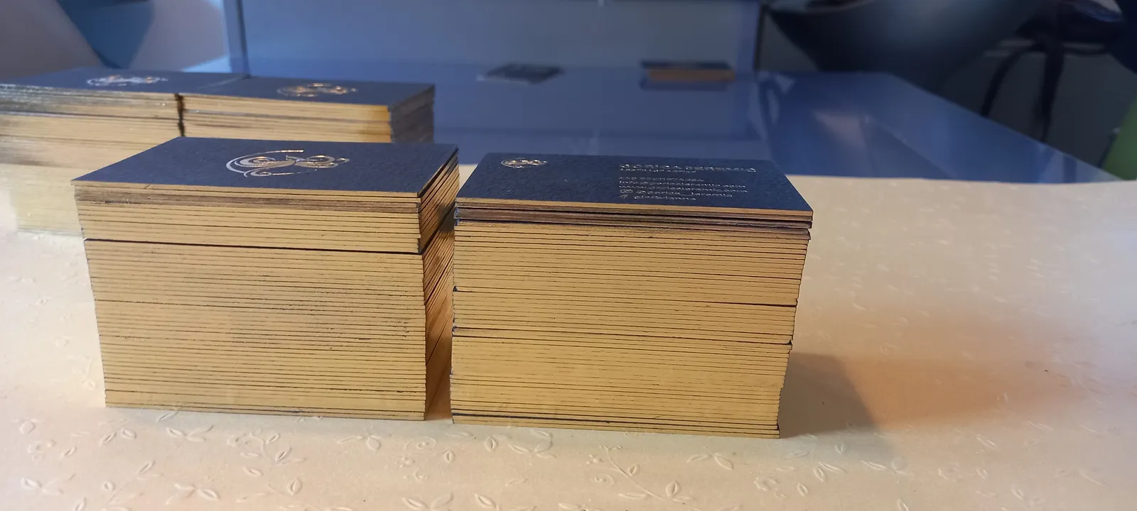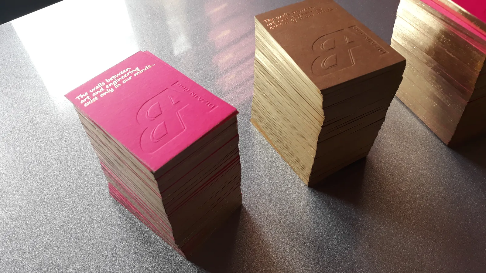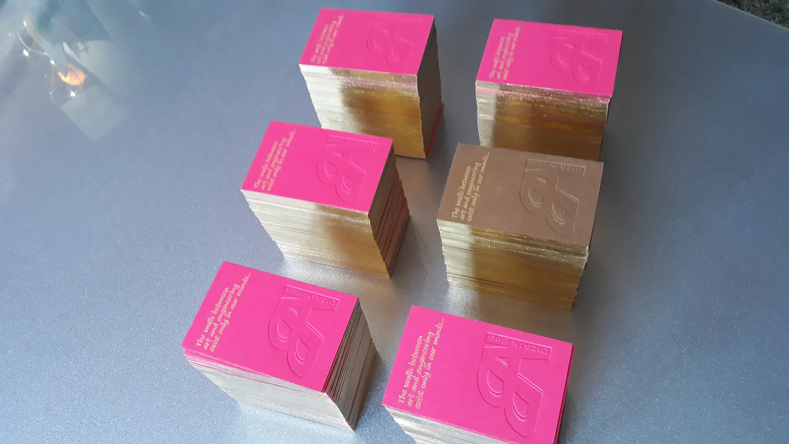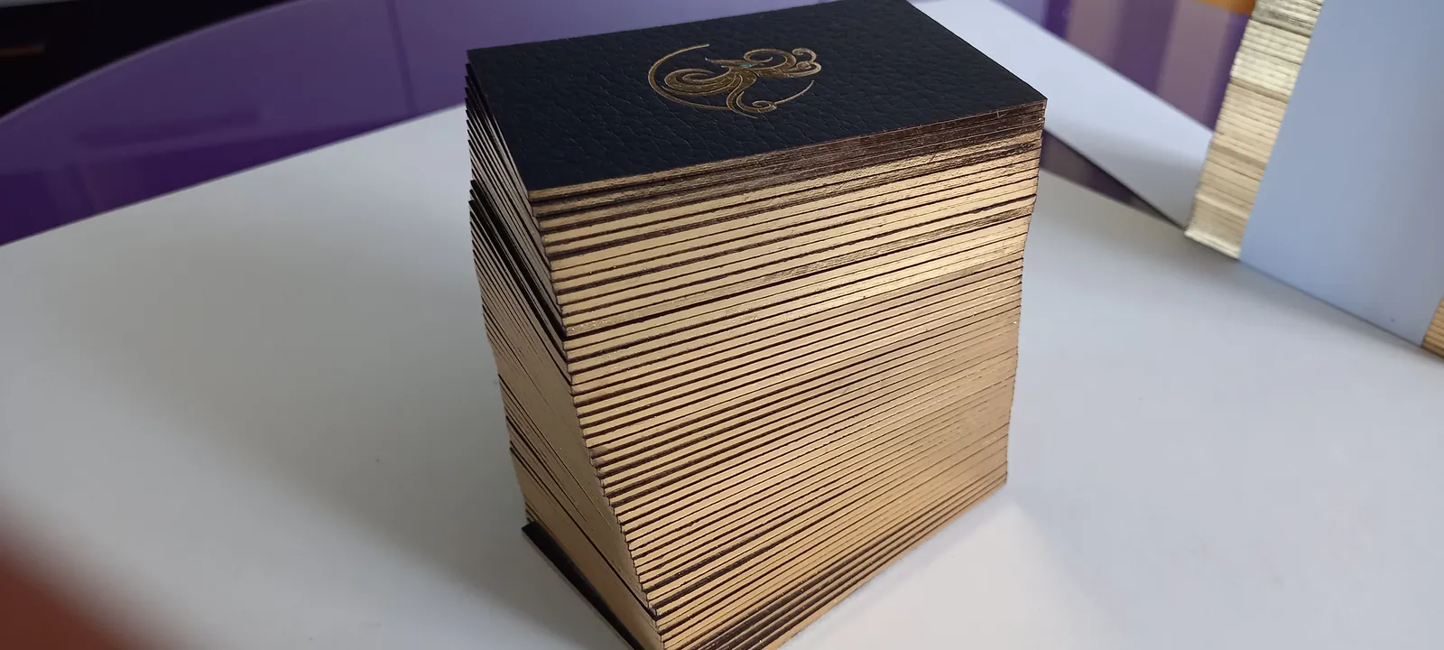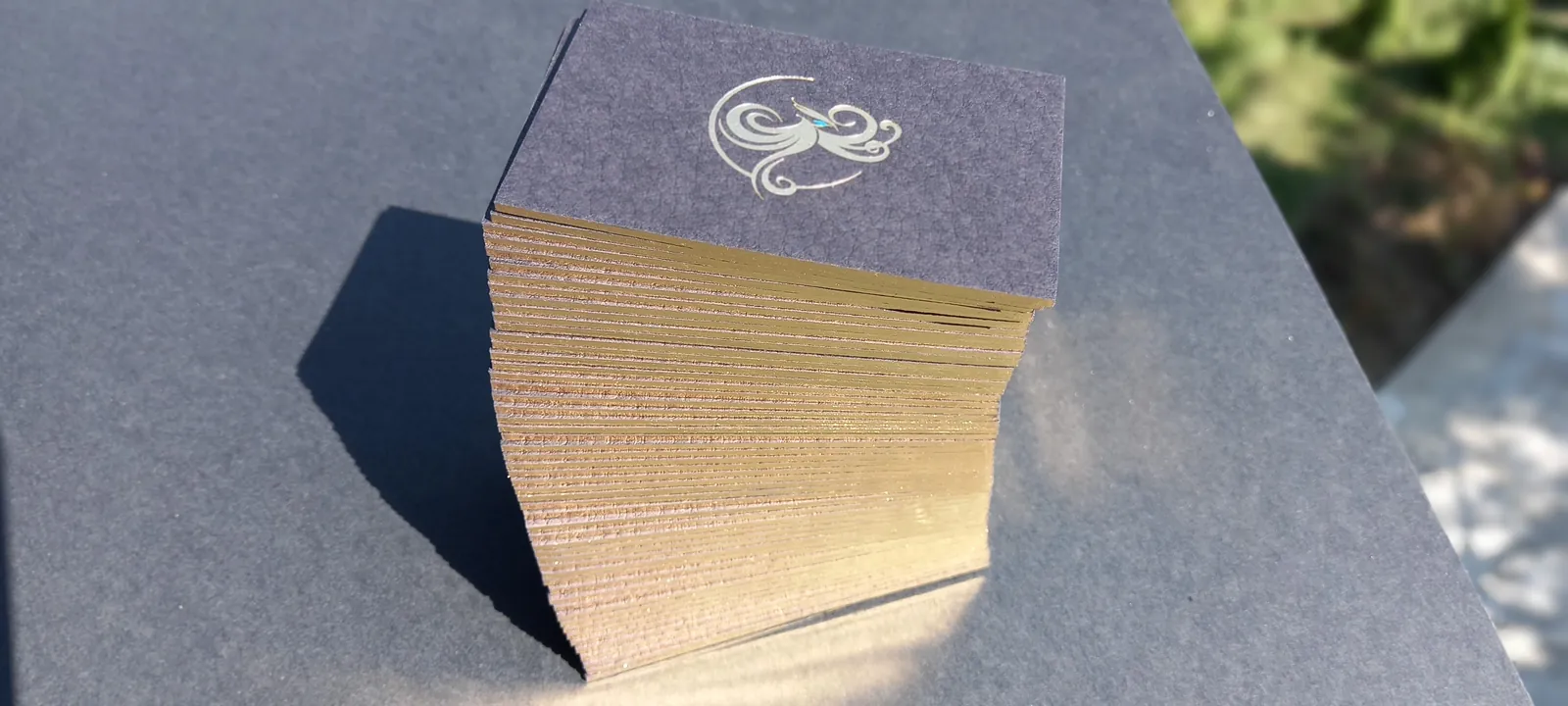 Kada neko zaista želi otmene, luksuzne i neobične vizit karte, neka se obrati nama. Za ovakve vizit karte zaista je potrebno umeće stečeno godinama rada. Radimo vizit karte sa zlatnim ivicama ili srebrnim ivicama sa strane. Radimo vizit karte kao sendvič: beli papir- narandžasti u sredini – pa beli papir. Verujte ovo i u inostranstvu retko ko radi, a u Srbiji skoro samo mi.