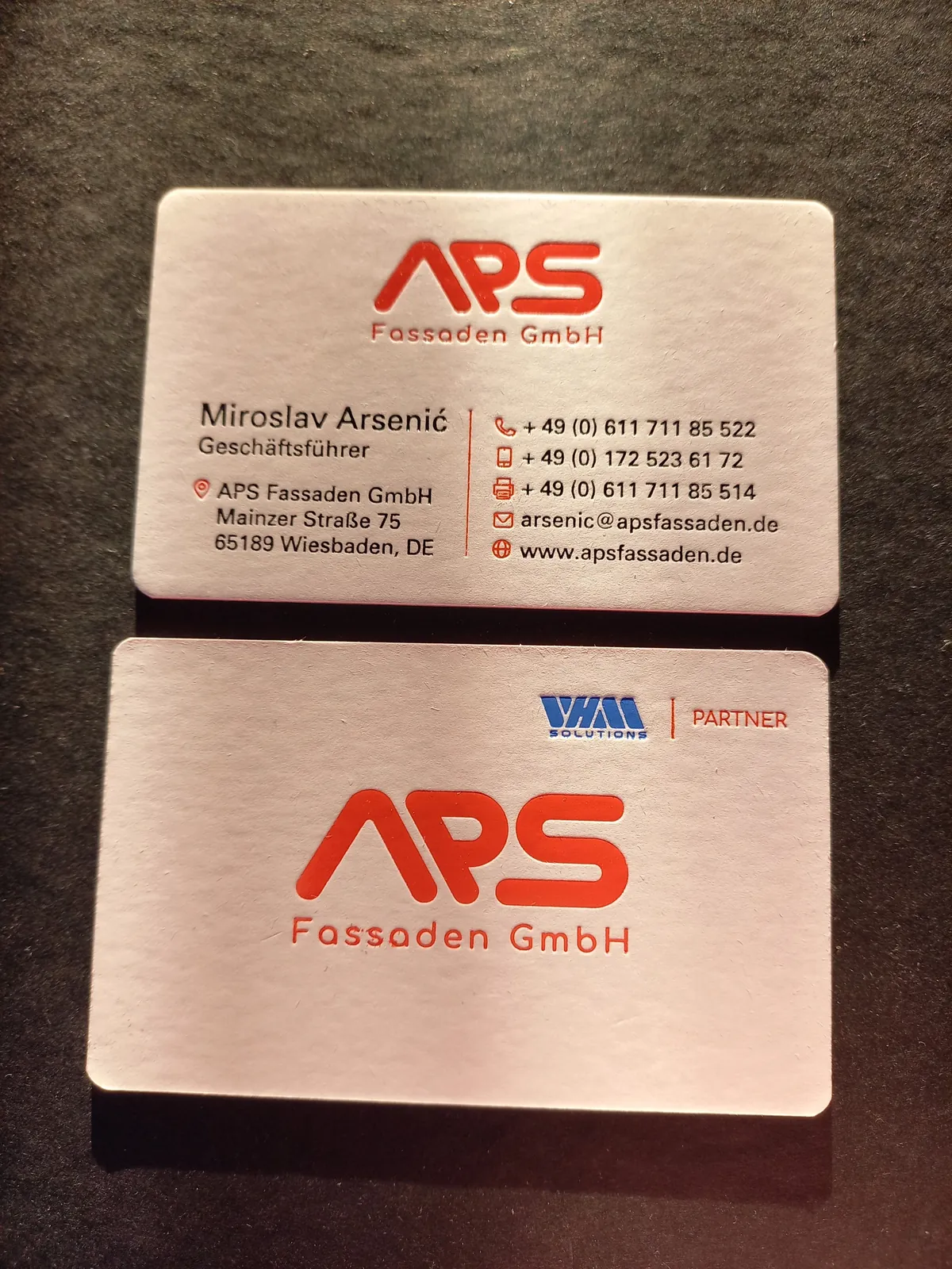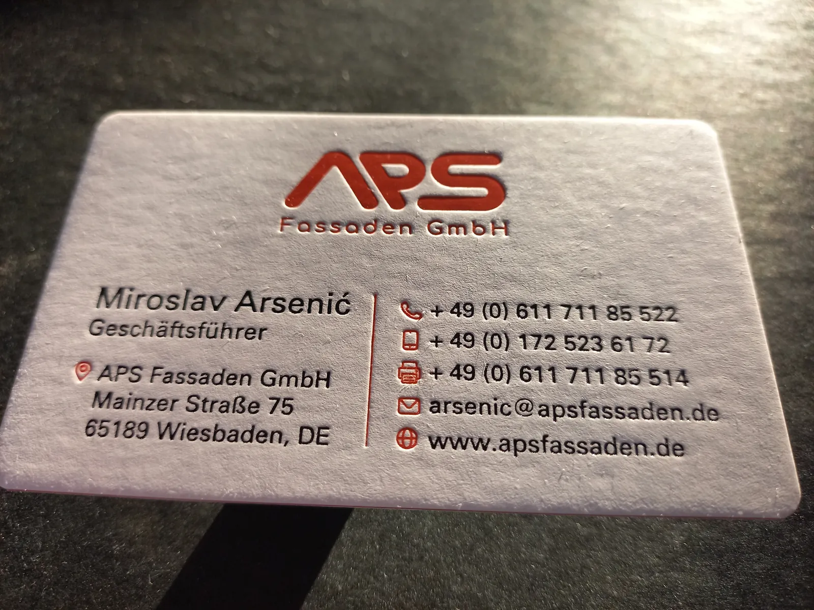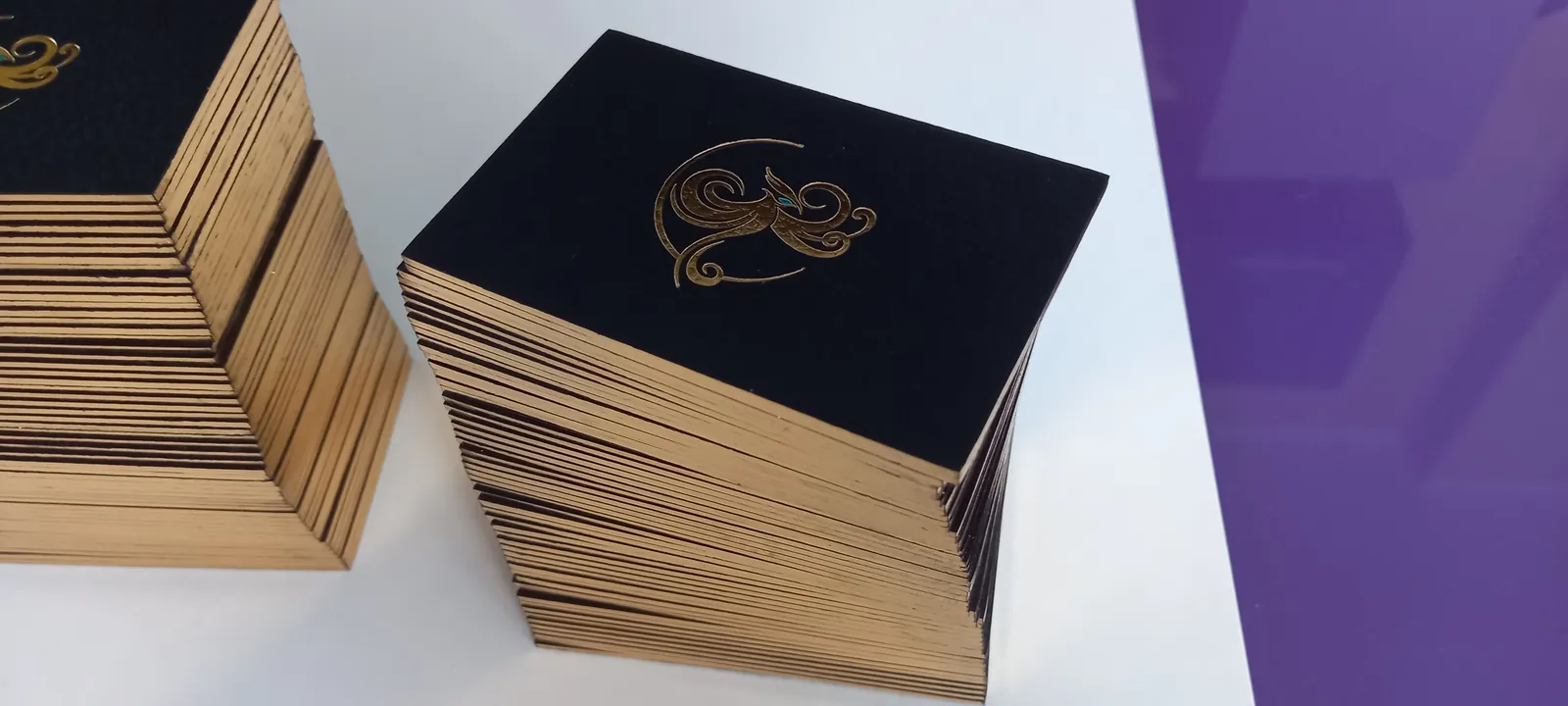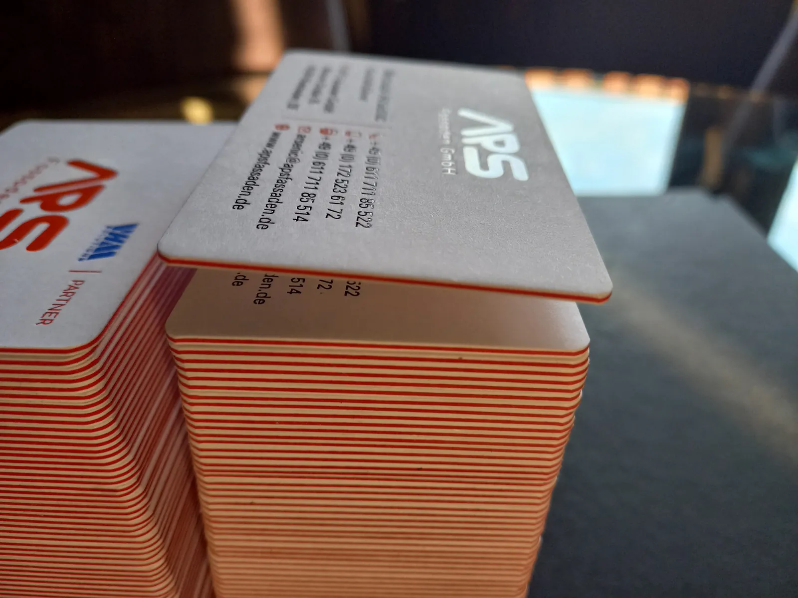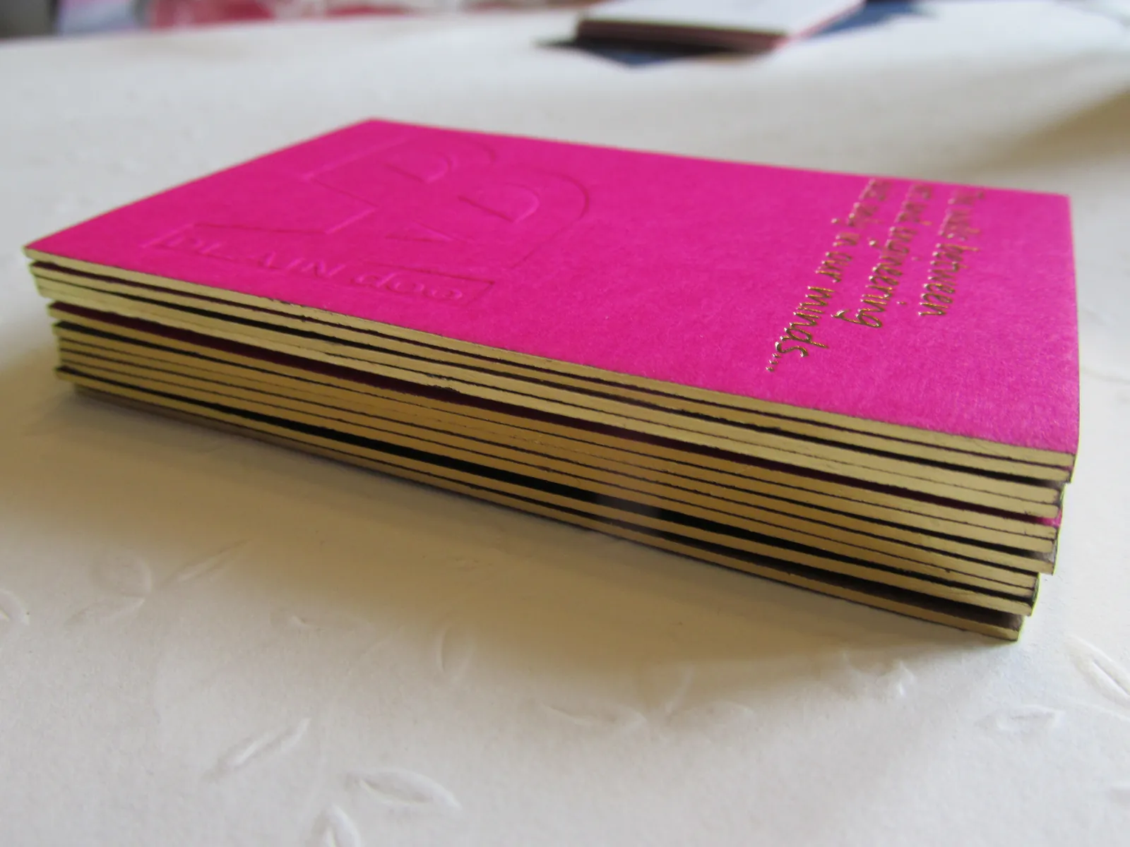 Kada neko zaista želi otmene, luksuzne i neobične vizit karte, neka se obrati nama. Za ovakve vizit karte zaista je potrebno umeće stečeno godinama rada. Radimo vizit karte sa zlatnim ivicama ili srebrnim ivicama sa strane. Radimo vizit karte kao sendvič: beli papir- narandžasti u sredini – pa beli papir. Verujte ovo i u inostranstvu retko ko radi, a u Srbiji skoro samo mi.