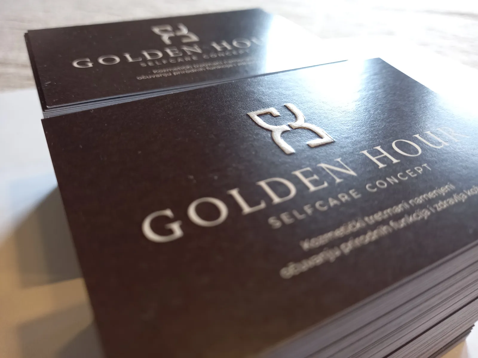 Neko baš želi pojedini detalj ili logo ili svoj potpis u reljefnoj štampi, letterpress tehnici, utisnuta slova. Pošto reljefna štampa ostavlja trag na poleđini, često u ovom slučaju radimo takođe kaširanje, mašinsko lepljenje 3 sloja papira tako da su ove vizit karte veoma čvrste i kvalitetne. Ako je tekst samo na prednjoj strani, u tom slučaju ne mora da se radi kaširanje.