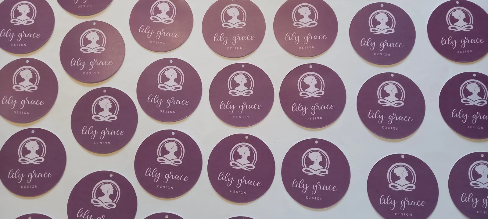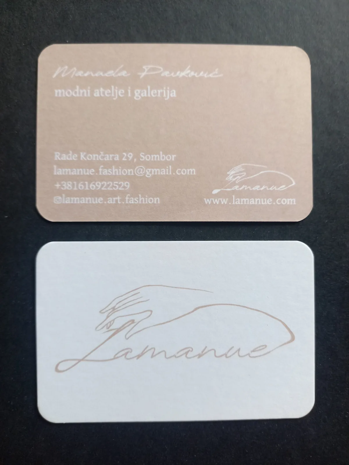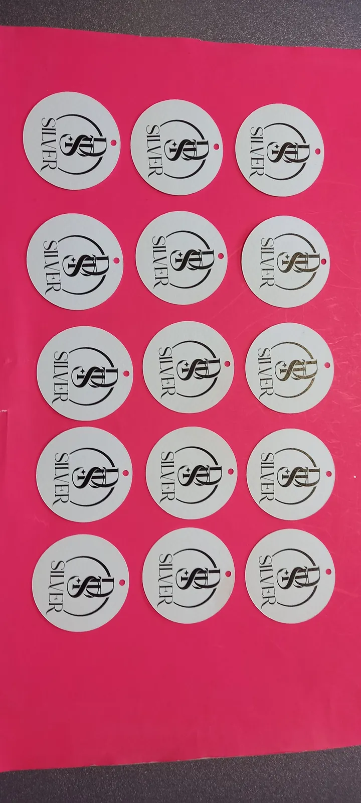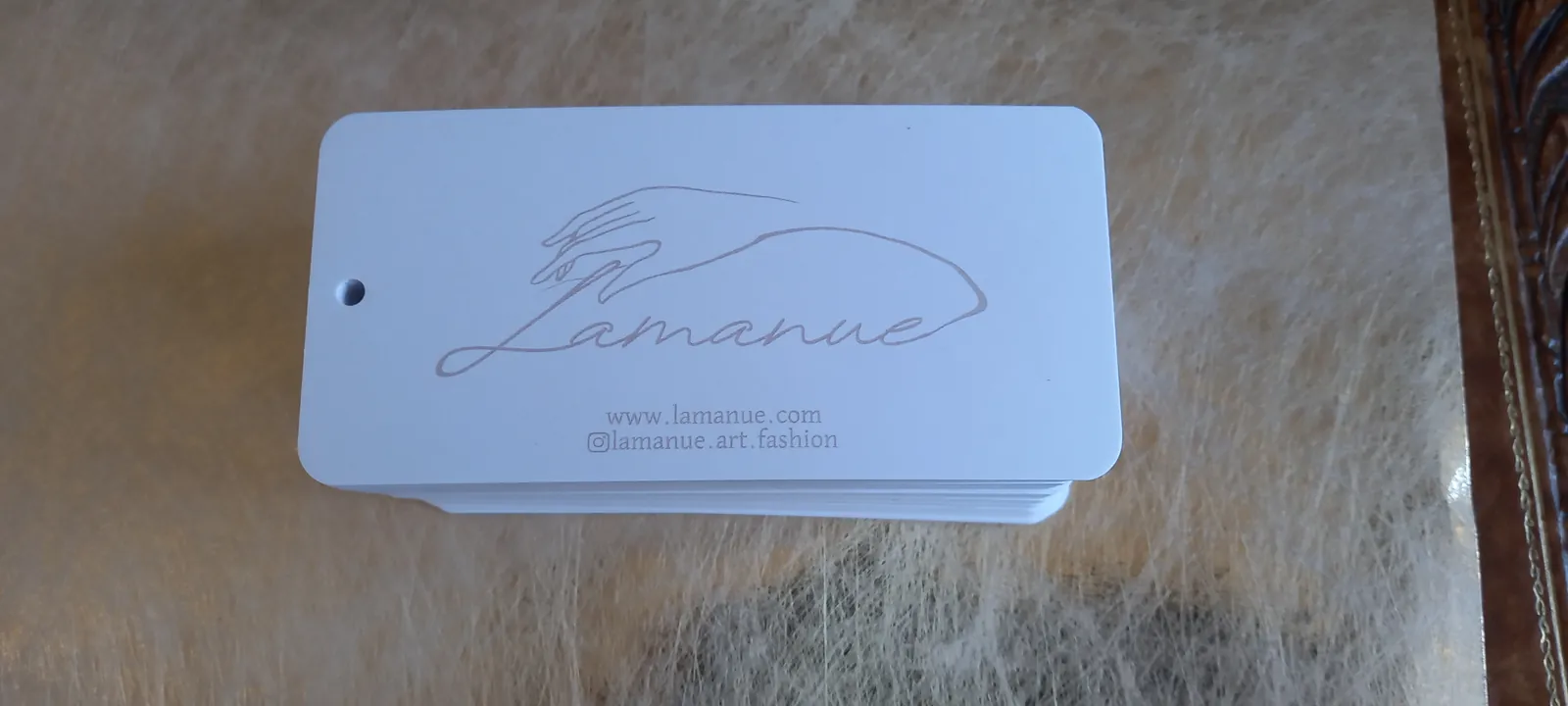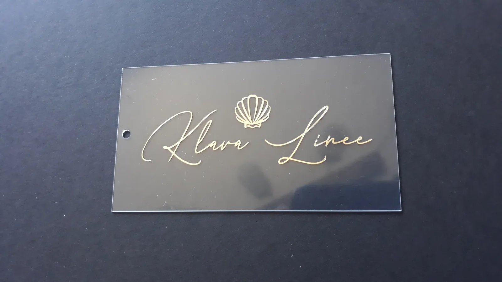 Štampa etiketa: male, velike, kružne, jednostavne, komplikovane...Izrađujemo etikete po želji klijenata za odeću, nakit, razne linije proizvoda. Najlepše su bile etikete urađene u zlatotisku na providnoj tanjoj plastici sa štampanom deklaracijom na sedefastom italijanskom papiru, naravno sa rupicom (foto 7-15), zatim etikete za modnu liniju svečanih haljina u rose gold foliotisku (foto 1-3; foto 22-24).