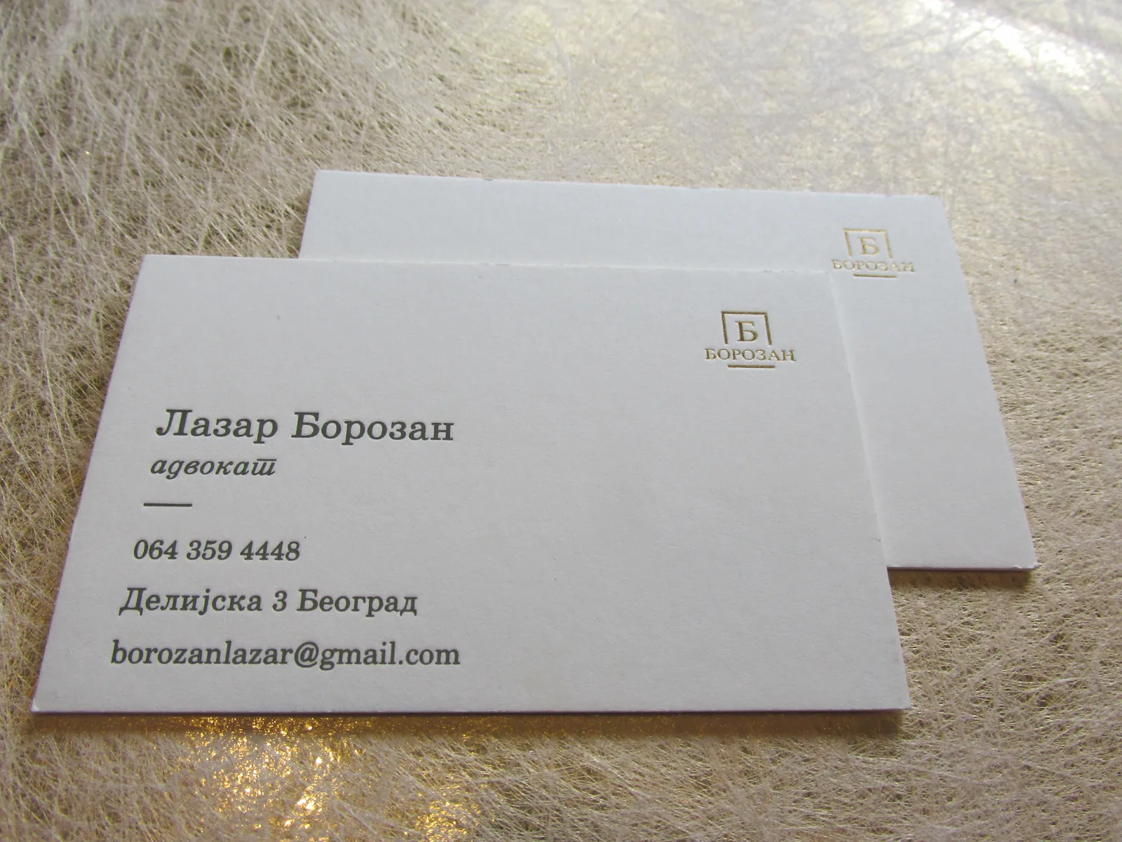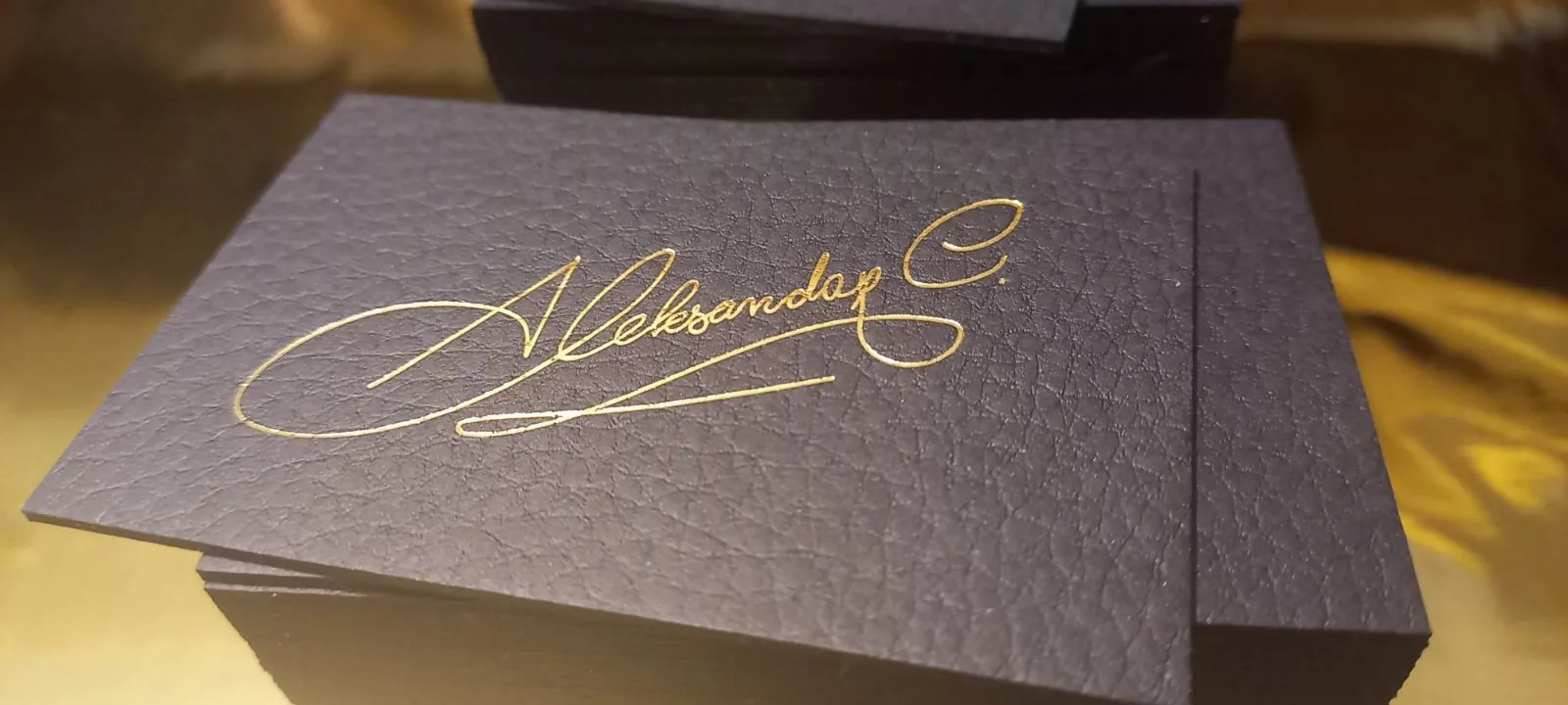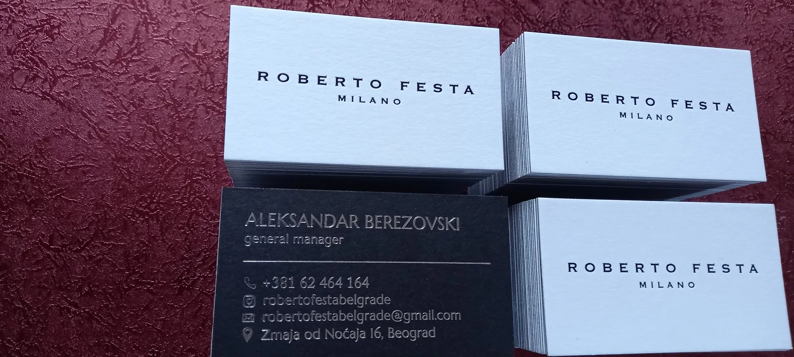 Kada neko zaista želi otmene, luksuzne i neobične vizit karte, neka se obrati nama. Za ovakve vizit karte zaista je potrebno umeće stečeno godinama rada. Kada neko želi izuzetno čvrstu vizit kartu, mi možemo spojiti 3 sloja papira, tako da vizit karta bude debela 1000 mm u preseku. Radili smo čak i deblje, 3-4 cm u preseku. To se više oseća na dodir nego preko ekrana, naravno. Lepljenje slojeva papira se radi mašinski i stručno.Takođe kada neko želi na vizit kartama reljefnu štampu, utisnuta slova, da se ona ne bi videla sa druge strane, radi se kaširanje. Zatim kada je reč o luksuznim papirima sa strukturom kože ili krokodilske kože, koji su takvi samo sa prednje strane,radi se kaširanje kako bi vizit karta bila obostrano sa istom strukturom. Kada je reč o ovim kaširanim vizit kartama, radimo i foliotisak i digitalnu štampu.