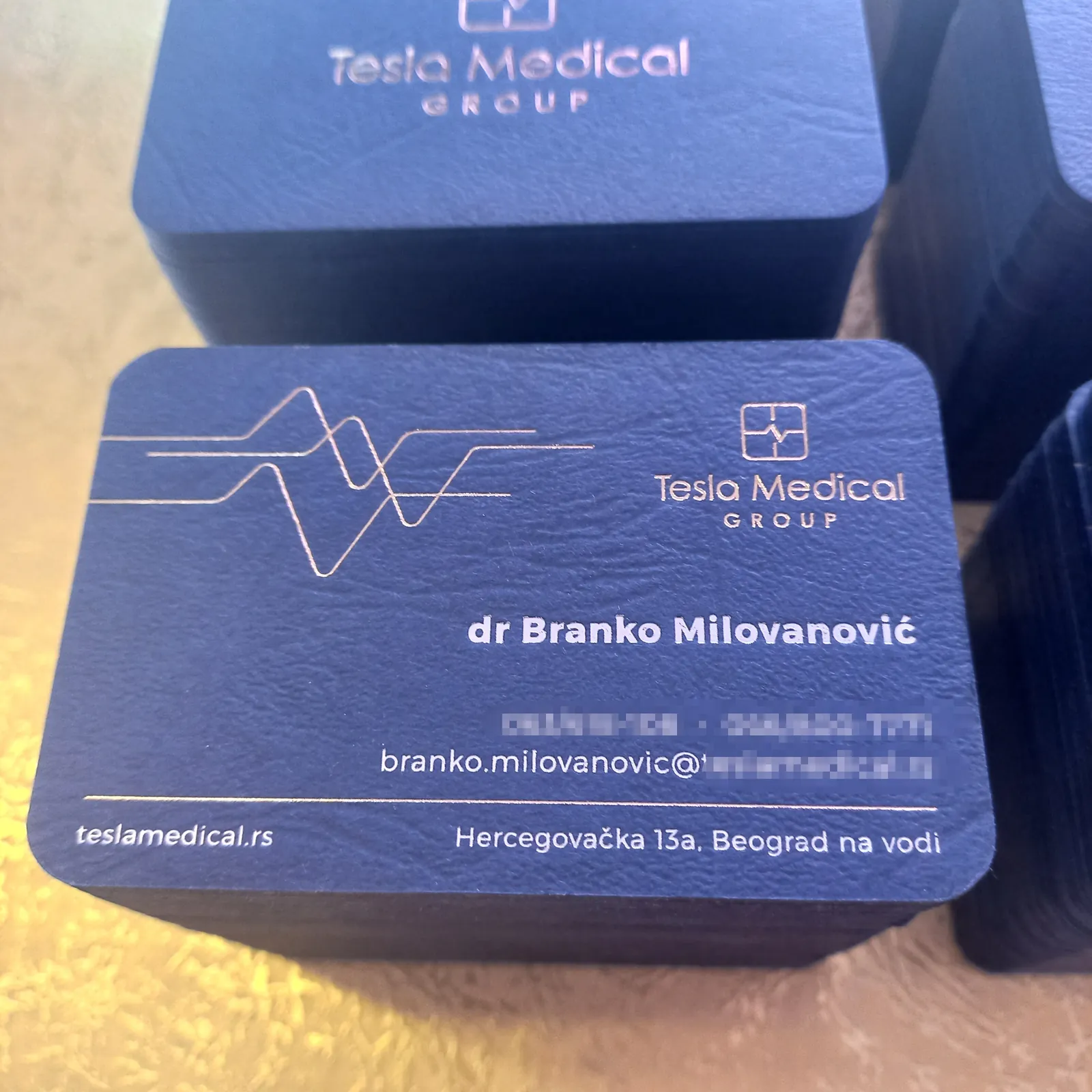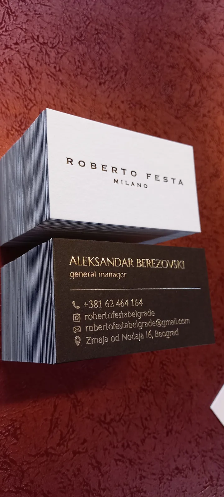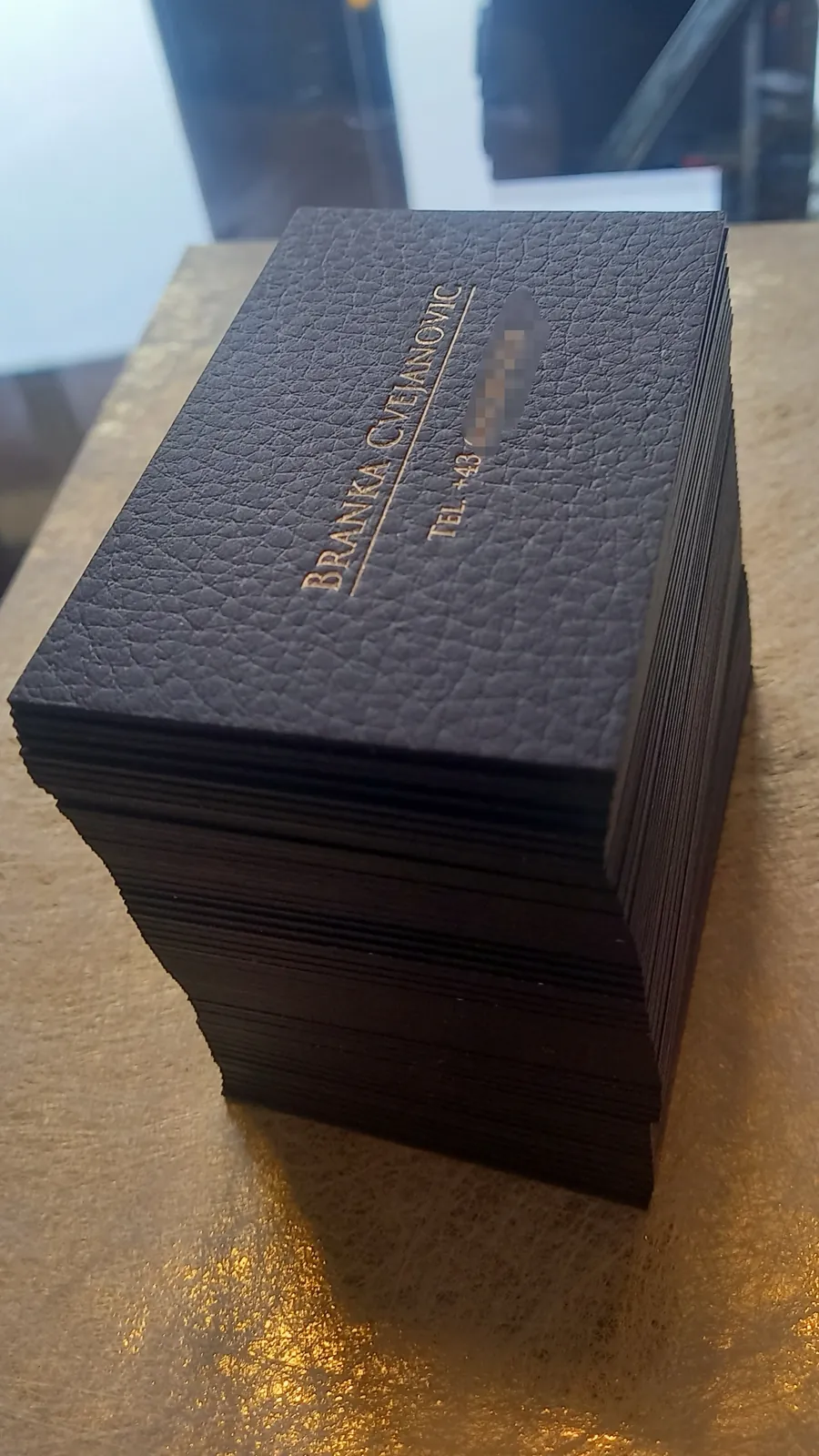 Kada neko zaista želi otmene, luksuzne i neobične vizit karte, neka se obrati nama. Za ovakve vizit karte zaista je potrebno umeće stečeno godinama rada. Kada neko želi izuzetno čvrstu vizit kartu, mi možemo spojiti 3 sloja papira, tako da vizit karta bude debela 1000 mm u preseku. Radili smo čak i deblje, 3-4 cm u preseku. To se više oseća na dodir nego preko ekrana, naravno. Lepljenje slojeva papira se radi mašinski i stručno.Takođe kada neko želi na vizit kartama reljefnu štampu, utisnuta slova, da se ona ne bi videla sa druge strane, radi se kaširanje. Zatim kada je reč o luksuznim papirima sa strukturom kože ili krokodilske kože, koji su takvi samo sa prednje strane,radi se kaširanje kako bi vizit karta bila obostrano sa istom strukturom. Kada je reč o ovim kaširanim vizit kartama, radimo i foliotisak i digitalnu štampu.
