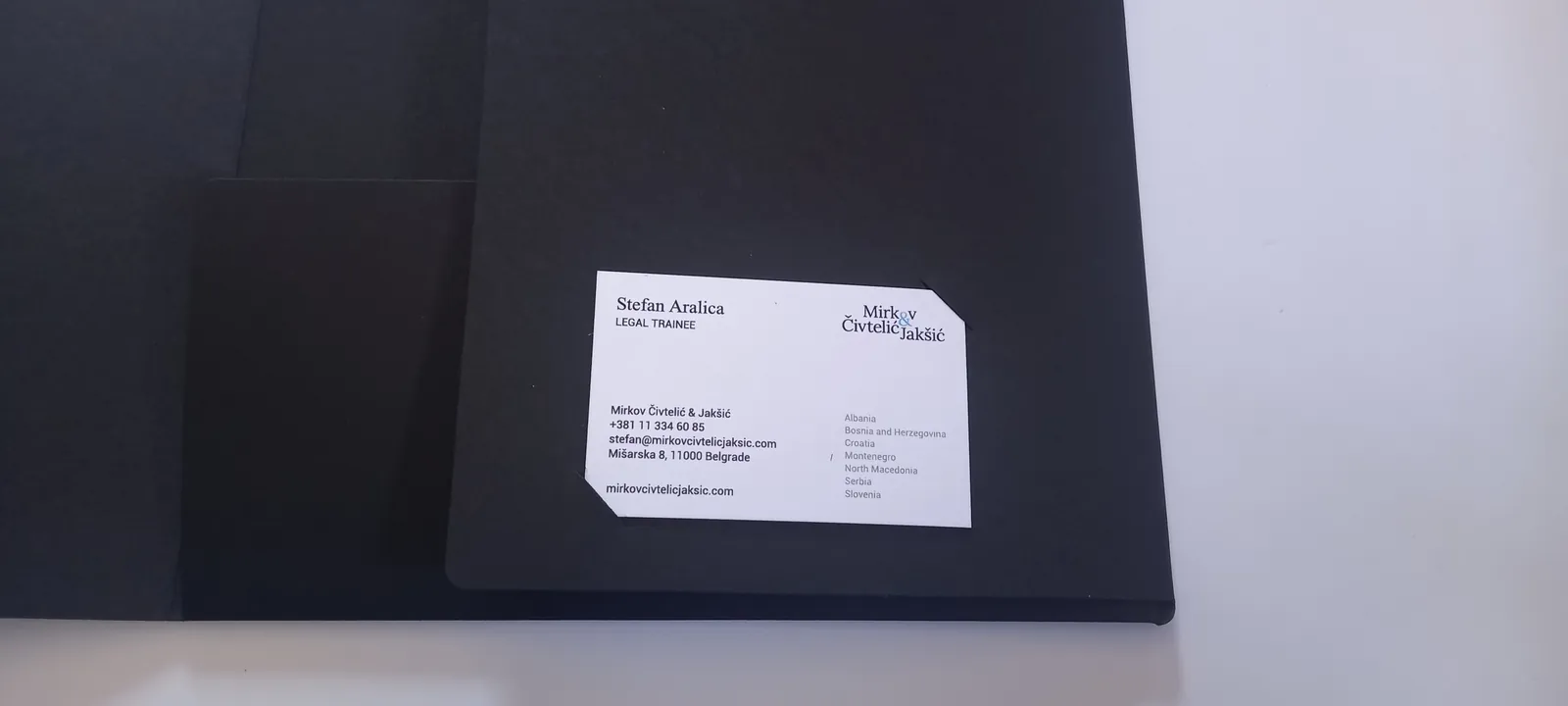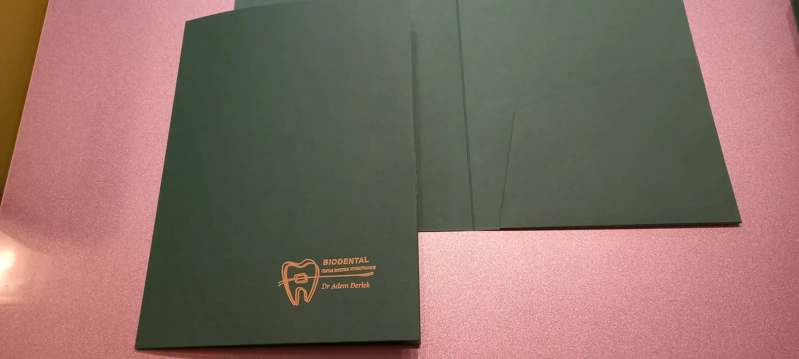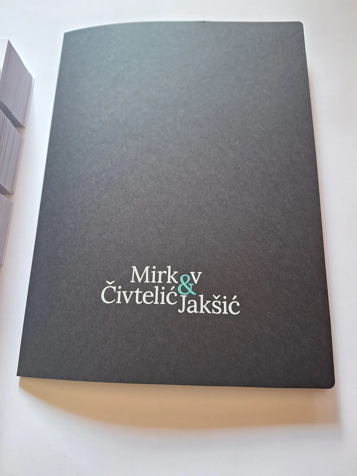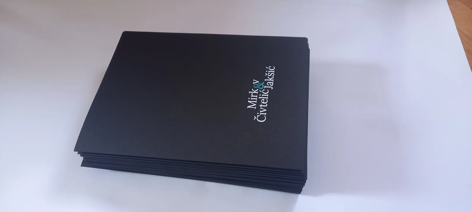 Izrađujemo fascikle malo svečanije i luksuznije nego što to drugi rade. Kod nas možete poručiti fascikle od specijalnog italijanskog papira, koje su dosta čvršće i kvalitetnije od fascikli koje se mogu kupiti po knjižarama. Radili smo luksuzne fascikle od crnog italijanskog papira sa logom u foliotisku u 2 boje plavoj i beloj za renomiranu advokatsku kancelariju (foto 1-6).
