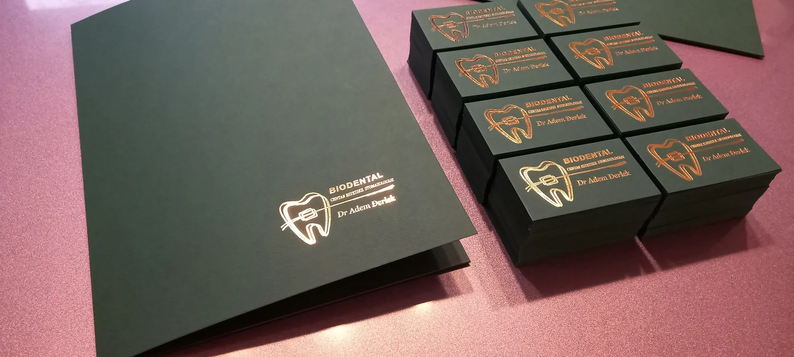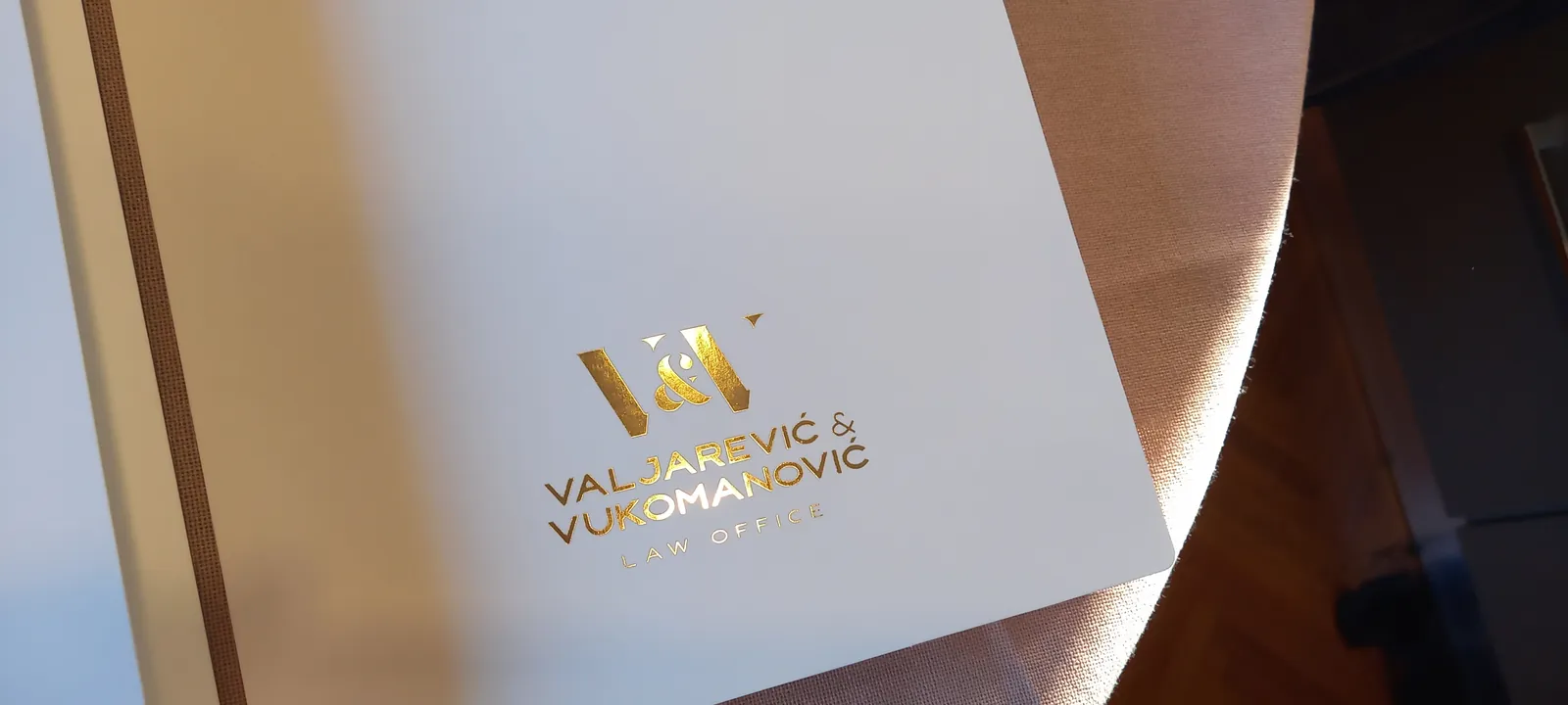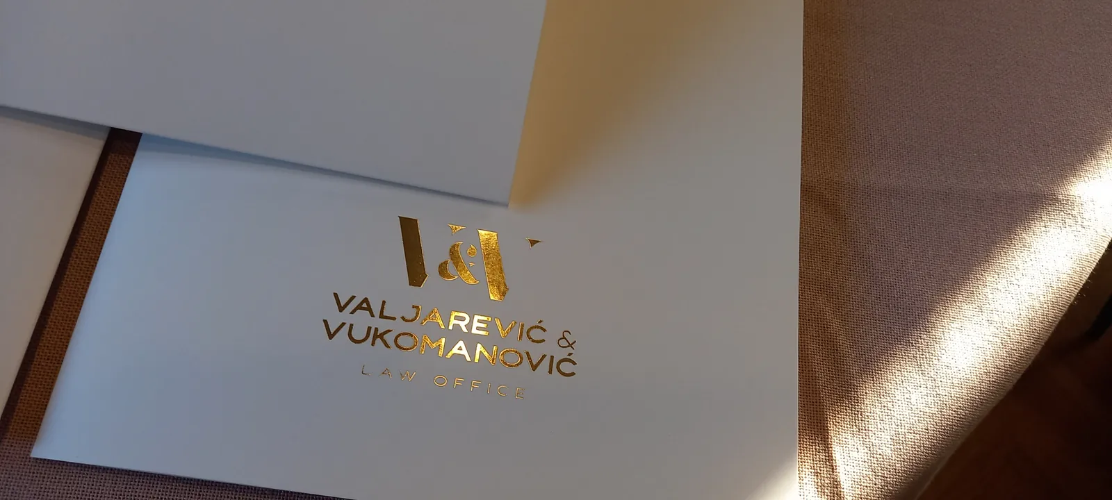 Radimo često fascikle sa zlatotiskom, za Visoki savet sudstva od teget papira sa srebrotiskom (foto 19-21) fascikle od crnog italijanskog papira sa zlatotiskom (foto 13-15; foto 49-51); fascikle od zelenog papira sa zlatotiskom (foto 22-27) .
