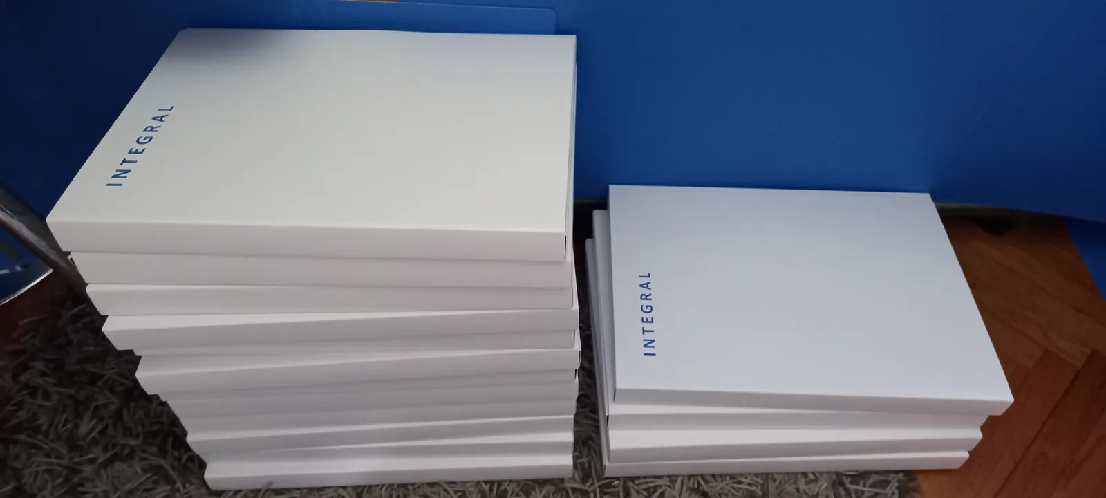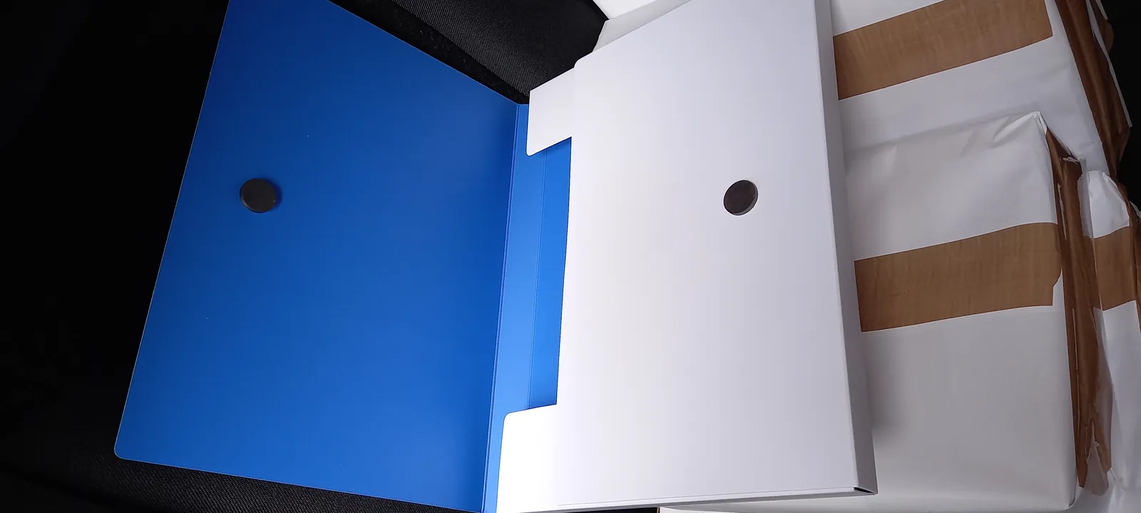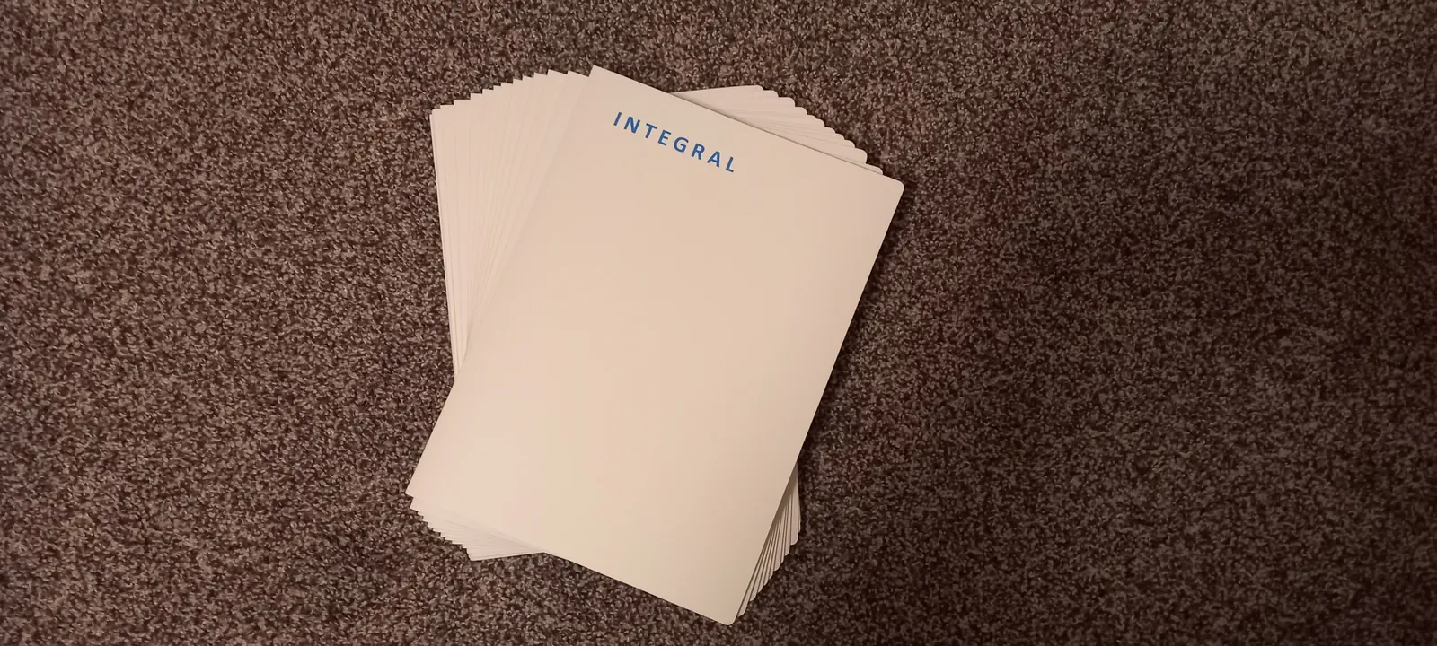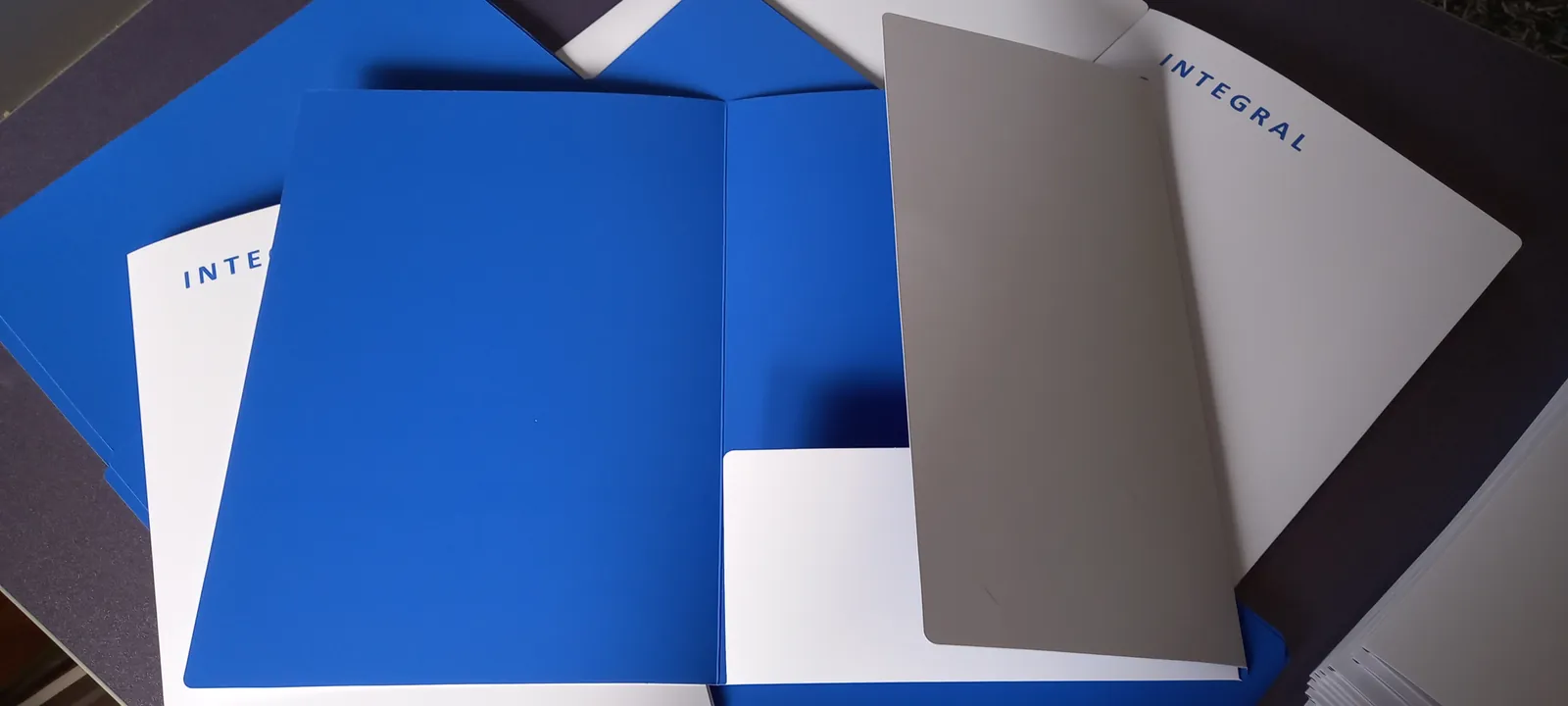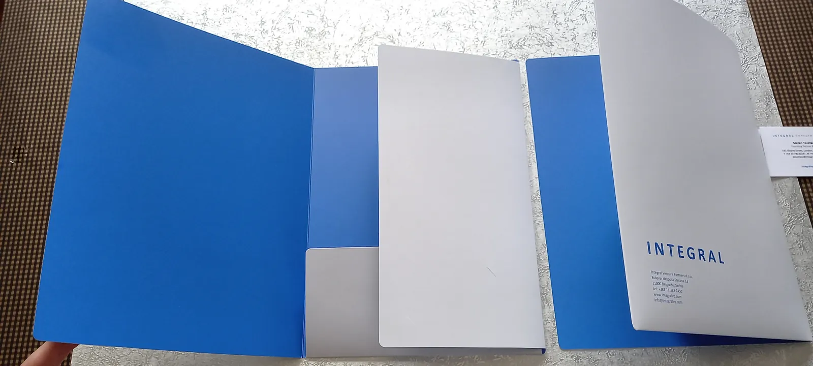 Štampamo standardne fascikle u ofset štampi normalne debljine (foto 28-36) ili kartonske baš debele kao za firmu Integral (foto 46-48) sa čičak trakom za zatvaranje.