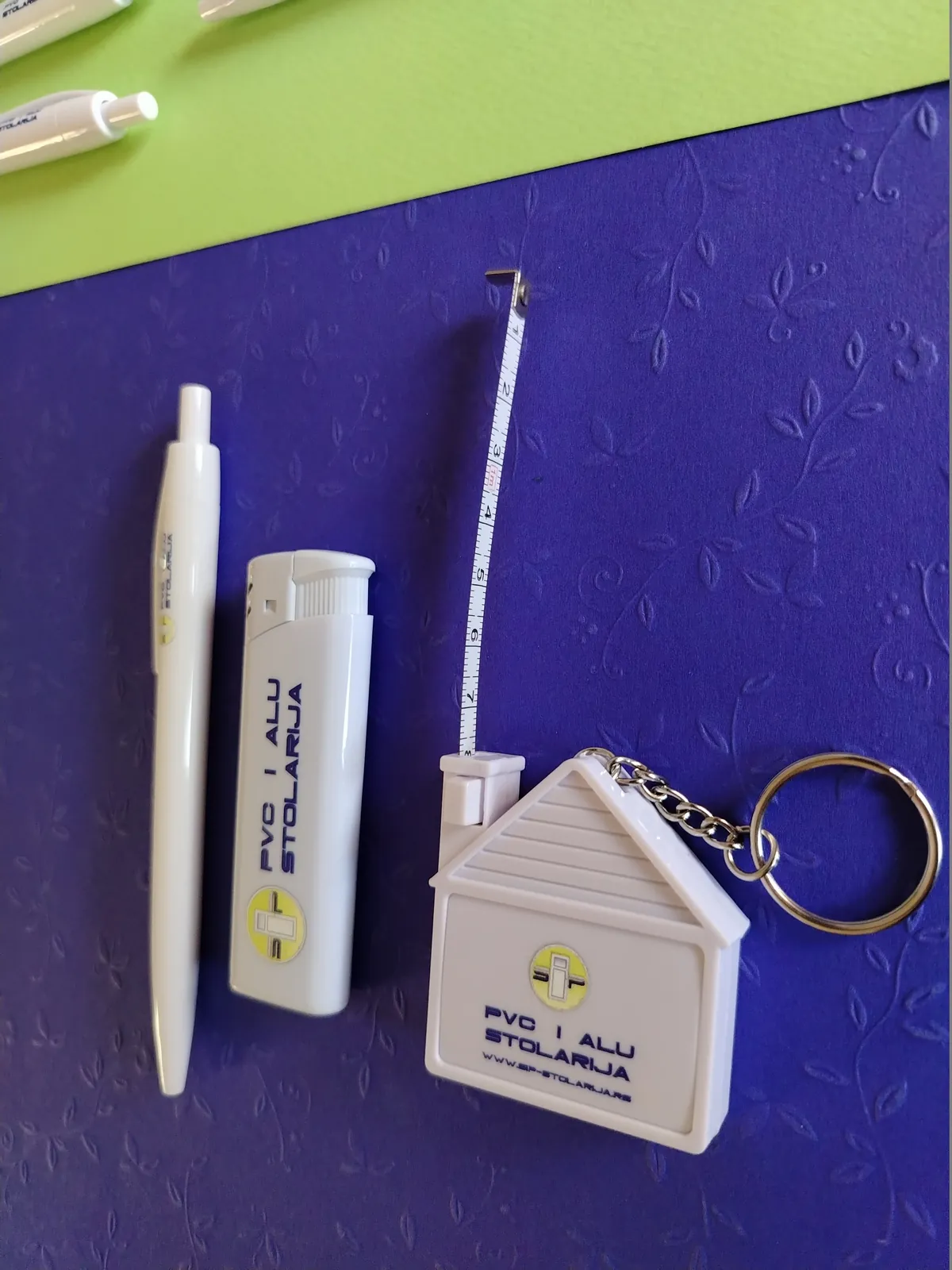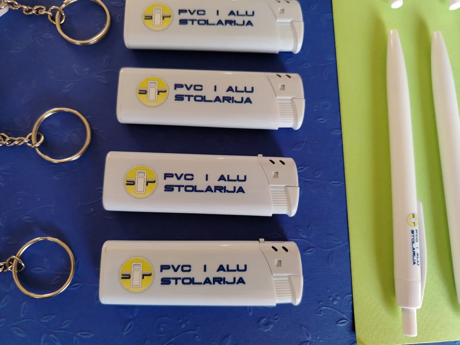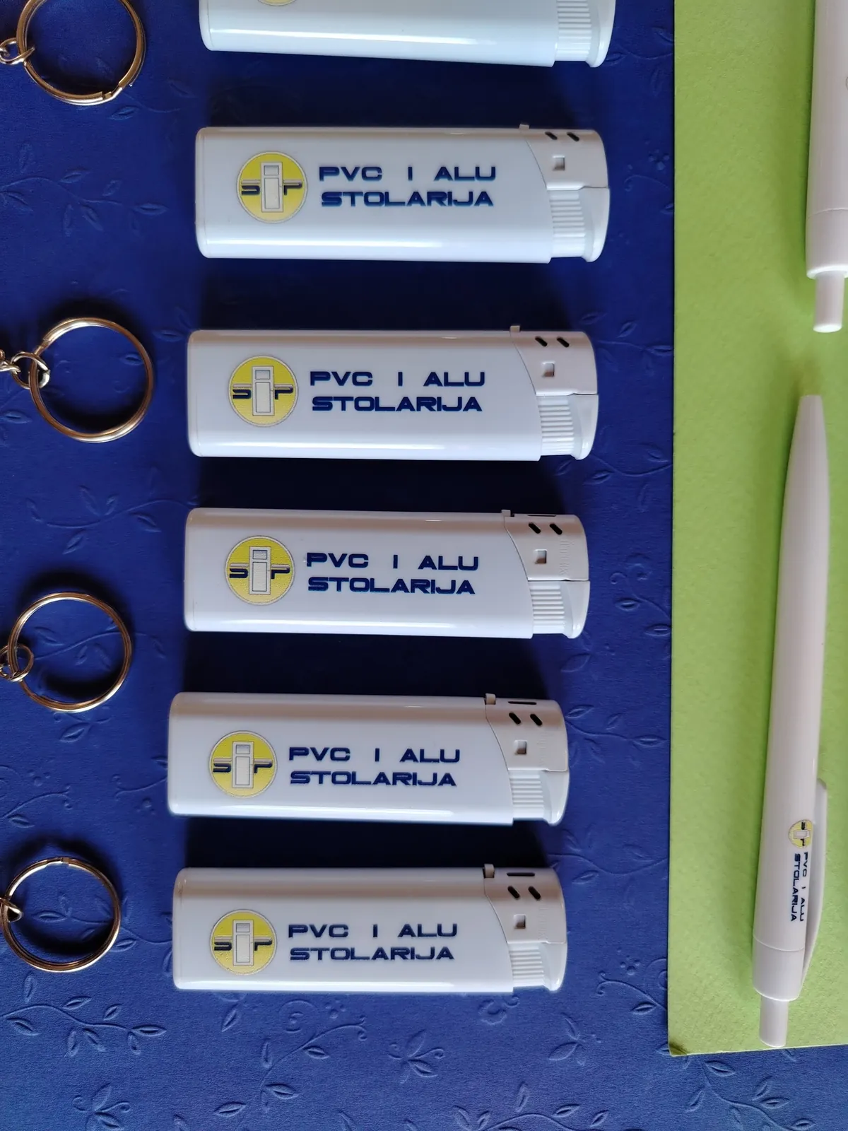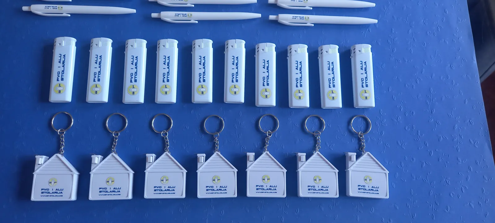 Štampamo logo vaše firme na hemijskama, upaljačima, privescima. Za firmu koja se bavi PVC stolarijom, štampali smo na privescima u obliku kućice, sa metrom. Za vaše klijente, ovi detalji su originalni kao poklon i kao vaša reklama.