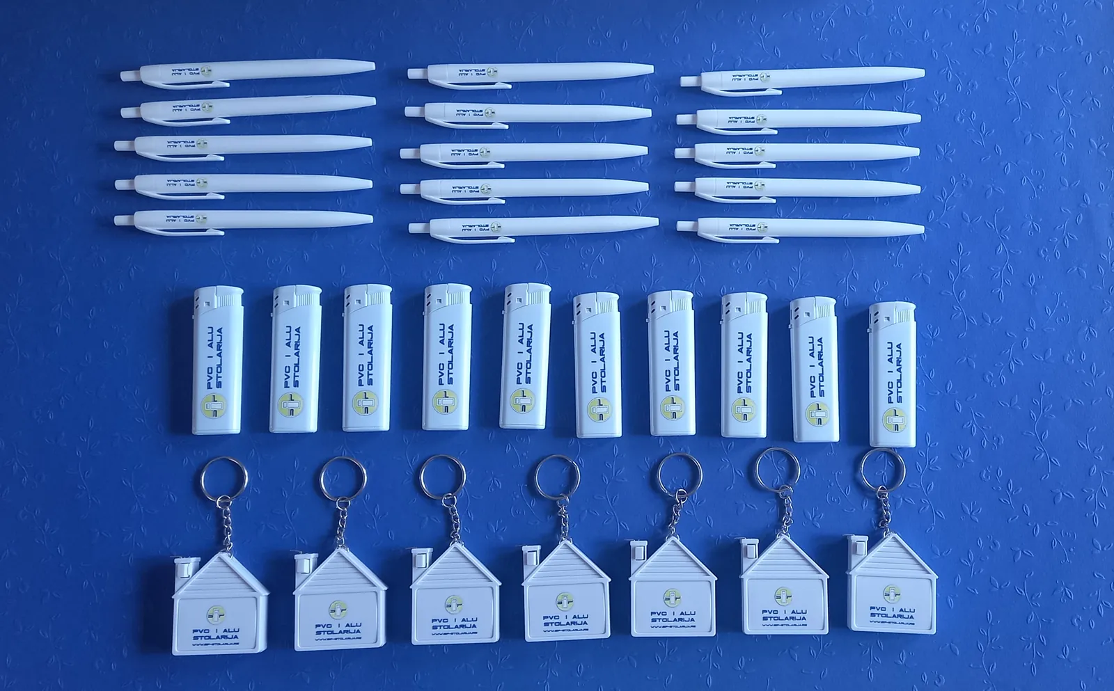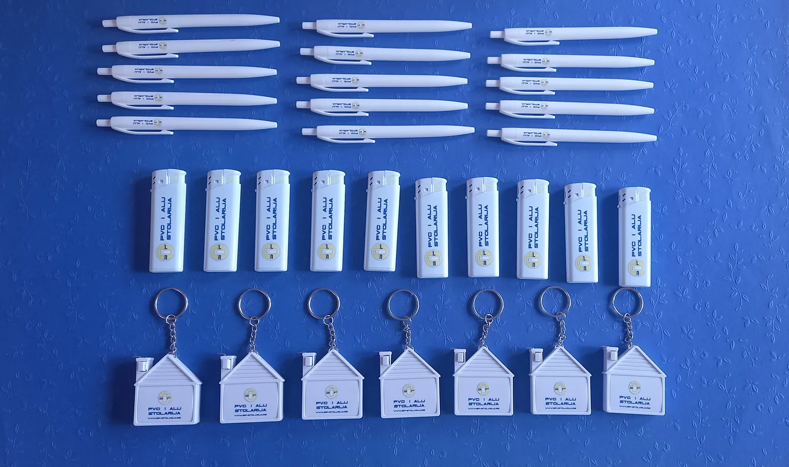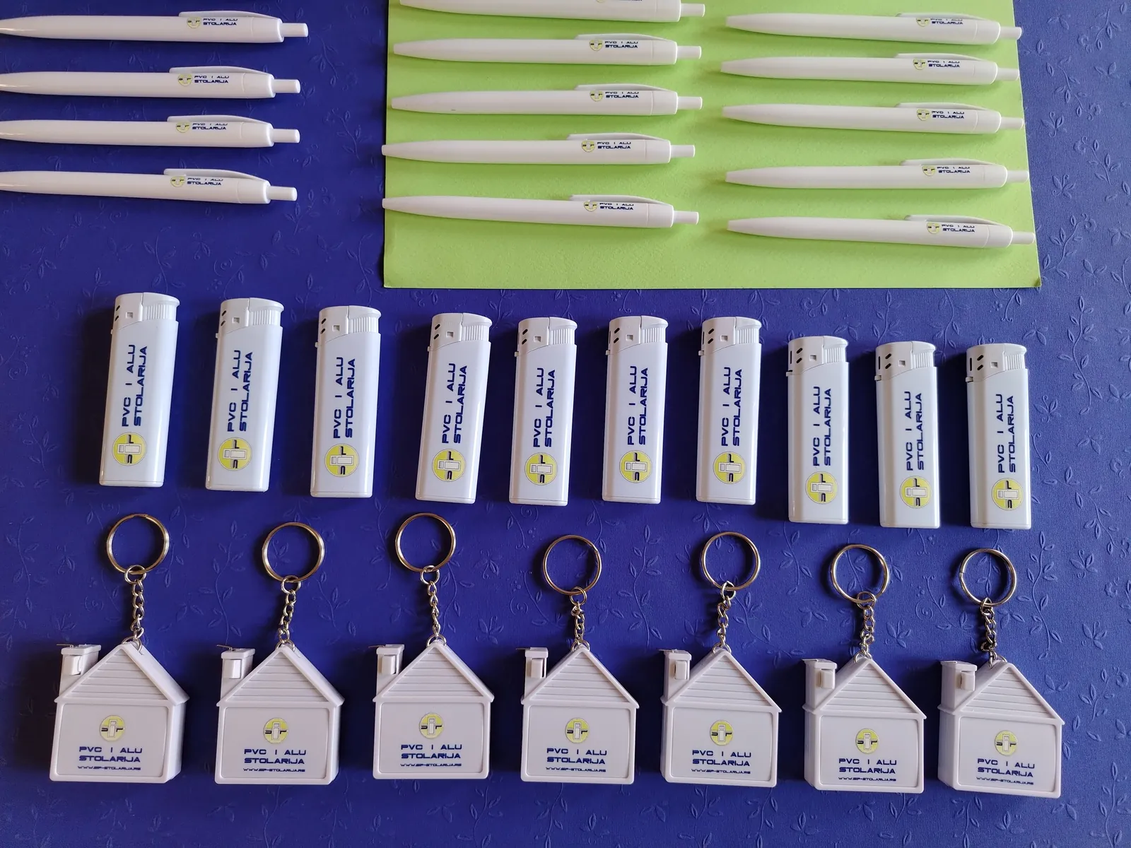 Štampamo logo vaše firme na hemijskama, upaljačima, privescima. Za firmu koja se bavi PVC stolarijom, štampali smo na privescima u obliku kućice, sa metrom. Za vaše klijente, ovi detalji su originalni kao poklon i kao vaša reklama.