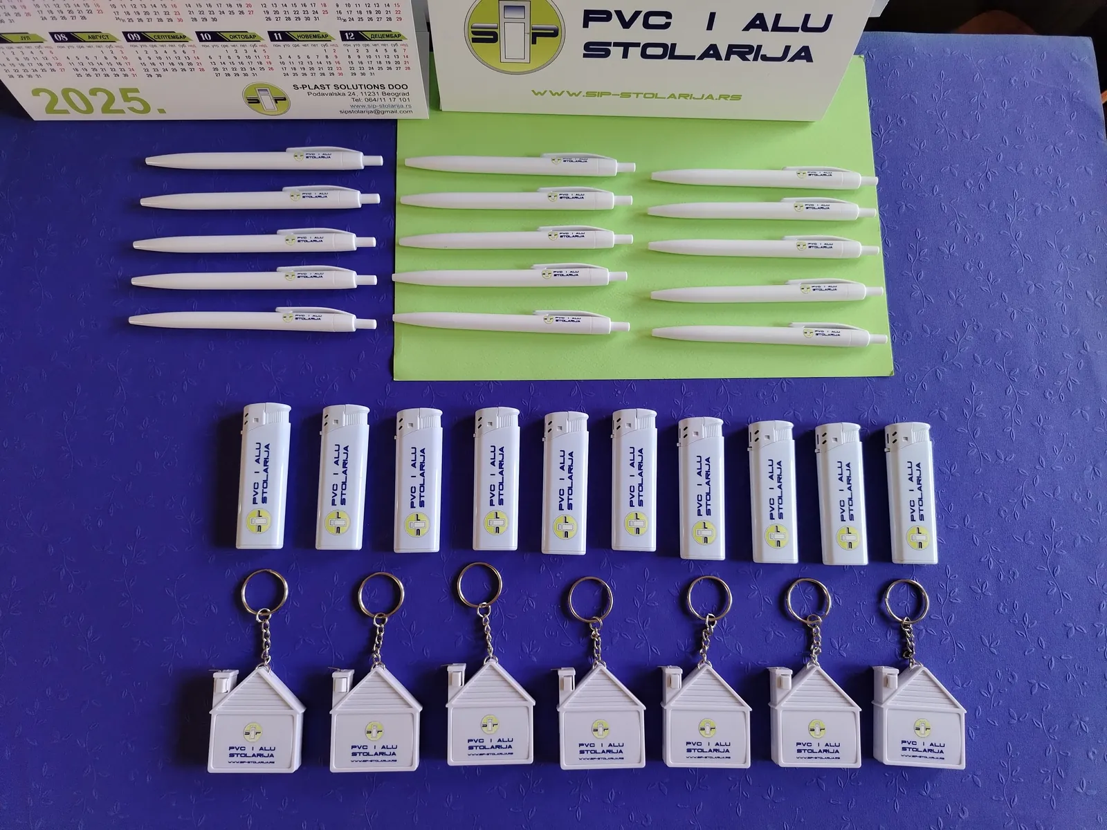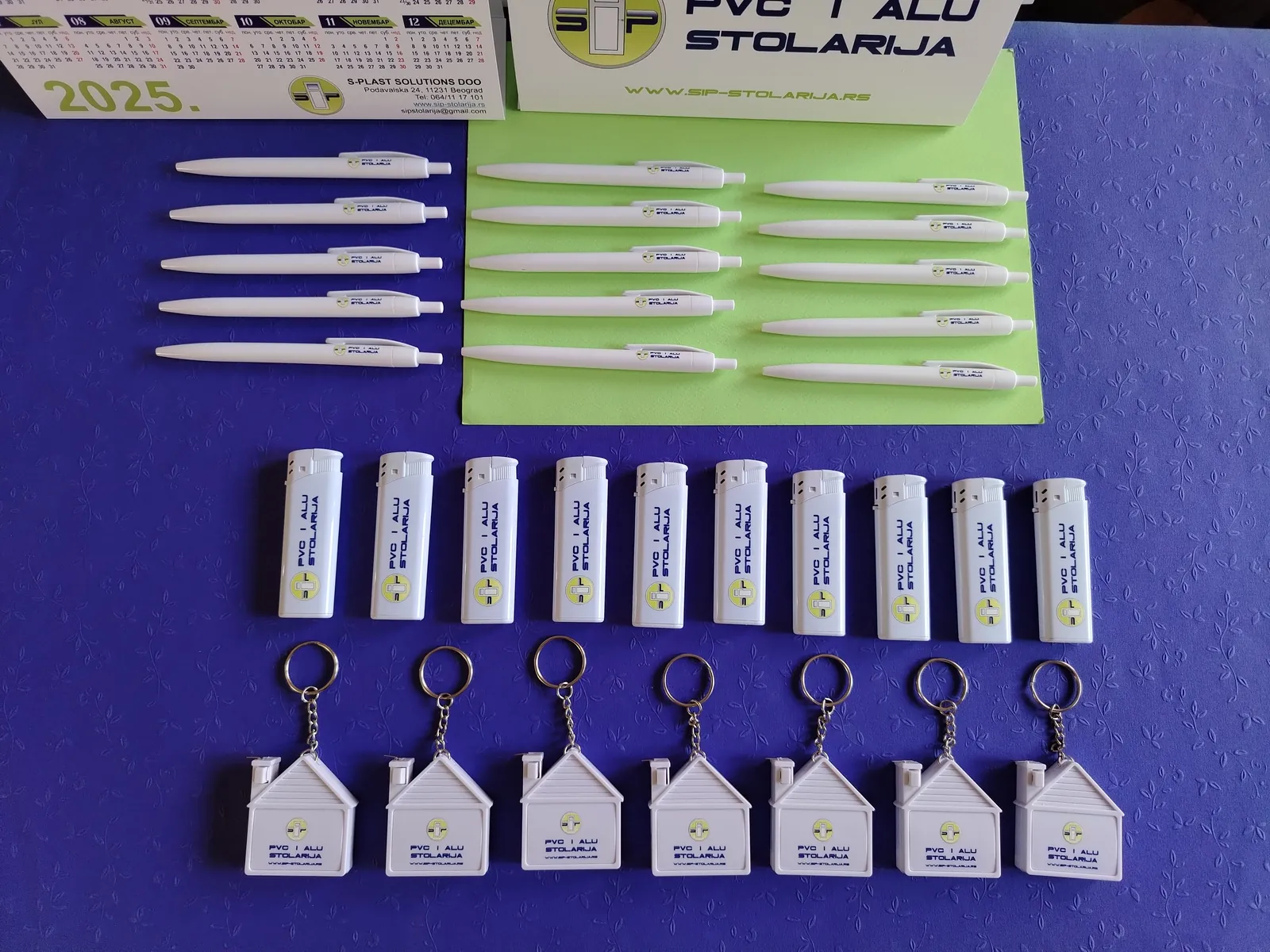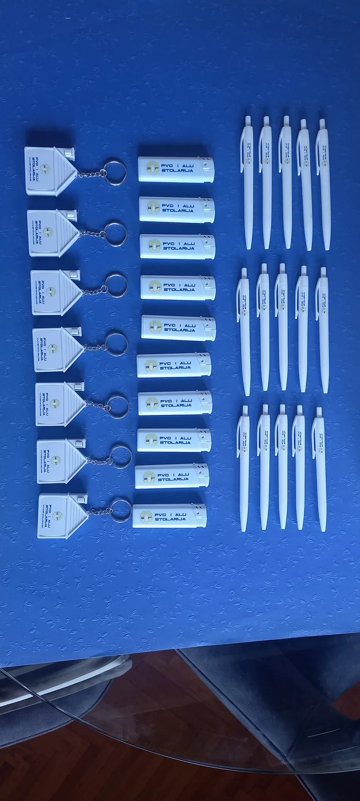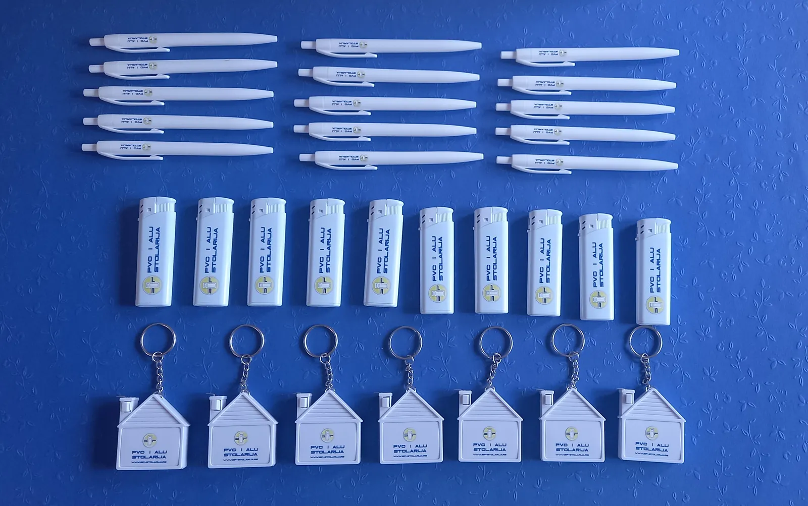 Štampamo logo vaše firme na hemijskama, upaljačima, privescima. Za firmu koja se bavi PVC stolarijom, štampali smo na privescima u obliku kućice, sa metrom. Za vaše klijente, ovi detalji su originalni kao poklon i kao vaša reklama.