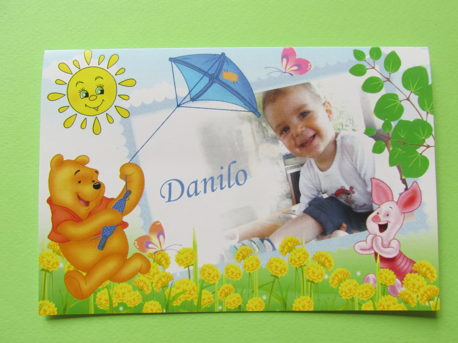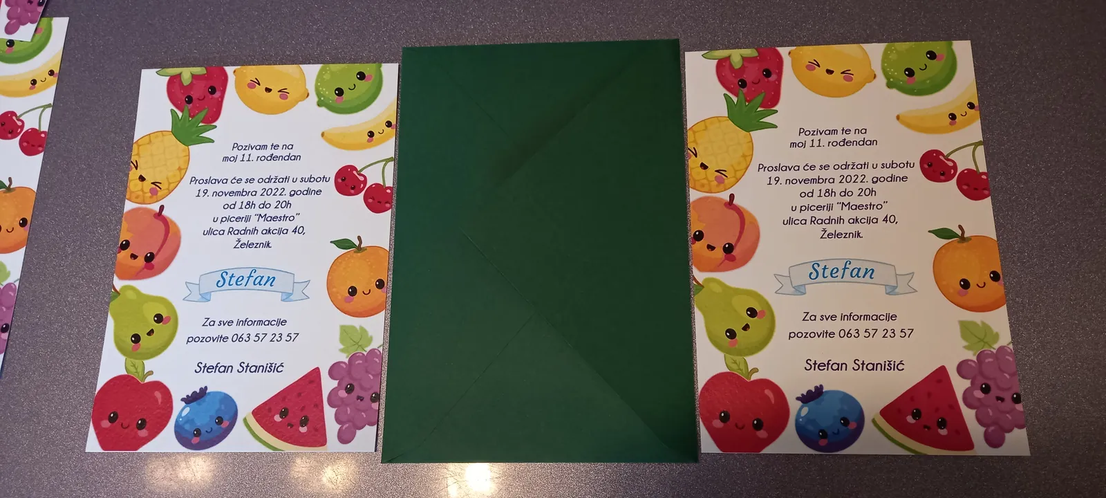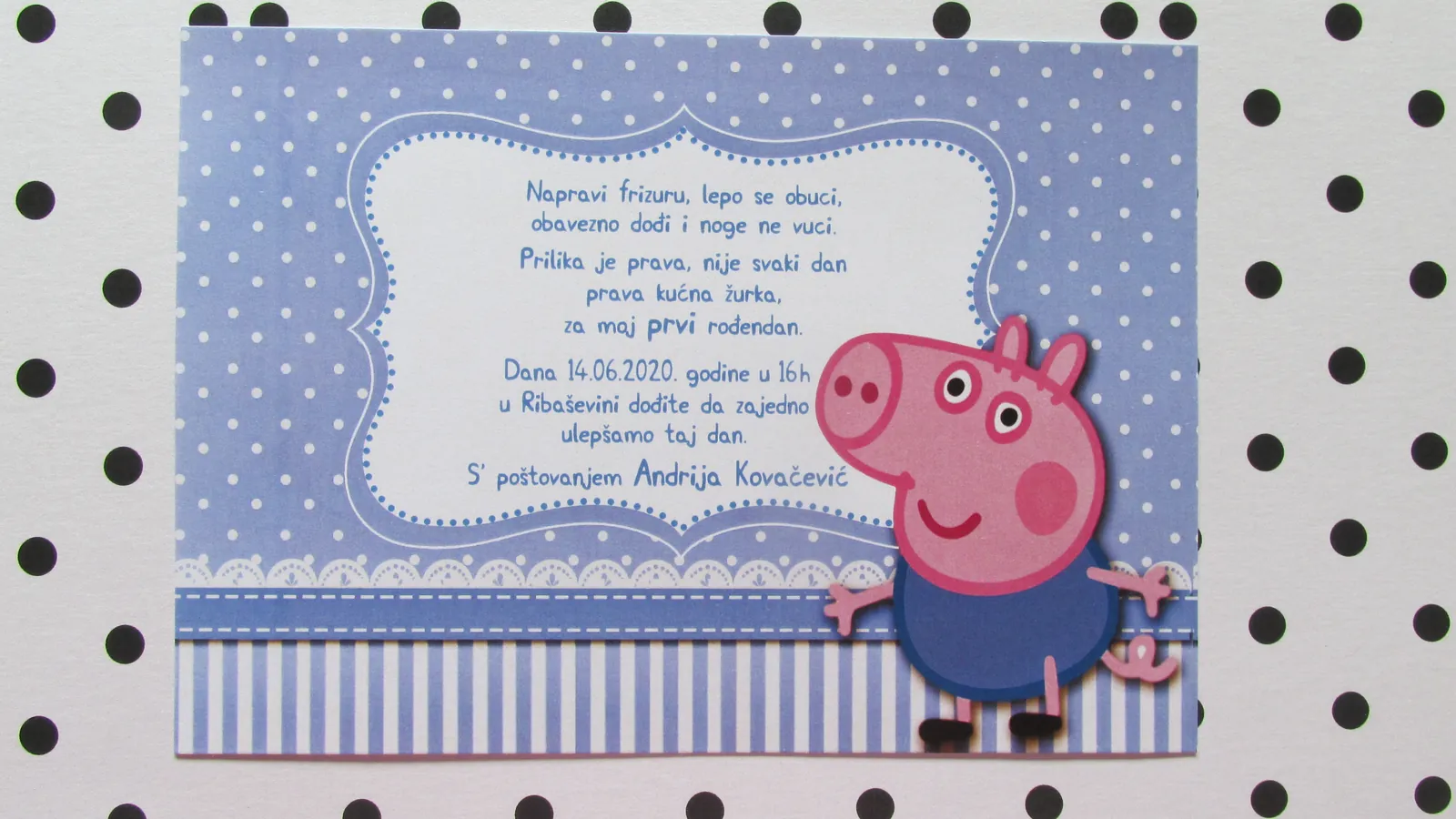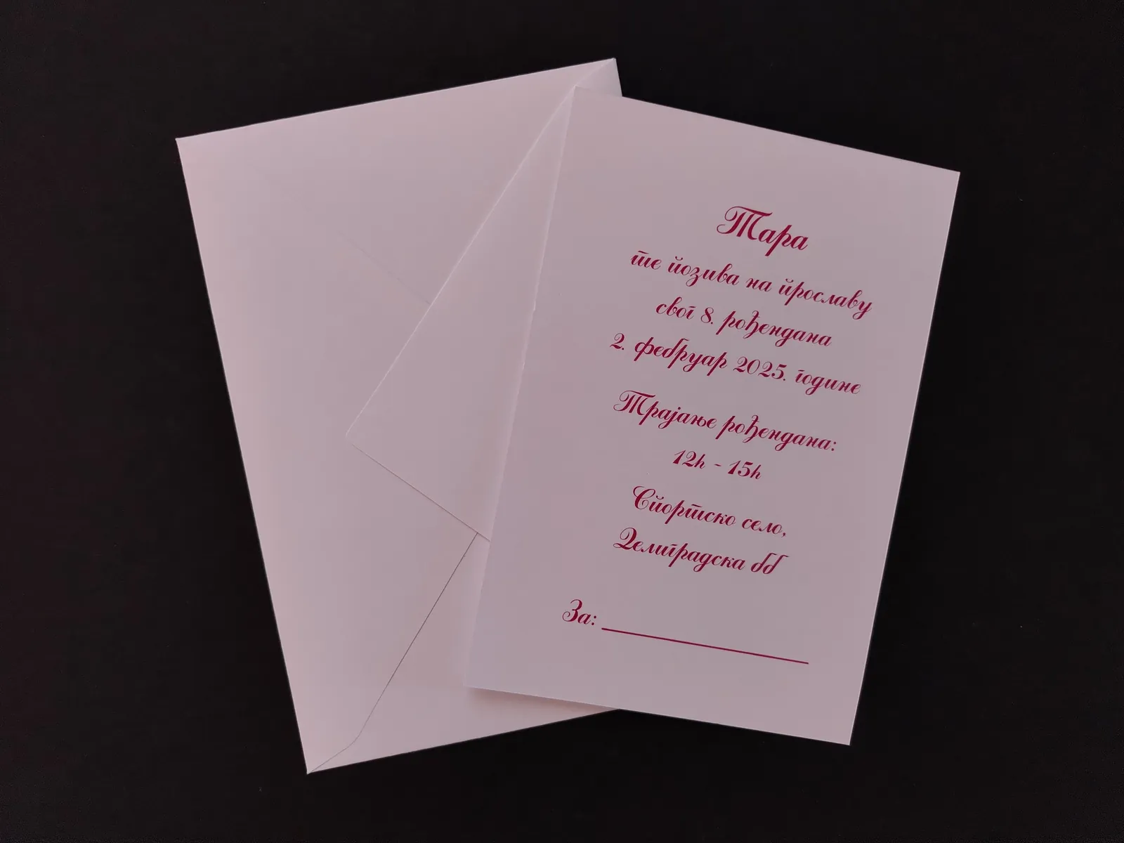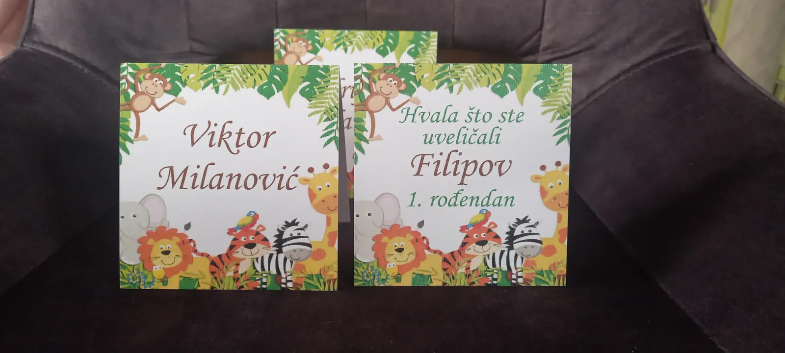 Povoljne pozivnice za proslavu prvog rođendana ili krštenja devojčica i dečaka sa motivima Diznijevih junaka, Minnie Mouse, Mickey Mouse, Winnie Pooh, Stič, Pepa Prase, Mala sirena, Šilja, princeza Sofija, Cars, kamiončići, Patrolne šape, Spiderman, životinjice iz prašume, bubamare...sve što vaše dete voli, može biti na pozivnici. Sve ove pozivnice mogu biti u štampanoj formi ili u ELEKTRONSKOJ FORMI sa vašim tekstom za pozivanje gostiju preko Vibera ili WhatsApp-a. Sve pozivnice mogu biti urađene na jednoj strani ili da se otvaraju, takođe na svakoj se može dodati fotografija vašeg deteta. Možete naručiti pozivnice sa kovertom u beloj ili nekoj boji po želji, ili bez koverte.