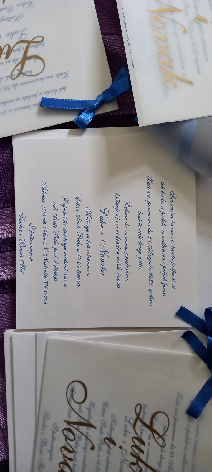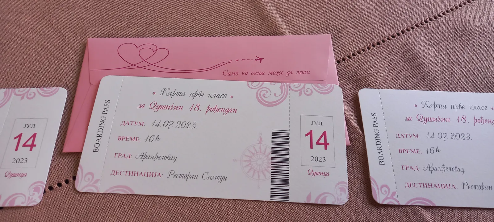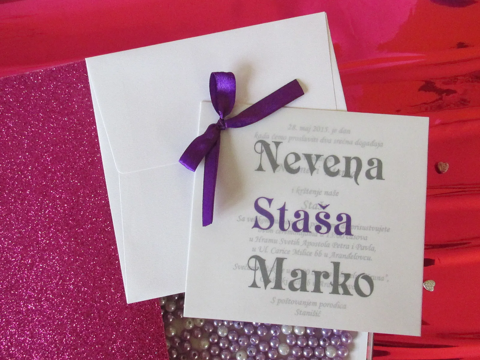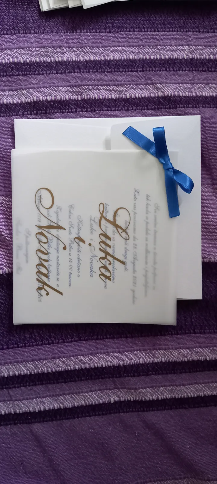 Neobične-originalne pozivnice: pergamenti u rolni, male trodelne pozivnice koje se stavljaju u kutije model Srce, Lora, Jastučić- veoma tražene već godinama; originalna pozivnica Aviončić sa kovertom.