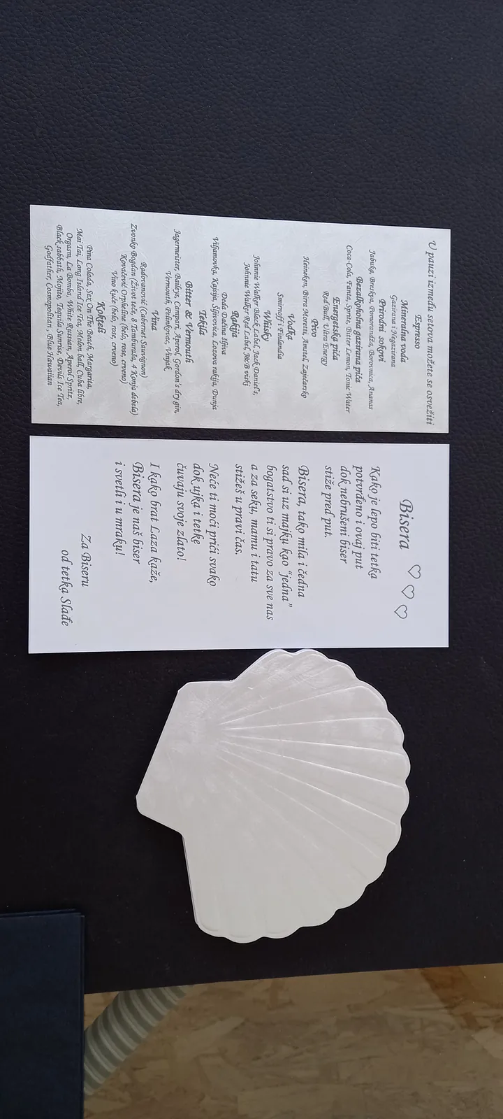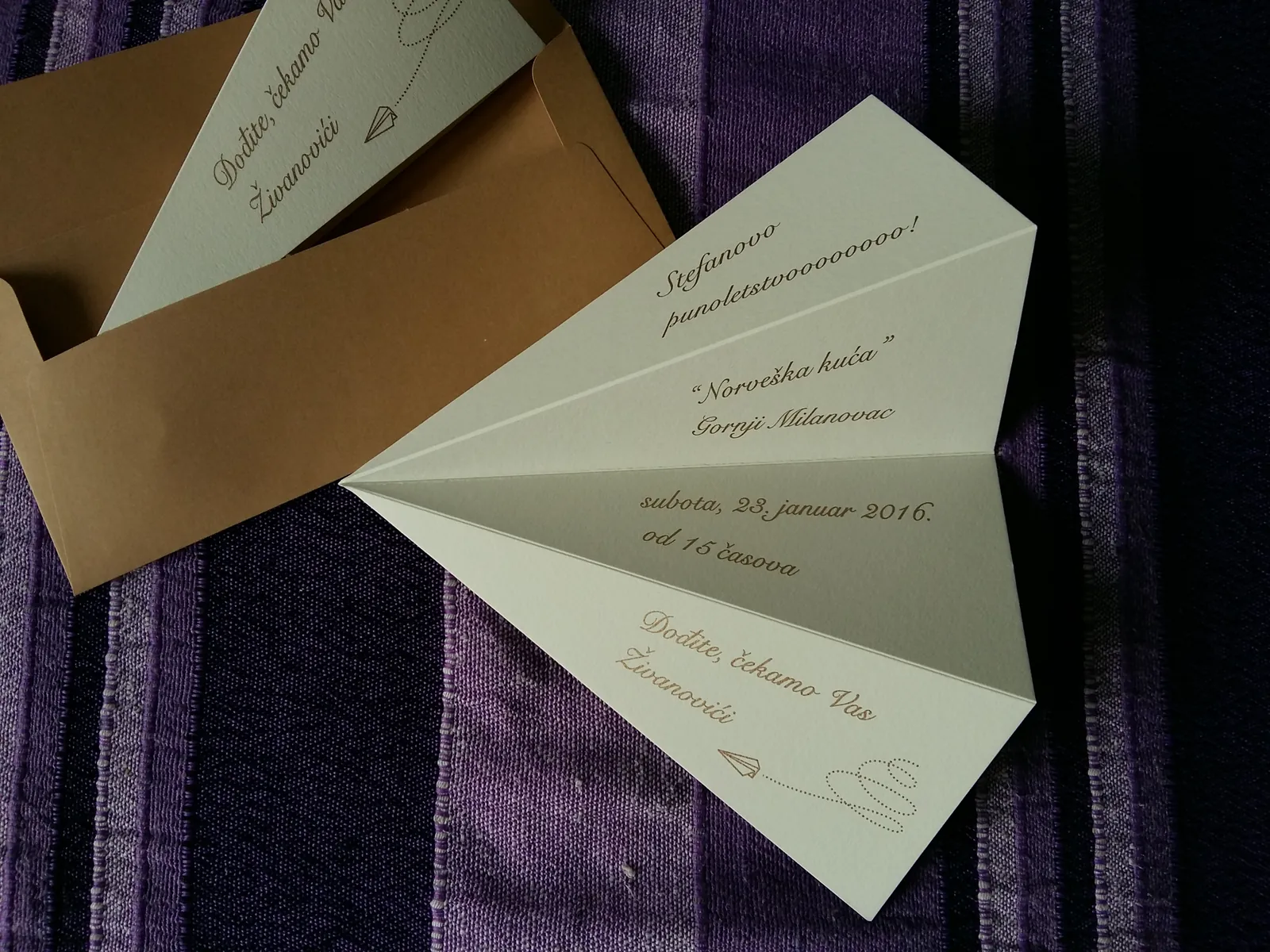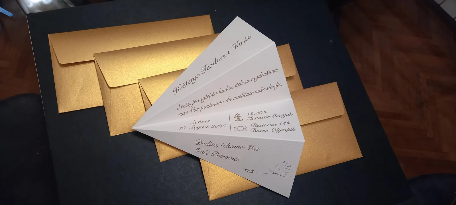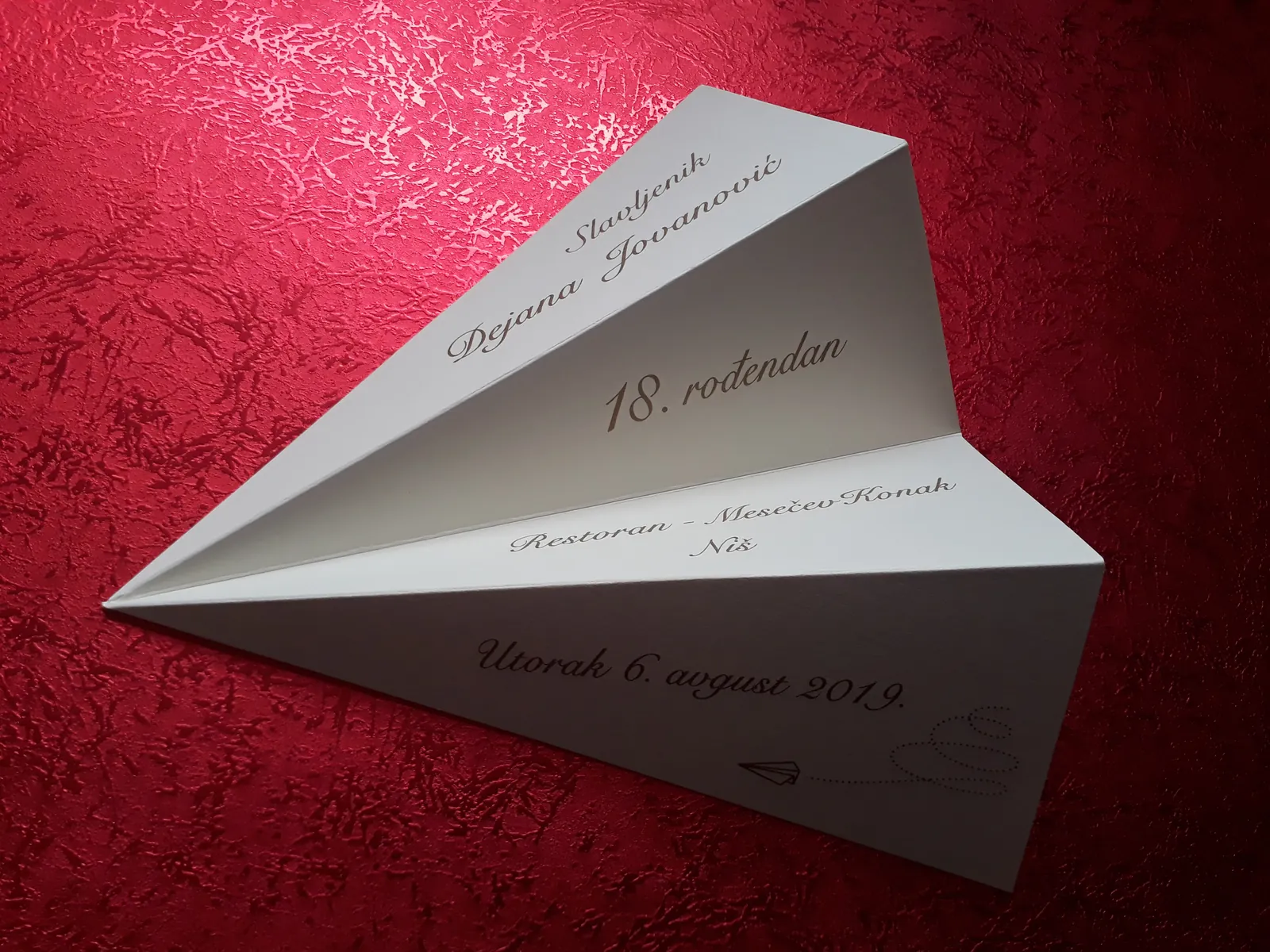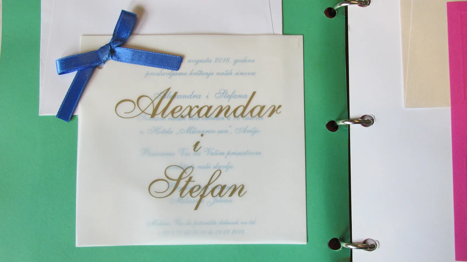 Neobične-originalne pozivnice: pergamenti u rolni, male trodelne pozivnice koje se stavljaju u kutije model Srce, Lora, Jastučić- veoma tražene već godinama; originalna pozivnica Aviončić sa kovertom.