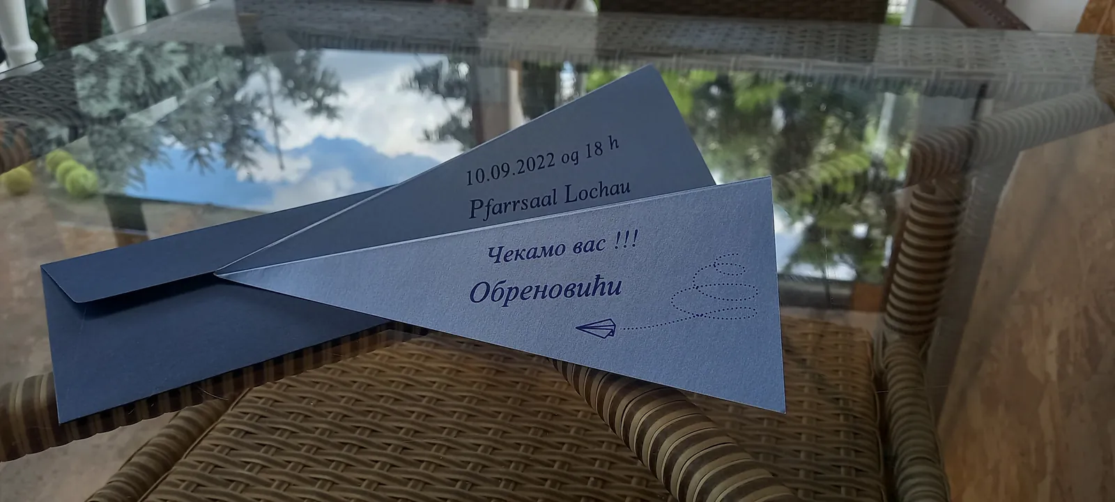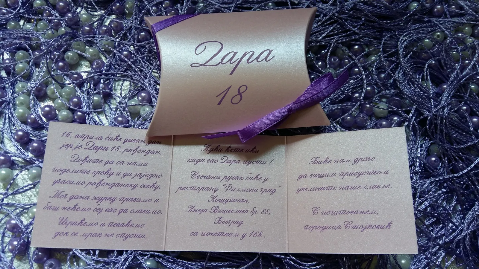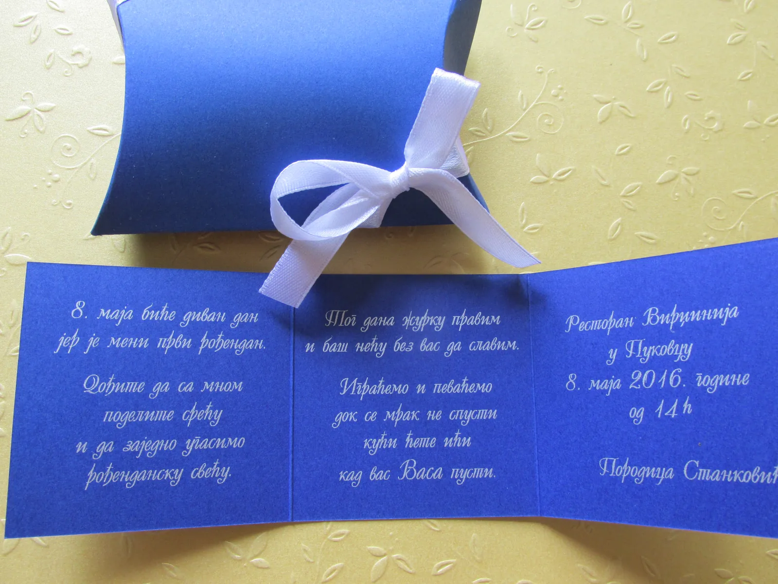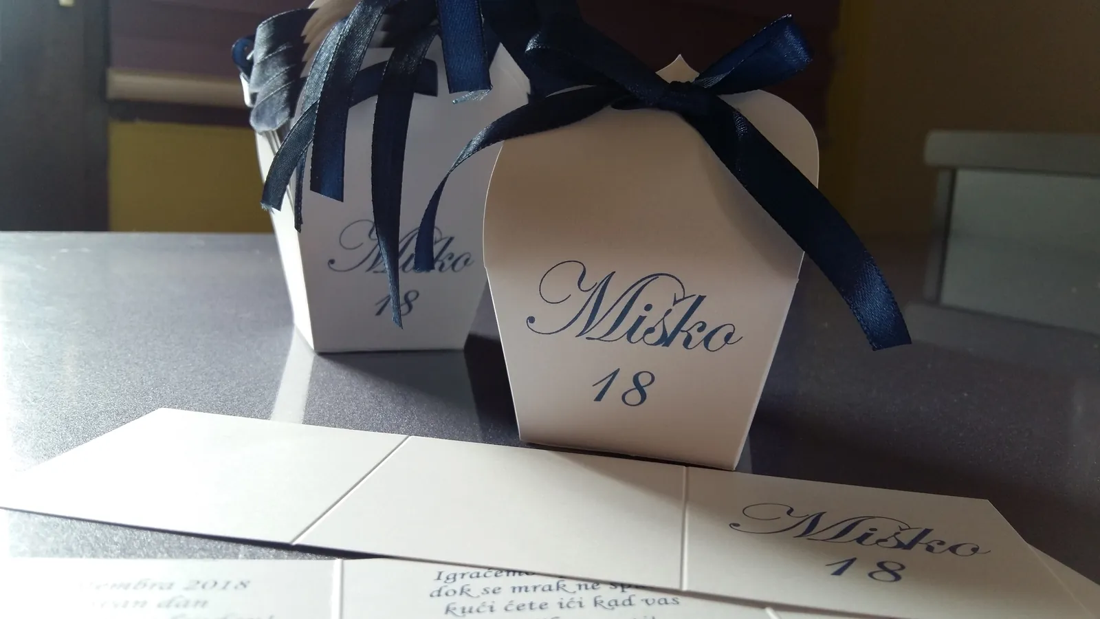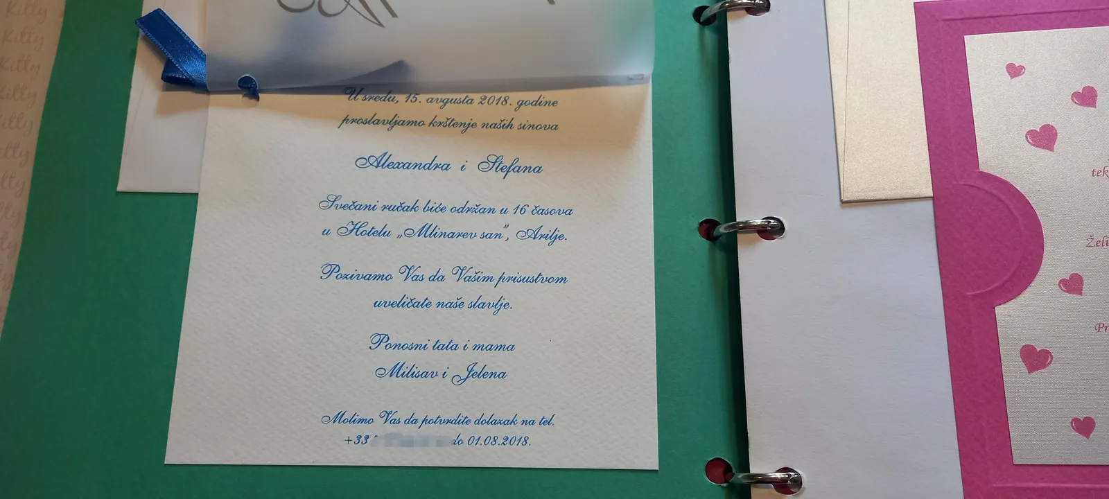 Neobične-originalne pozivnice: pergamenti u rolni, male trodelne pozivnice koje se stavljaju u kutije model Srce, Lora, Jastučić- veoma tražene već godinama; originalna pozivnica Aviončić sa kovertom.