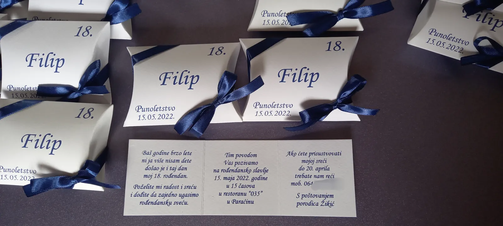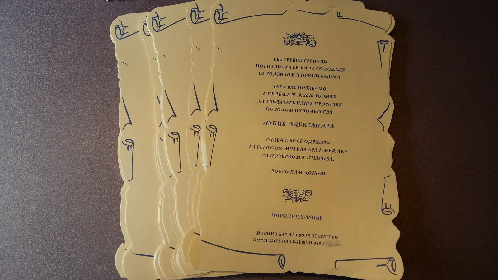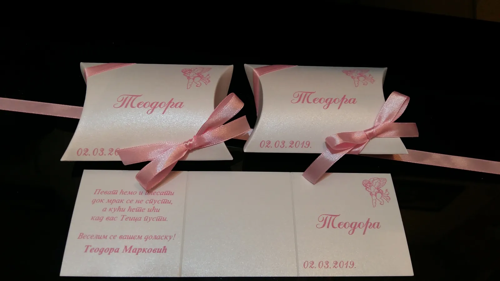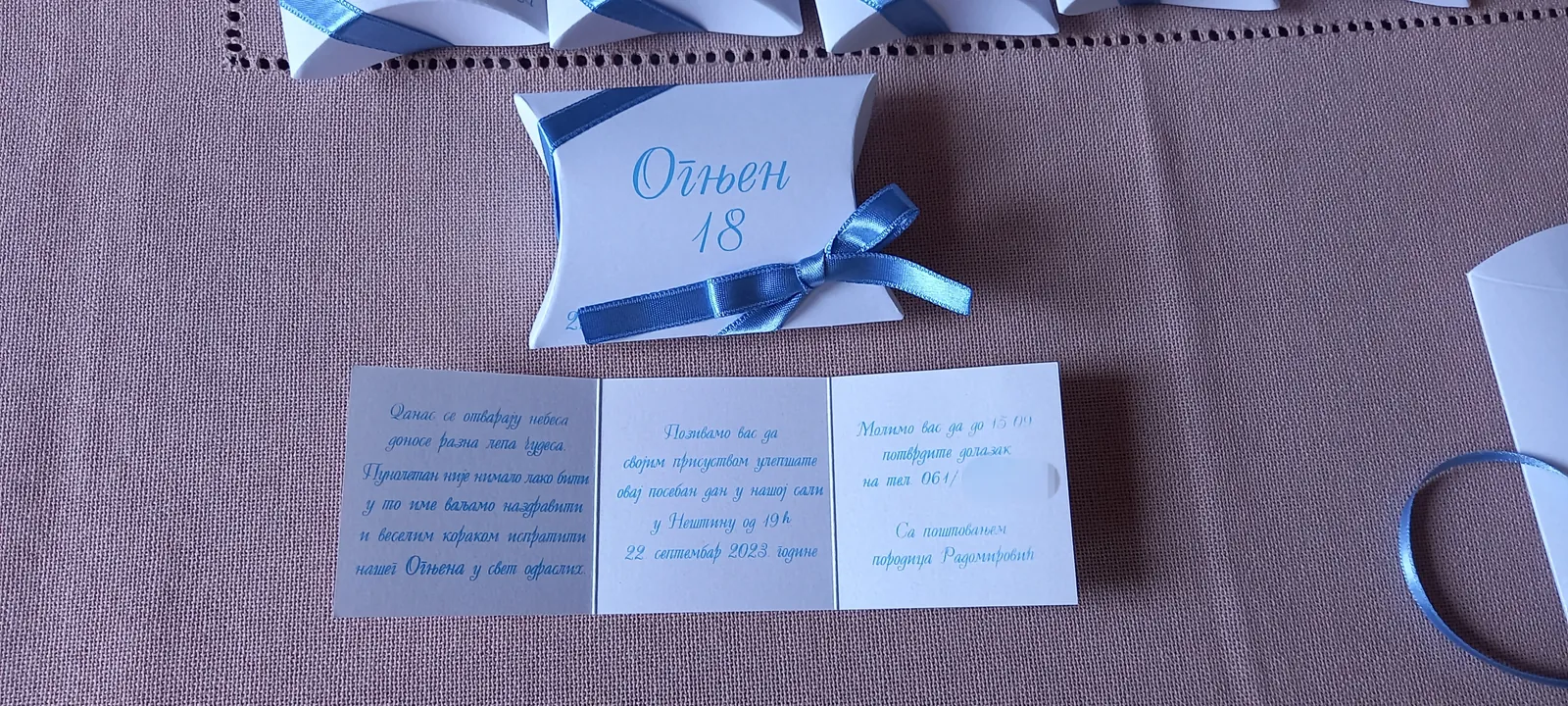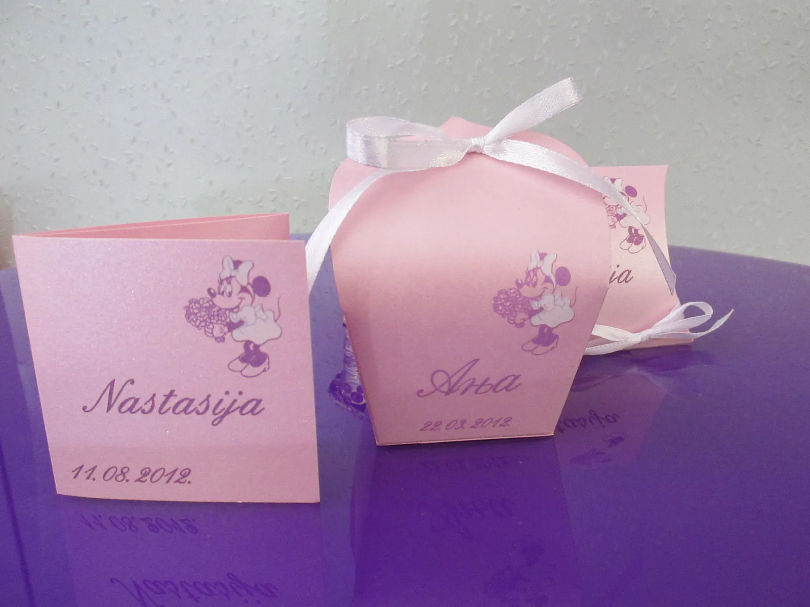 Neobične-originalne pozivnice: pergamenti u rolni, male trodelne pozivnice koje se stavljaju u kutije model Srce, Lora, Jastučić- veoma tražene već godinama; originalna pozivnica Aviončić sa kovertom.