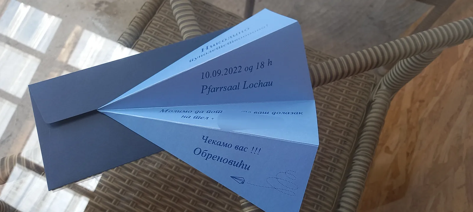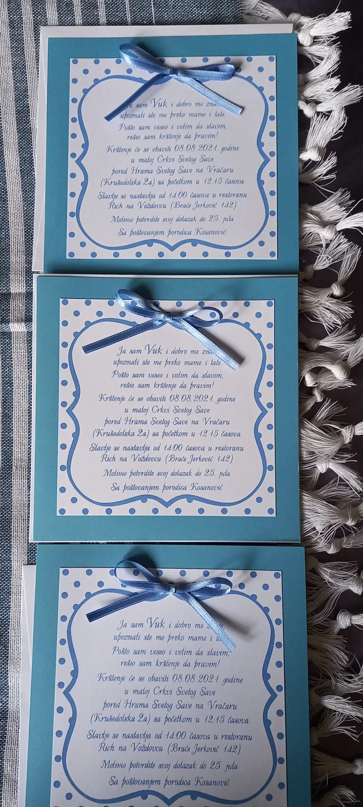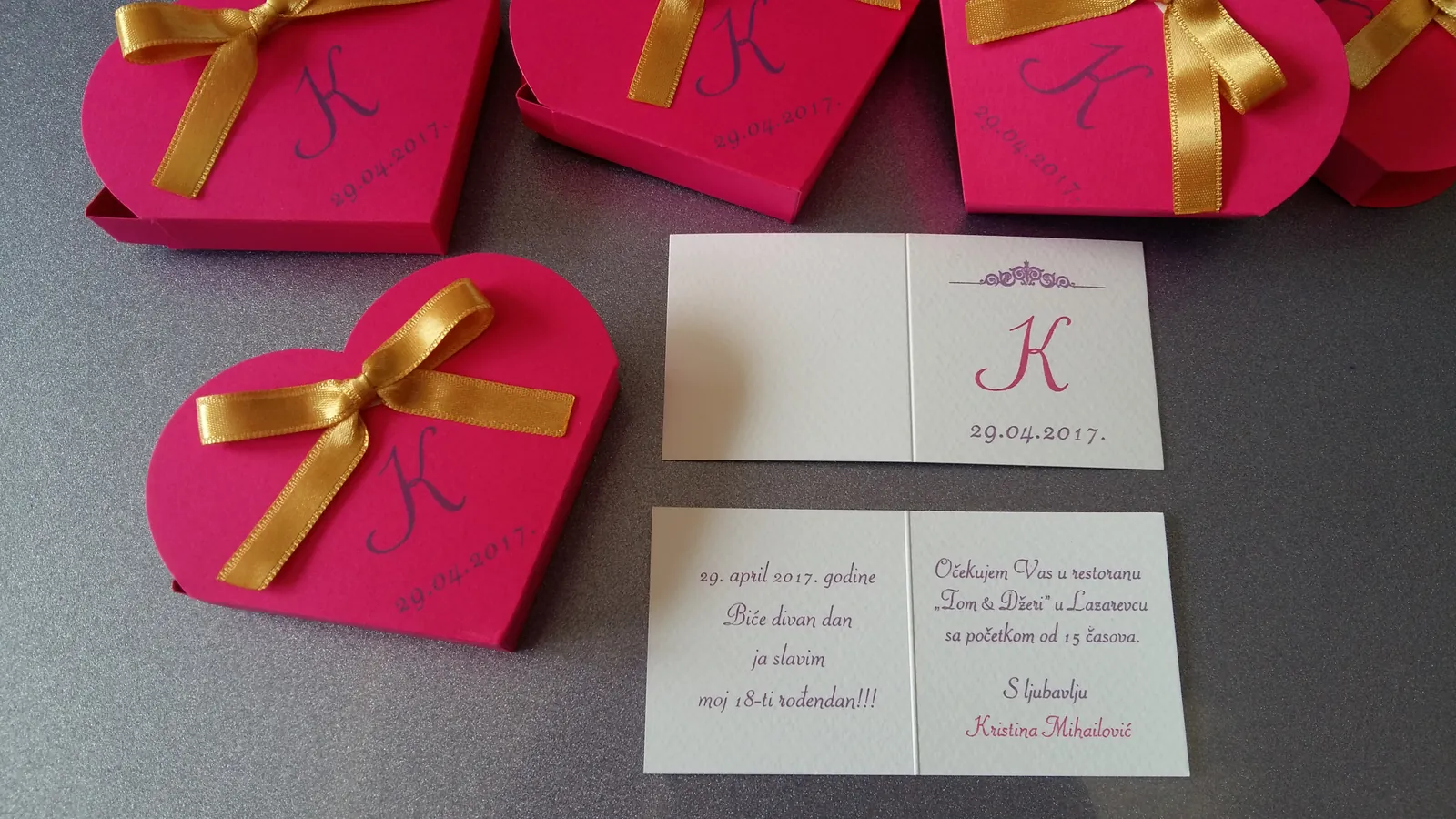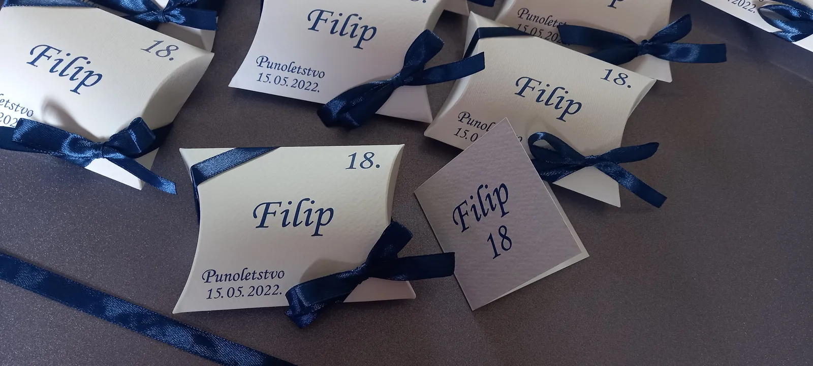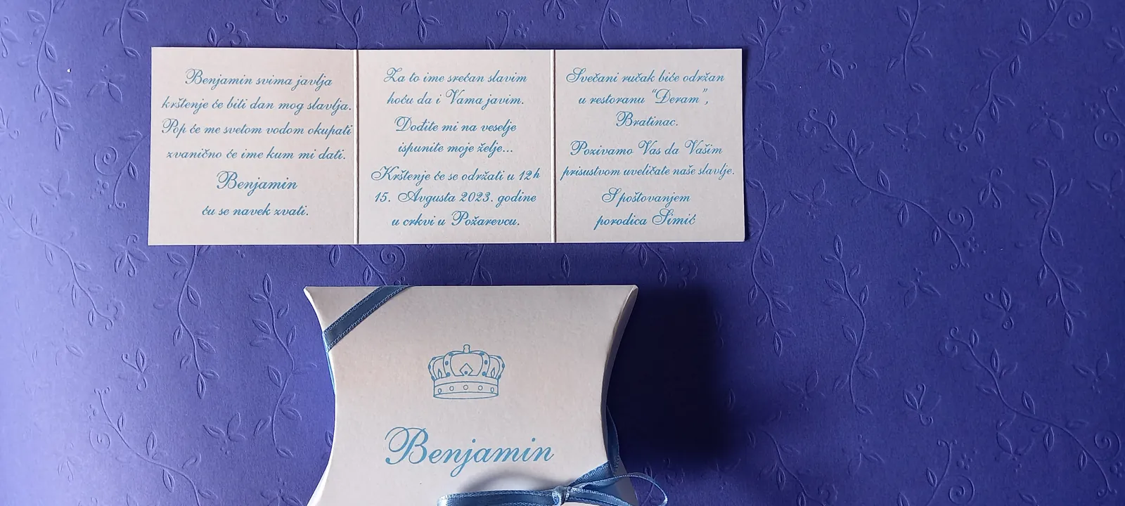 Neobične-originalne pozivnice: pergamenti u rolni, male trodelne pozivnice koje se stavljaju u kutije model Srce, Lora, Jastučić- veoma tražene već godinama; originalna pozivnica Aviončić sa kovertom.