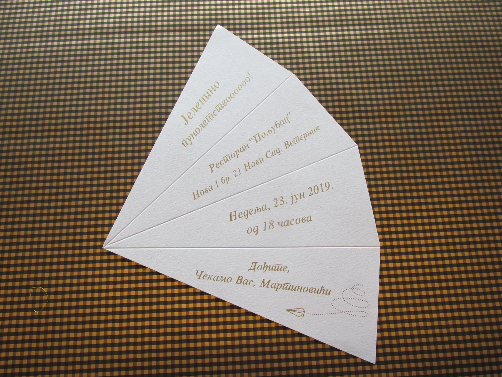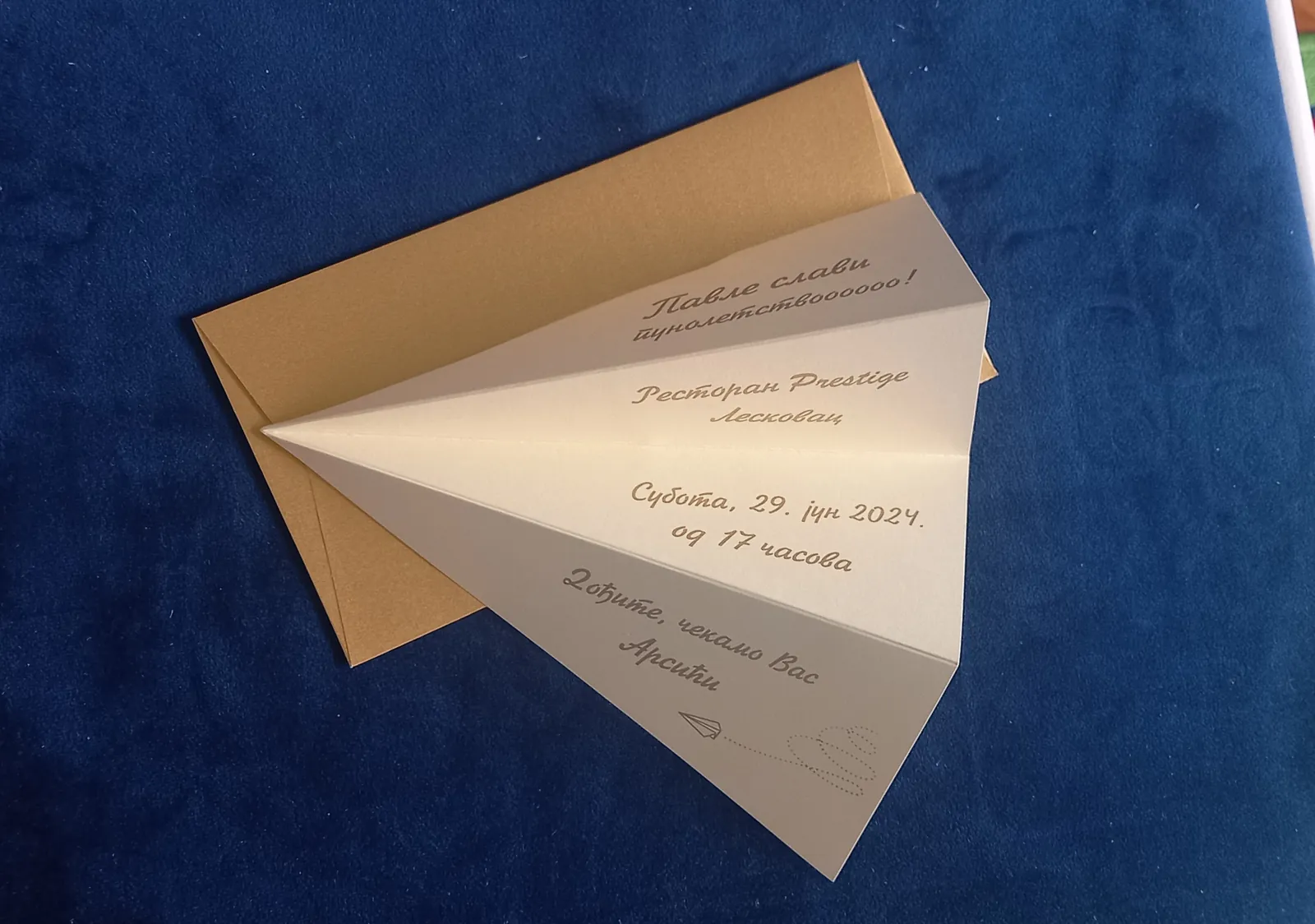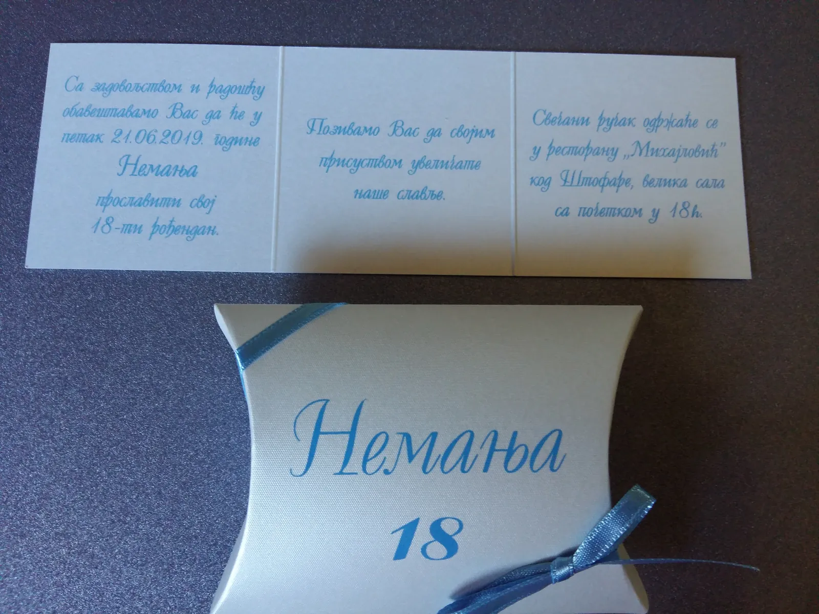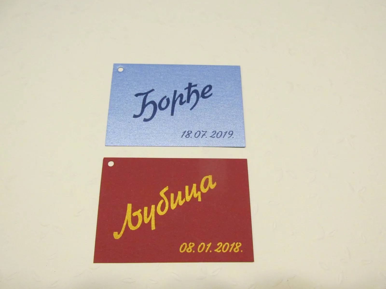 Neobične-originalne pozivnice: pergamenti u rolni, male trodelne pozivnice koje se stavljaju u kutije model Srce, Lora, Jastučić- veoma tražene već godinama; originalna pozivnica Aviončić sa kovertom.