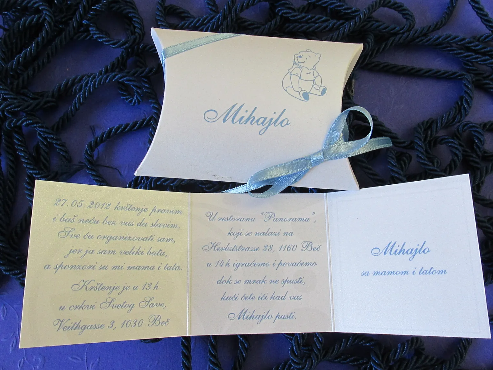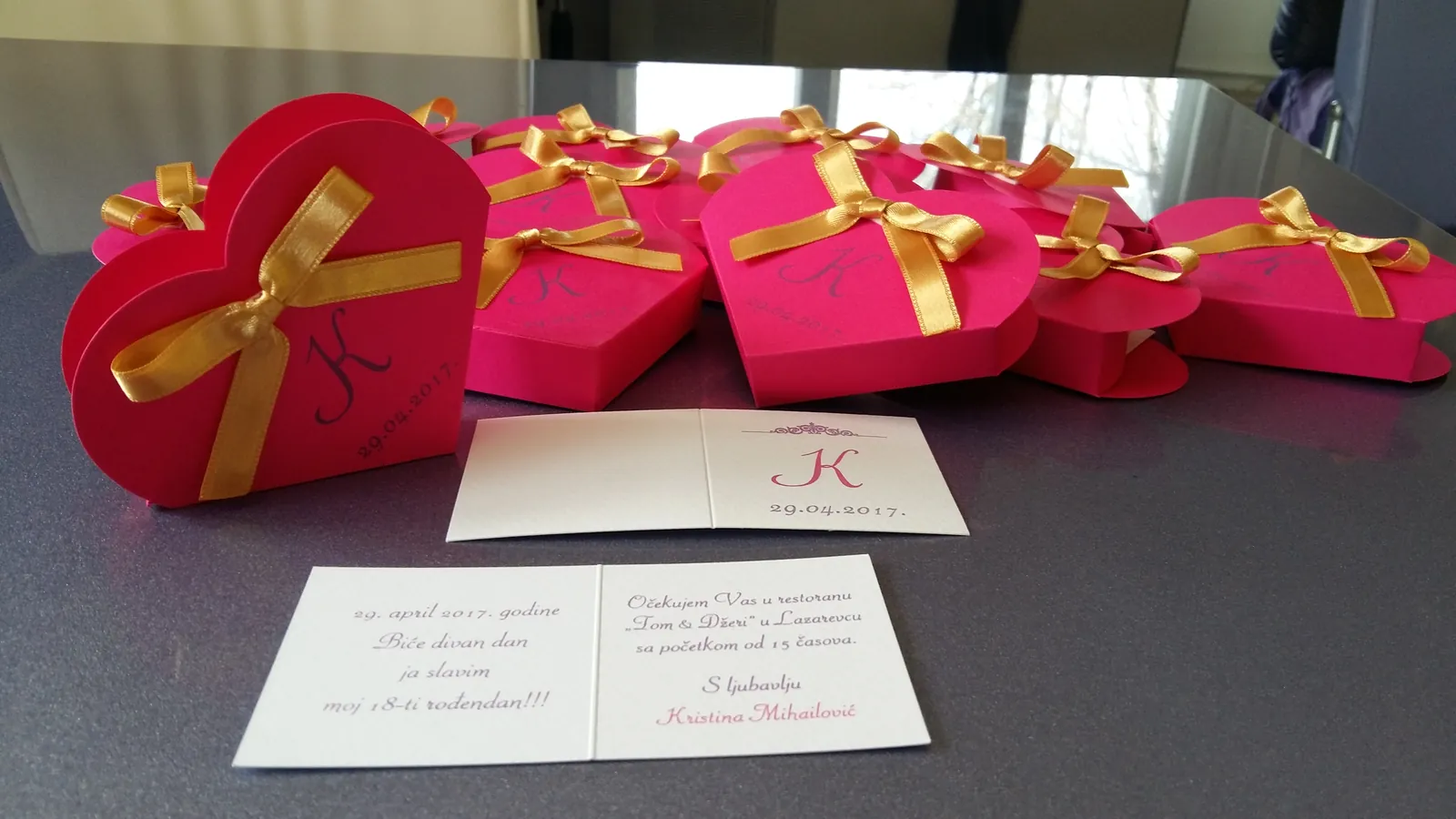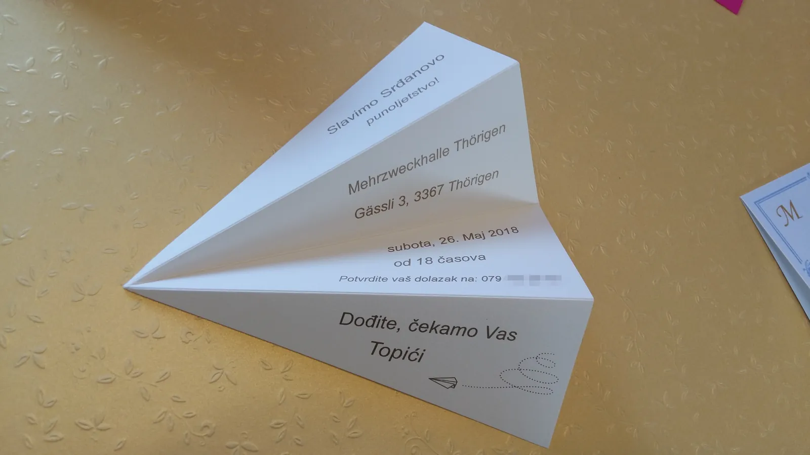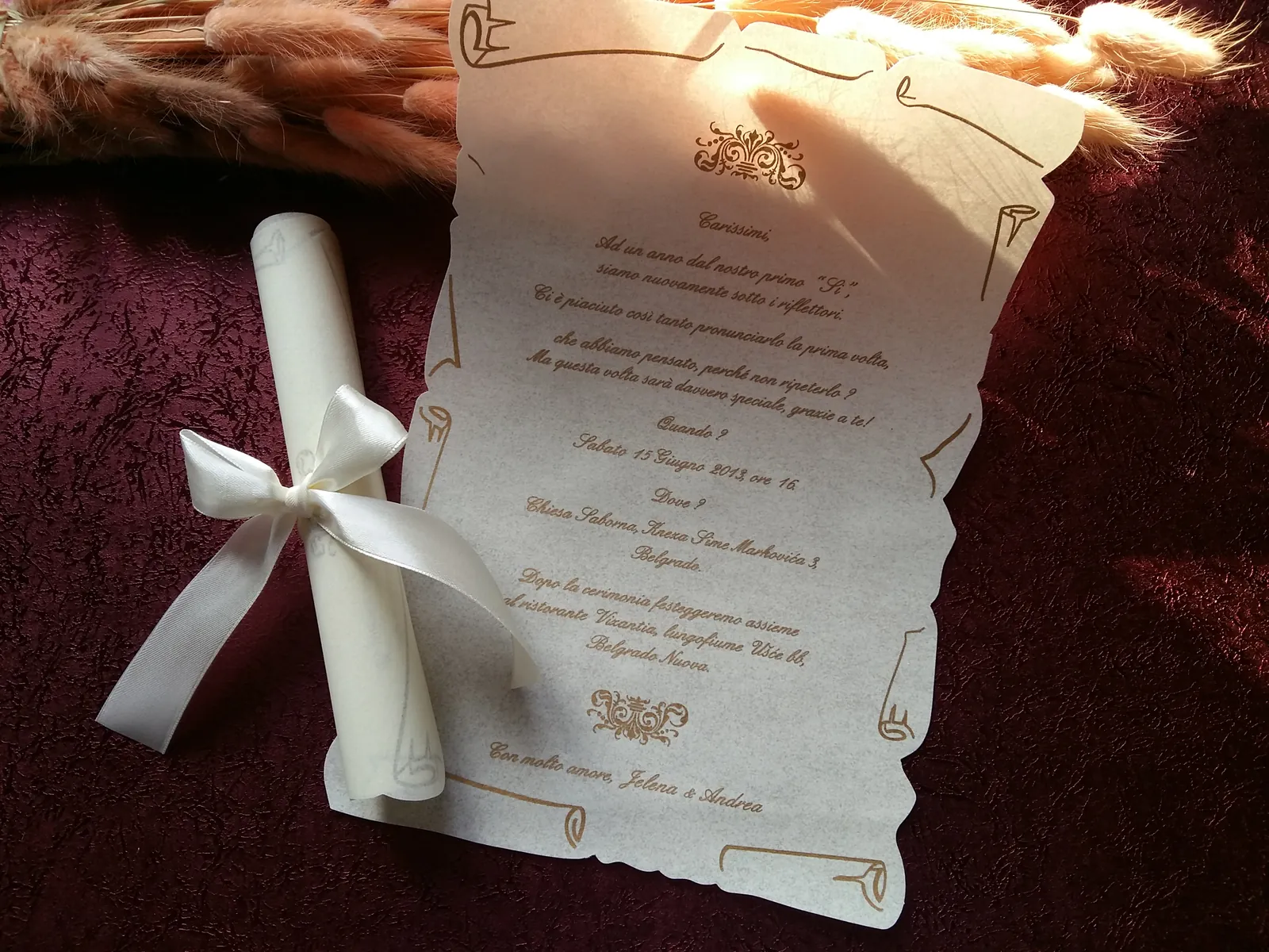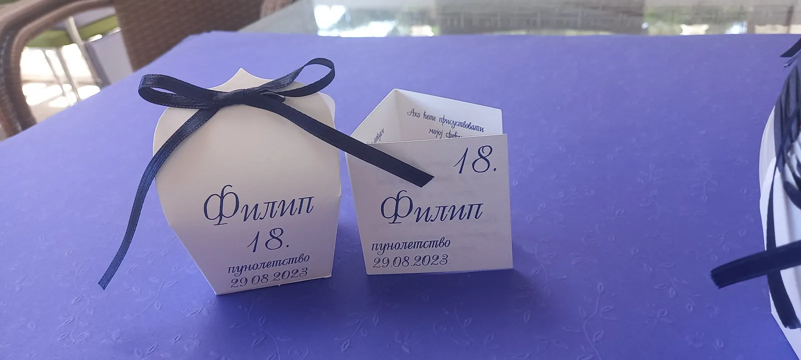 Neobične-originalne pozivnice: pergamenti u rolni, male trodelne pozivnice koje se stavljaju u kutije model Srce, Lora, Jastučić- veoma tražene već godinama; originalna pozivnica Aviončić sa kovertom.