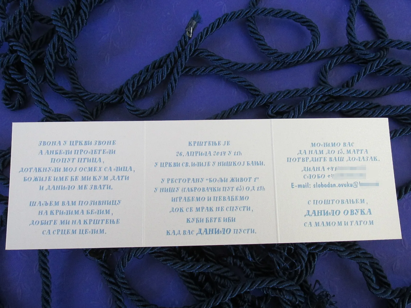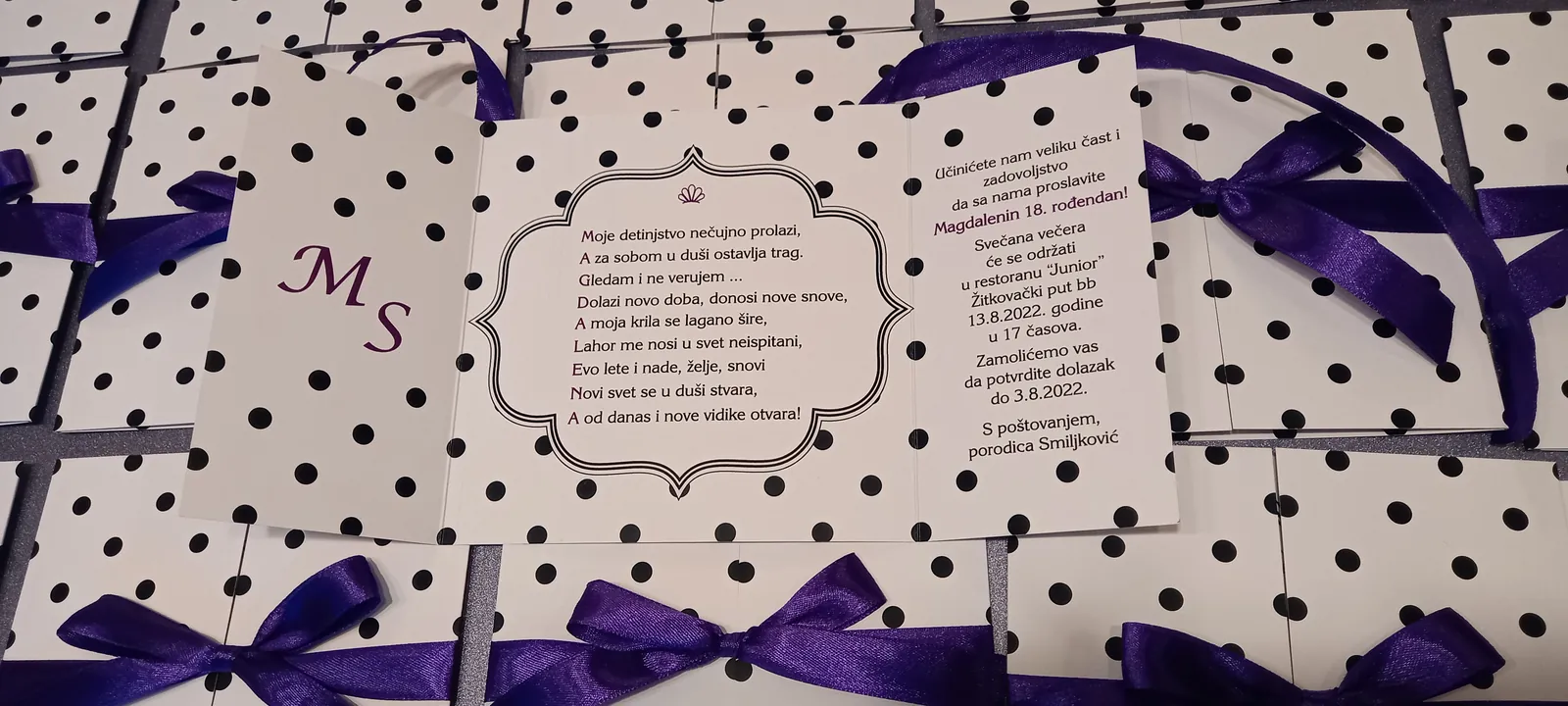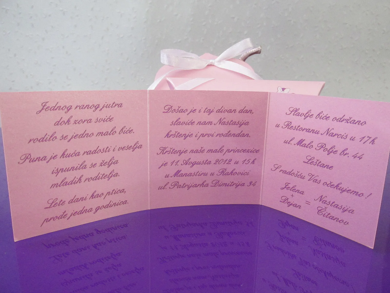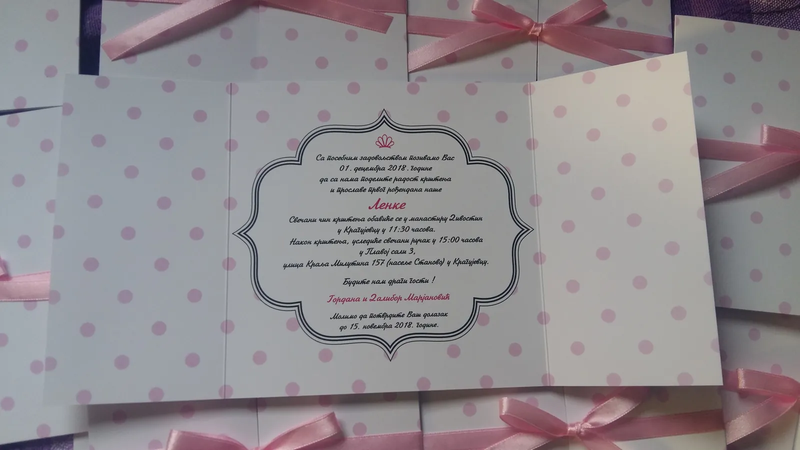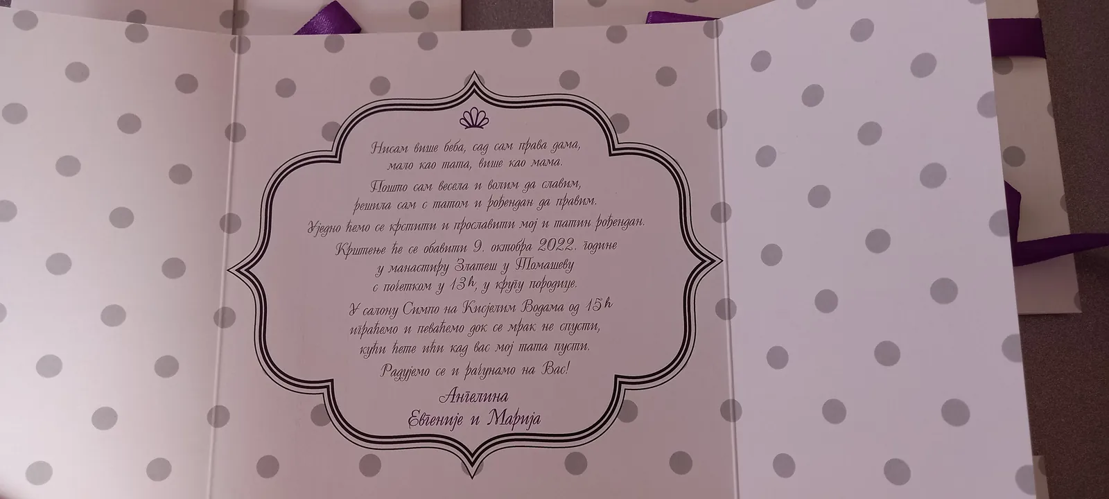 Otmene, elegante pozivnice: moderne pozivnice sa tufnama, štampa cvetnih i drugih motiva na reljefnim papirima, pergamenti, pozivnice u rolni, pozivnice za venčanje i krštenje, pozivnice sa fotografijama, pozivnice sa pausom.